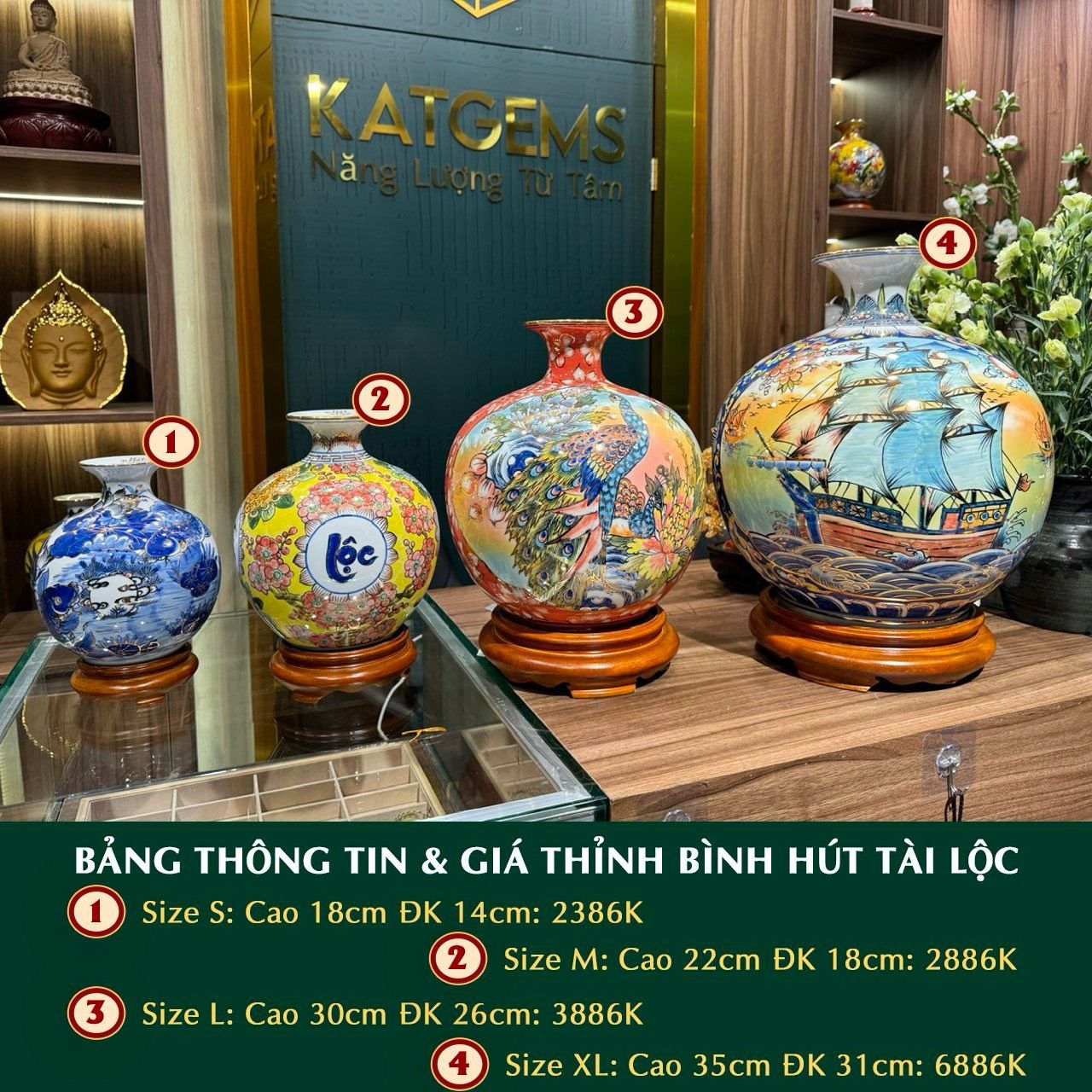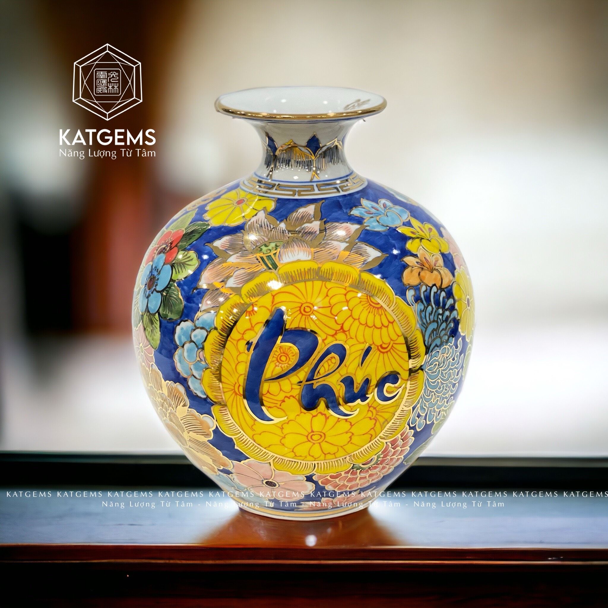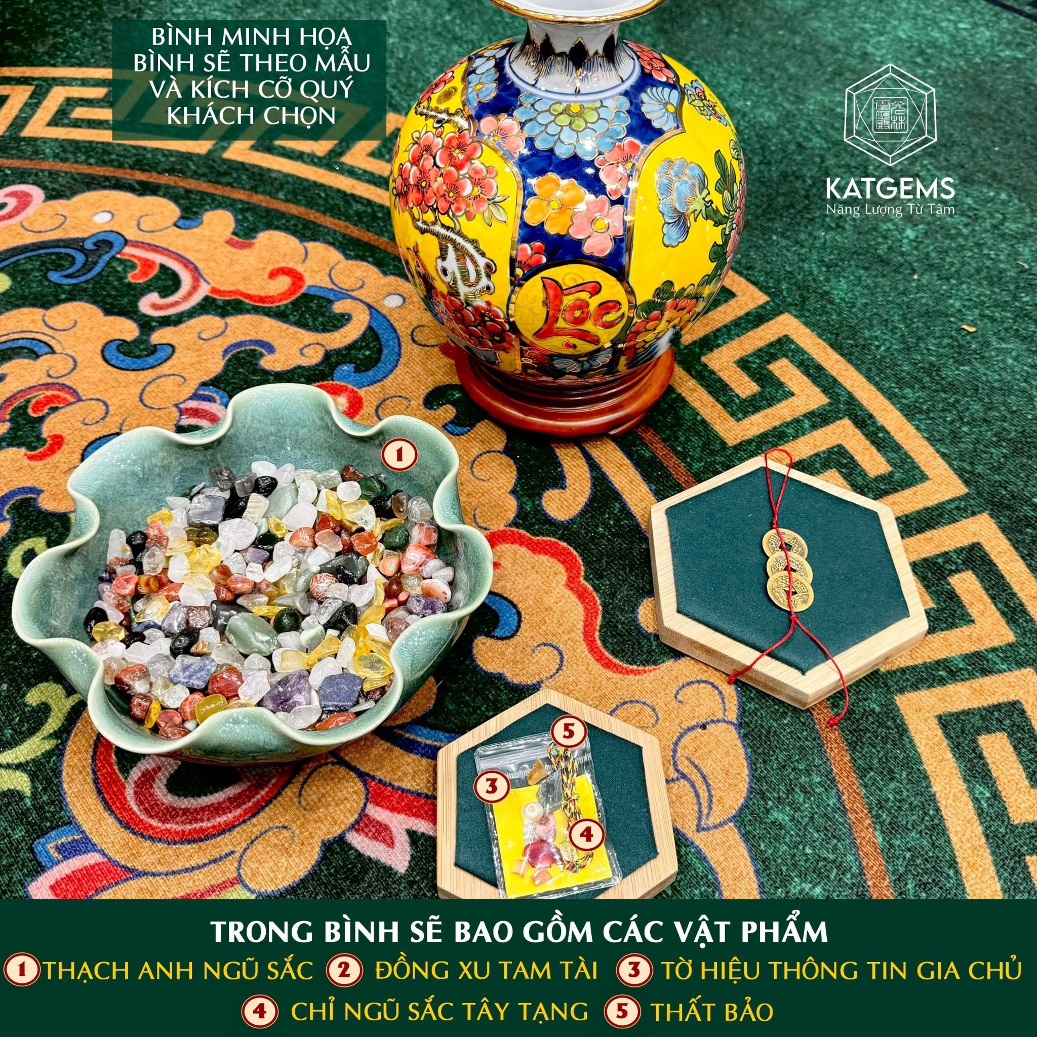 Bình Hút Tài Lộc Phúc Lộc Thọ Cao 22cm ĐK 18cm Kèm Đế