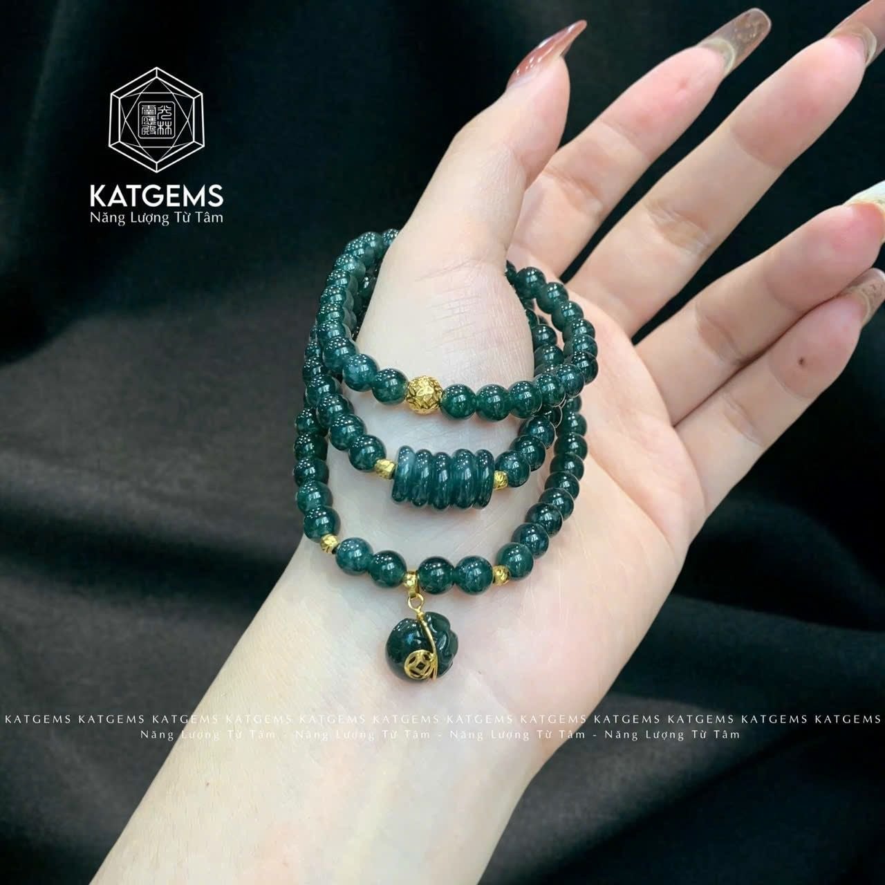 Vòng Chuỗi Ngọc Lục Lam 5.6ly Mix Ngũ Điếu, Túi Tiền Và Bi Vàng Trang Sức (Không Kén Mệnh) 2-126002