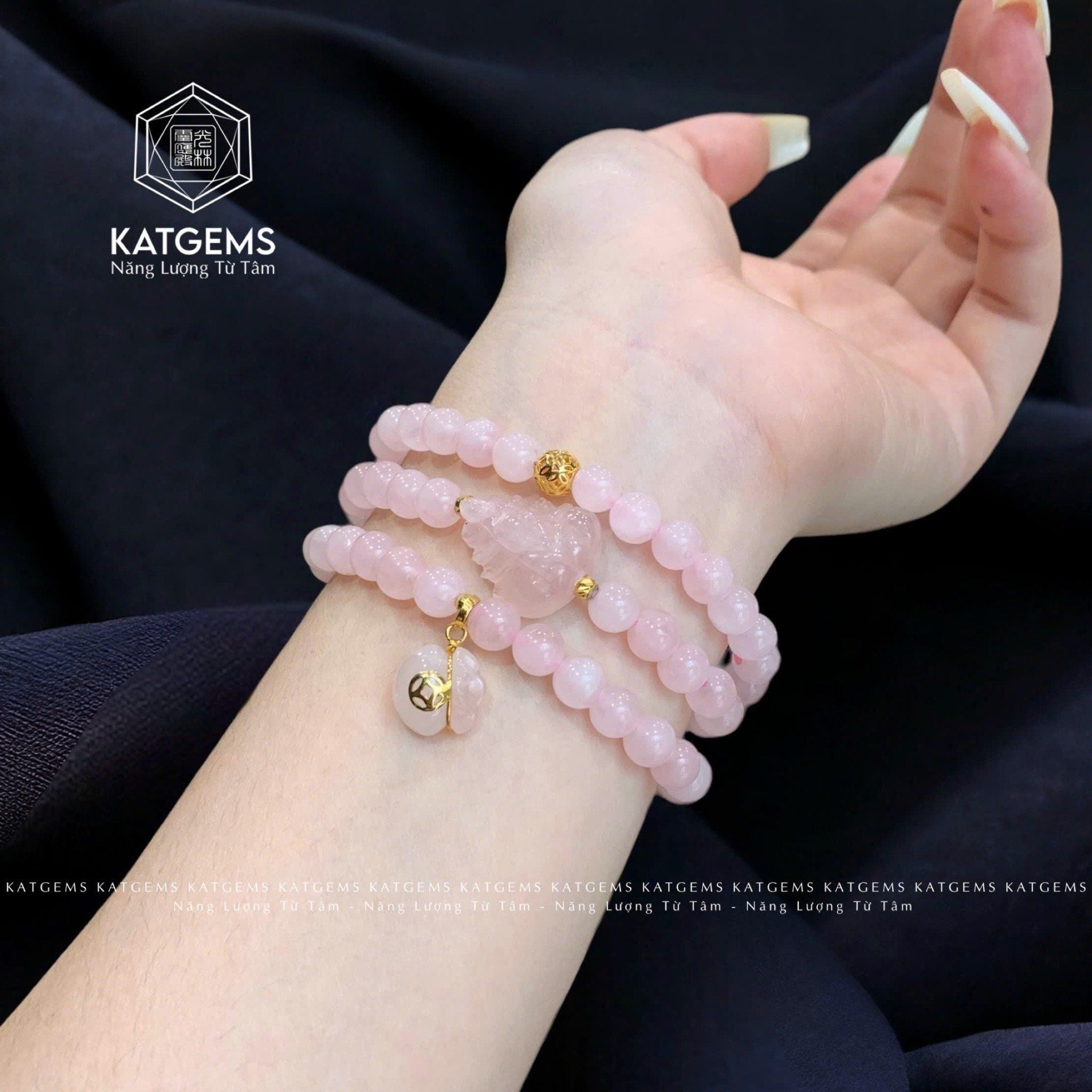 Chuỗi Vòng Thạch Anh Hồng 6ly Túi Tiền Kim Bảo Mix Hồ Ly Và Bi Kim Tiền Vàng Trang Sức (Hỏa, Thổ) 2-125005