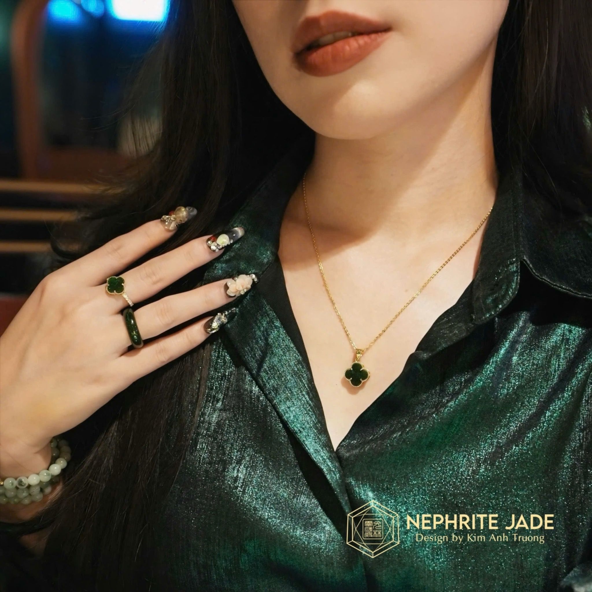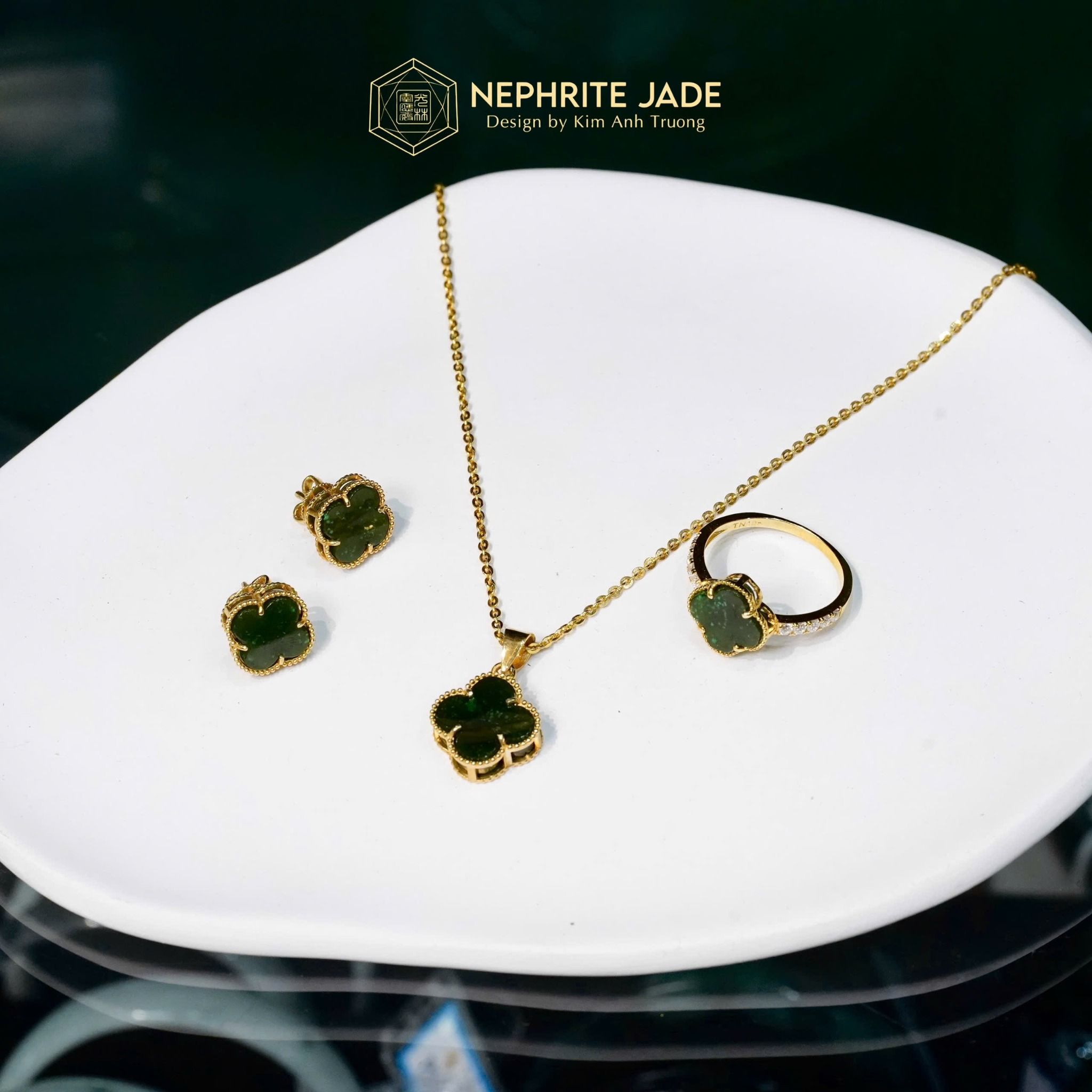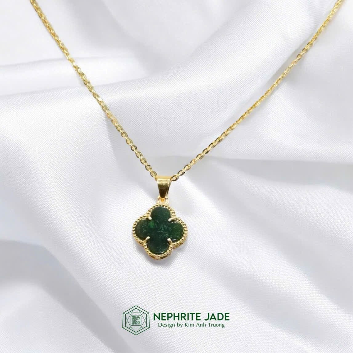 Mặt Dây Chuyền Cỏ Bốn Lá Ngọc Bích Canada Vip Vàng Trang Sức (Không Kén Mệnh)