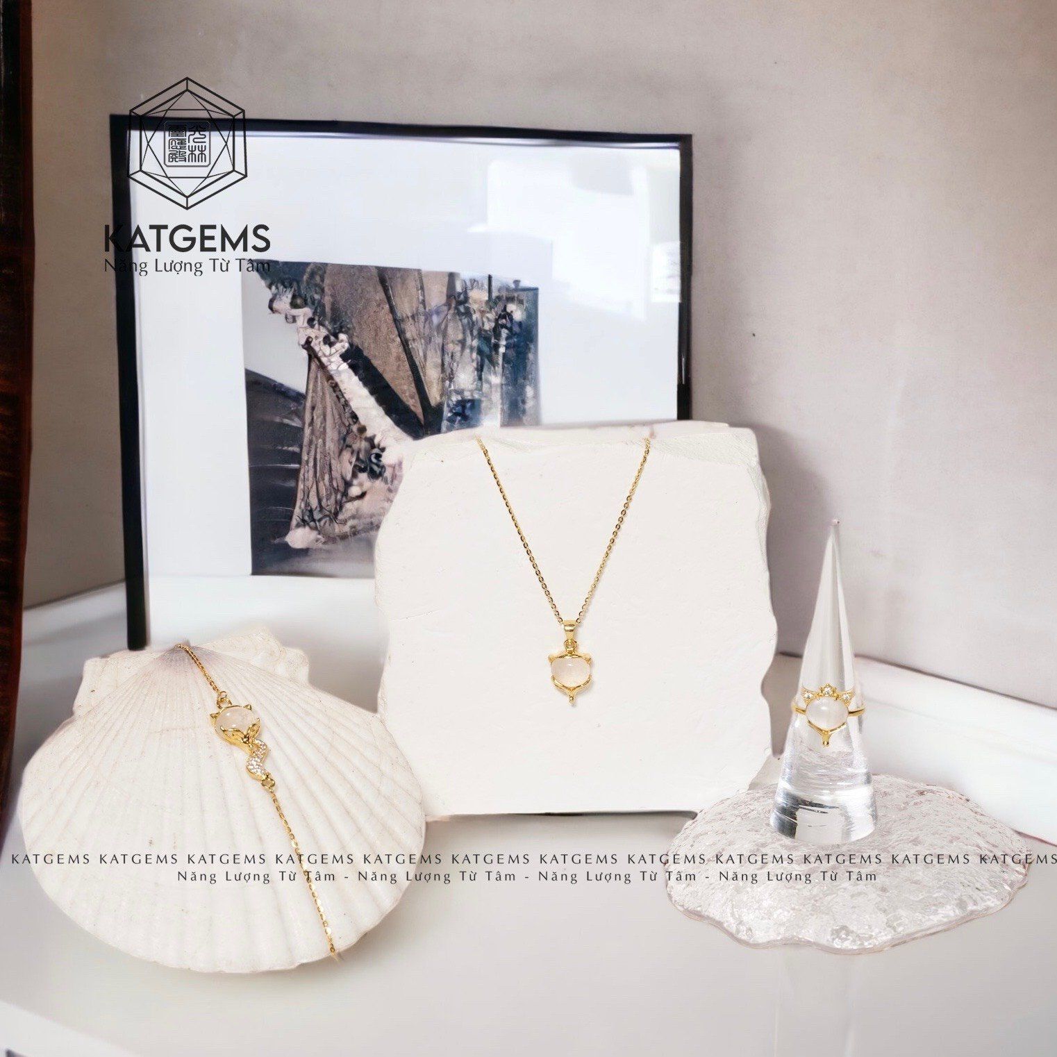 Mặt Dây Chuyền Vàng Trang Sức Bà Hồ Ly Đá Moonstone (Kim, Thuỷ)