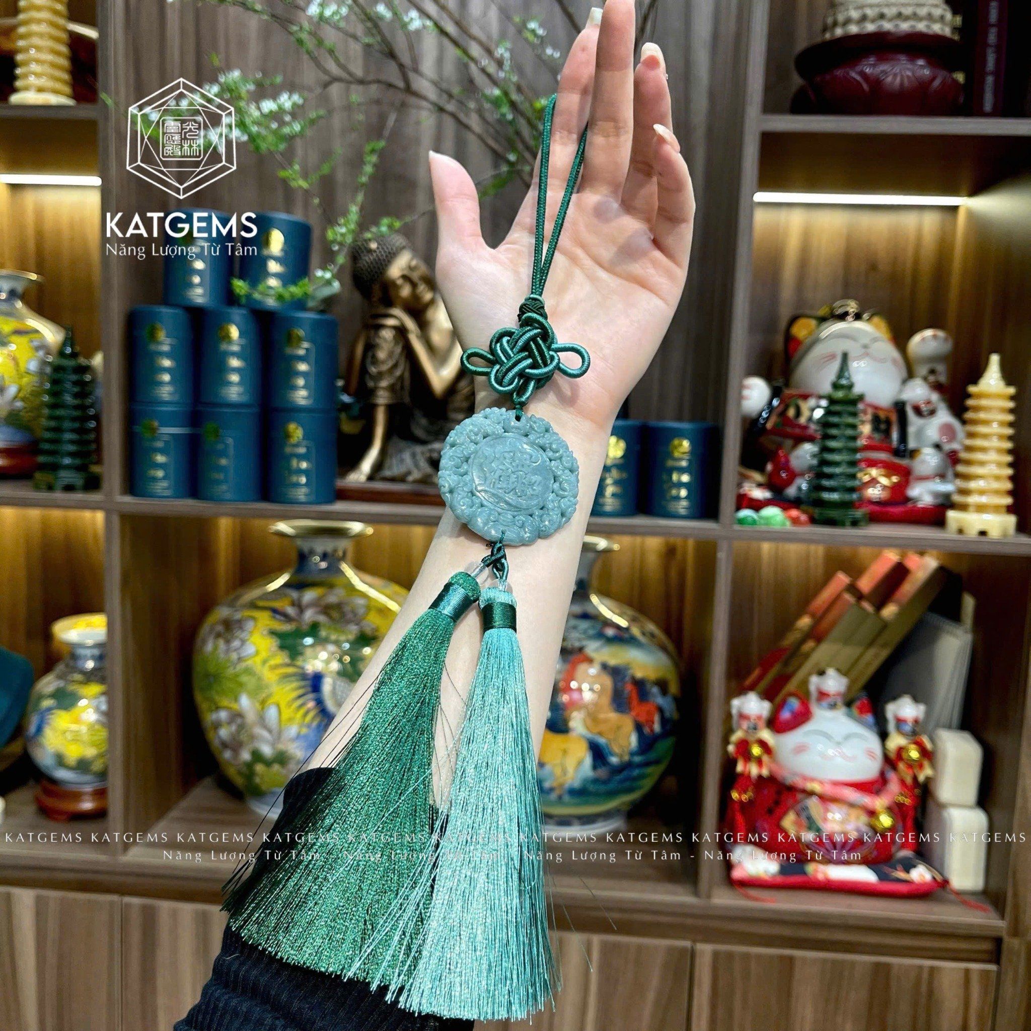 Khánh Treo Xe Chữ Thọ Lam Ngọc Jade A Myanmar (Không Kén Mệnh)