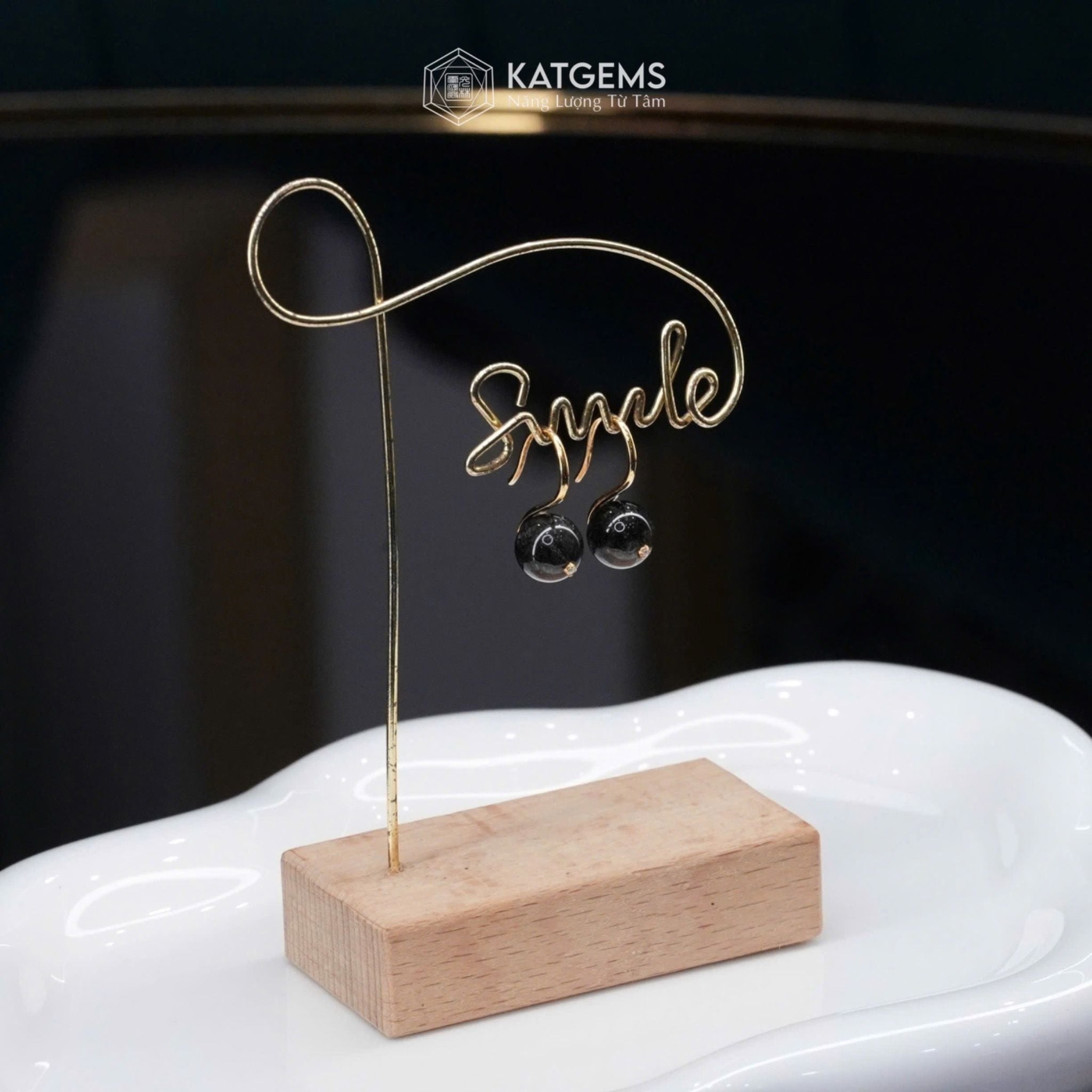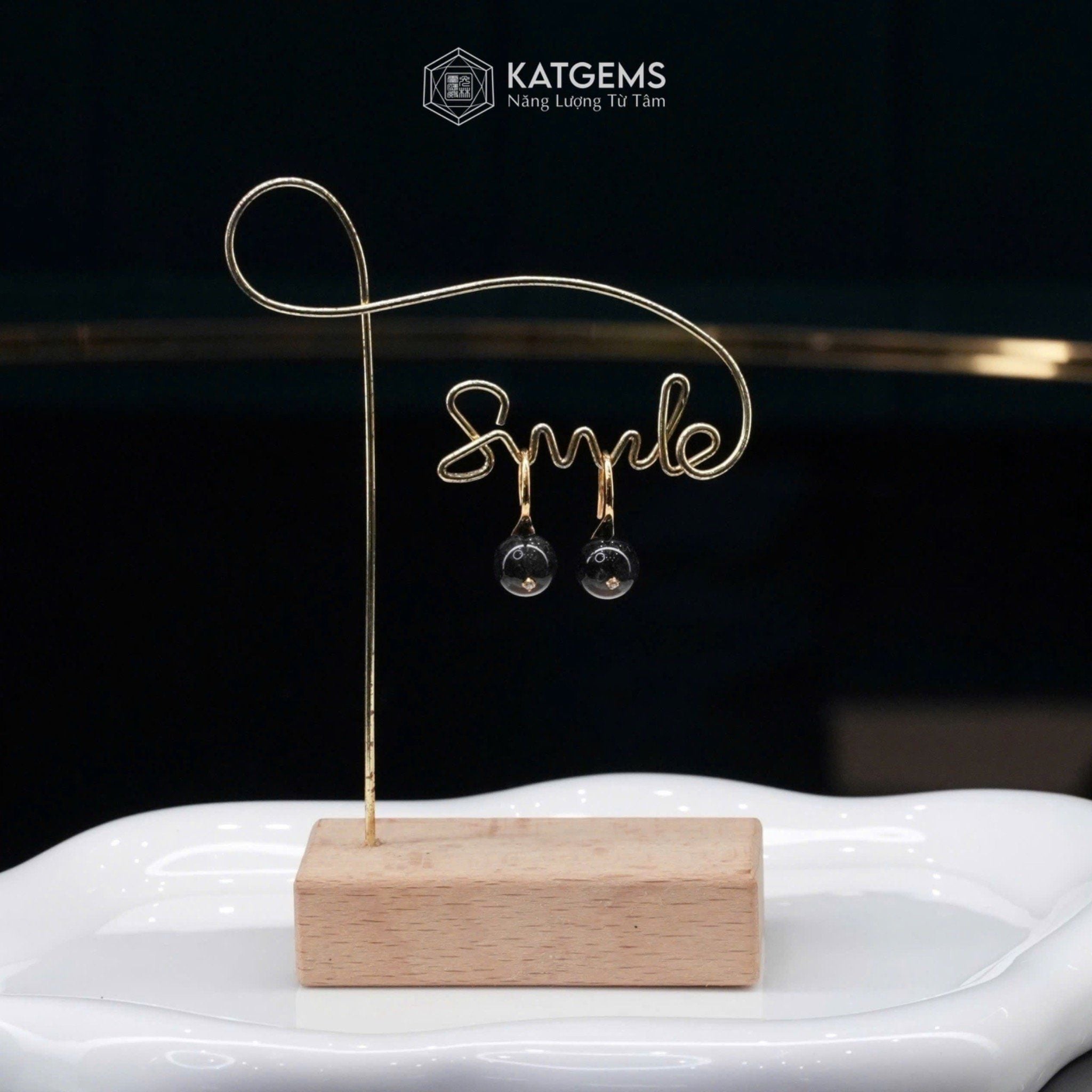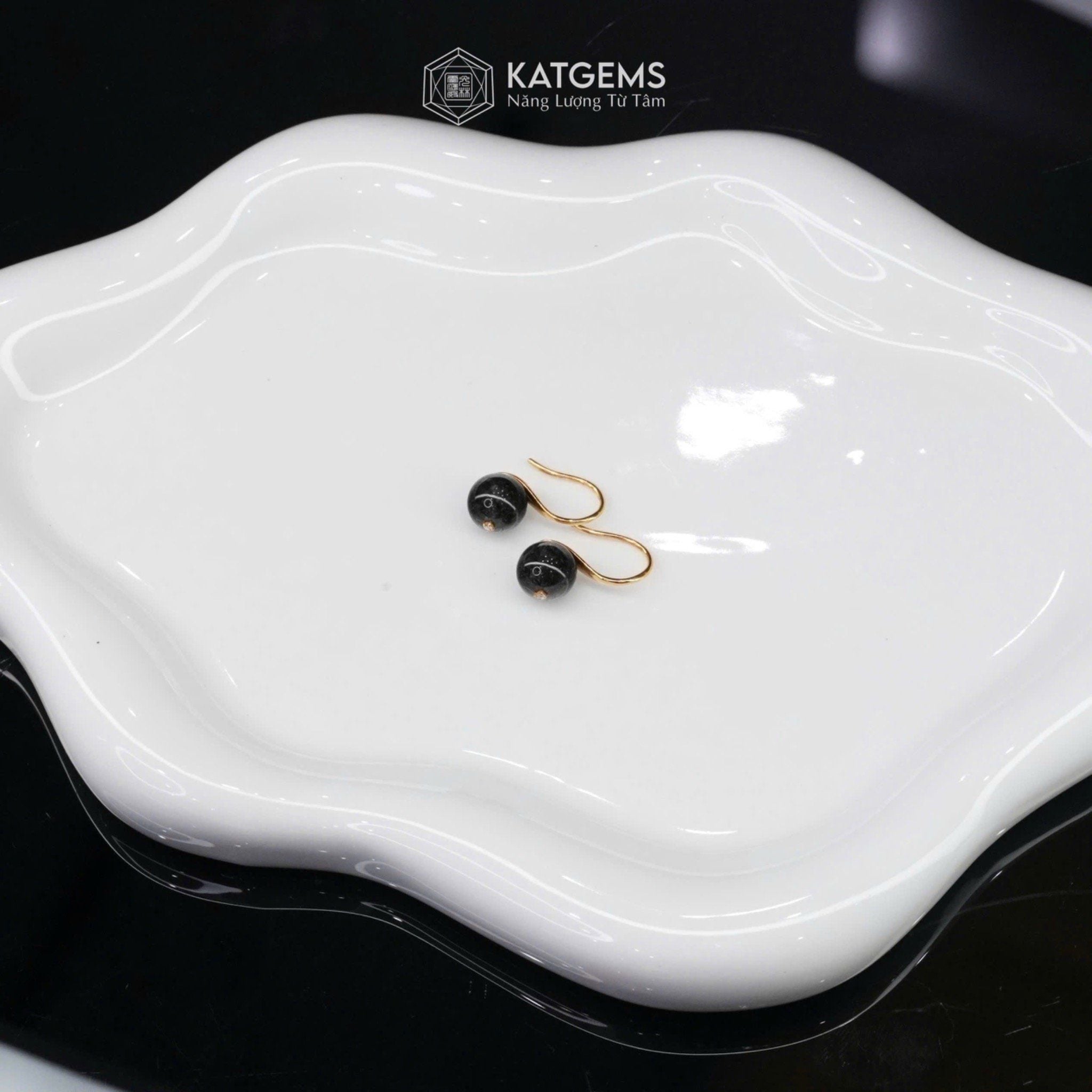 Khuyên Tai Kim Tâm Như Ý Đá Thạch Anh Tóc Đen (Thủy, Mộc)