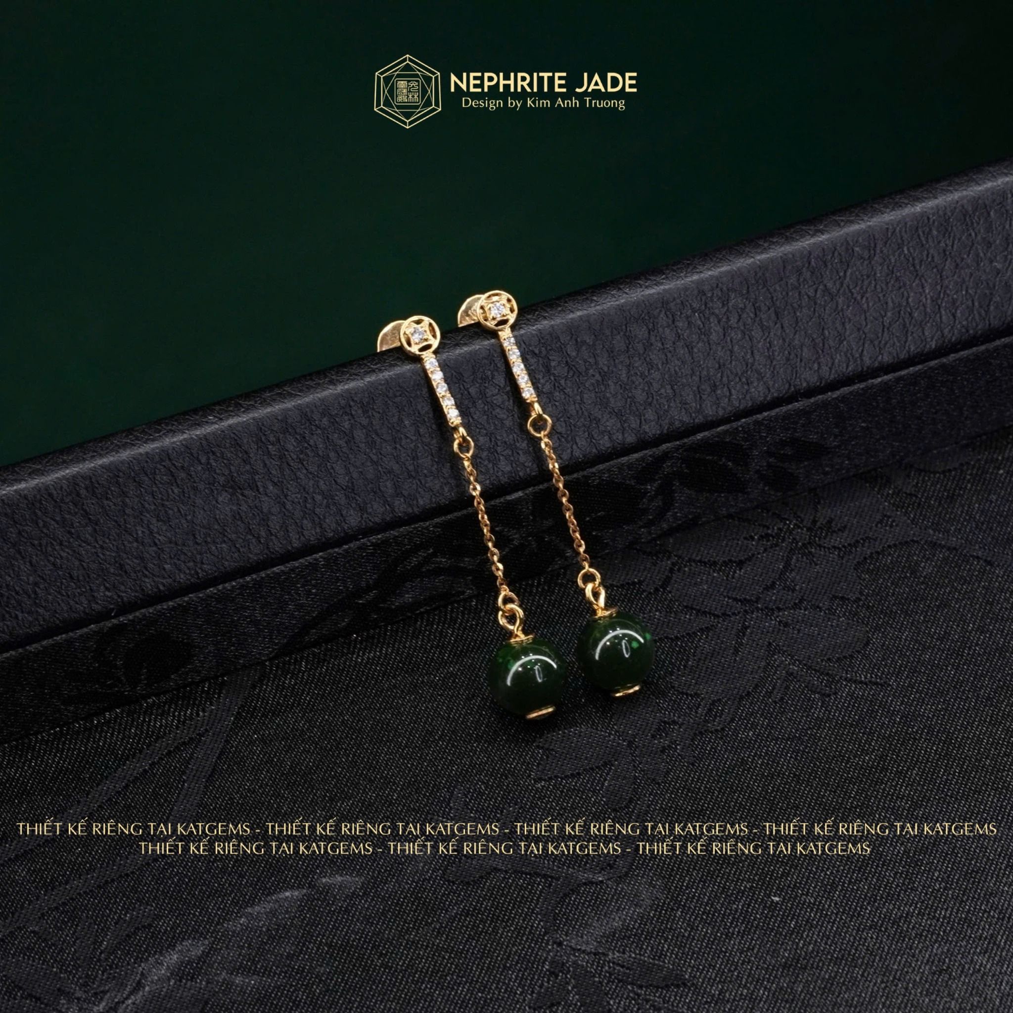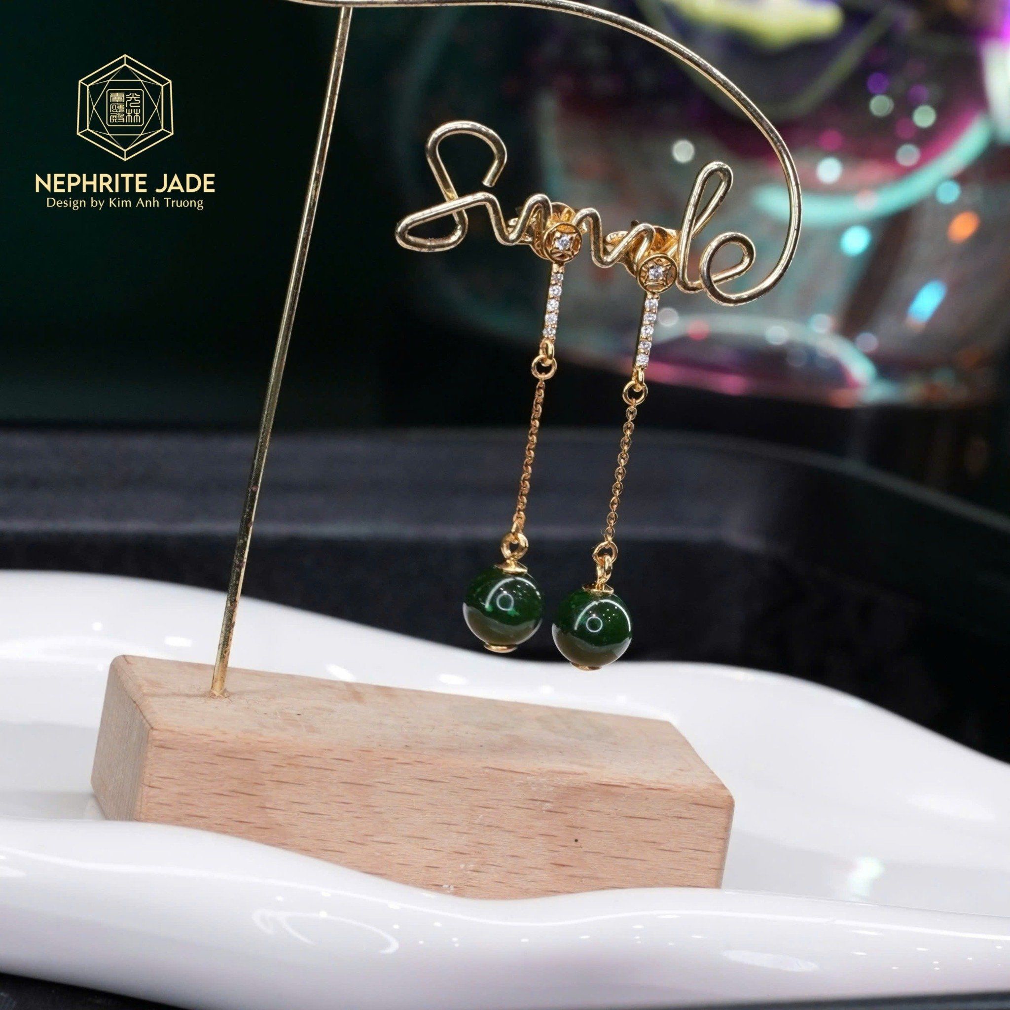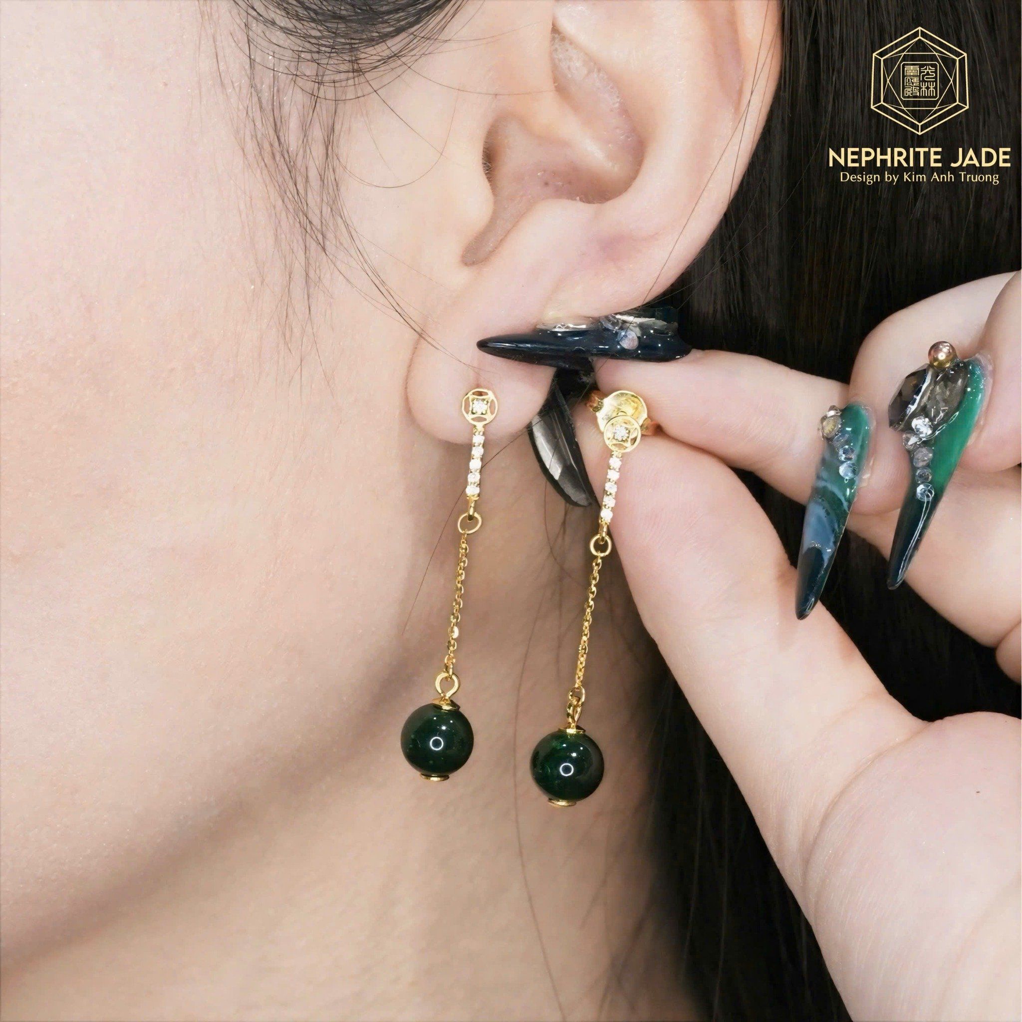 Khuyên Tai Thiên Ân Bảo Phúc Ngọc Bích Canada Hạt 8Ly (Không Kén Mệnh)