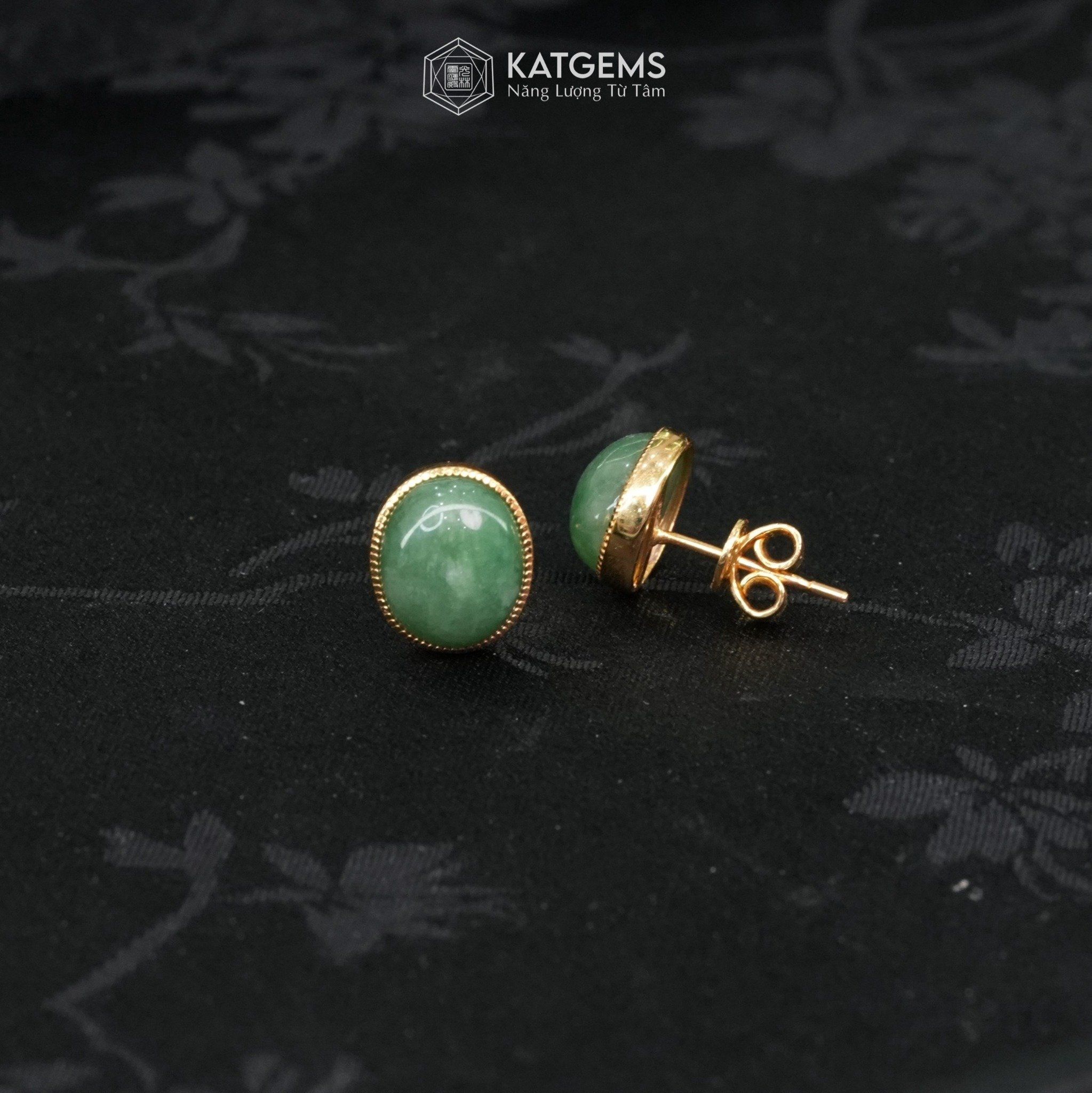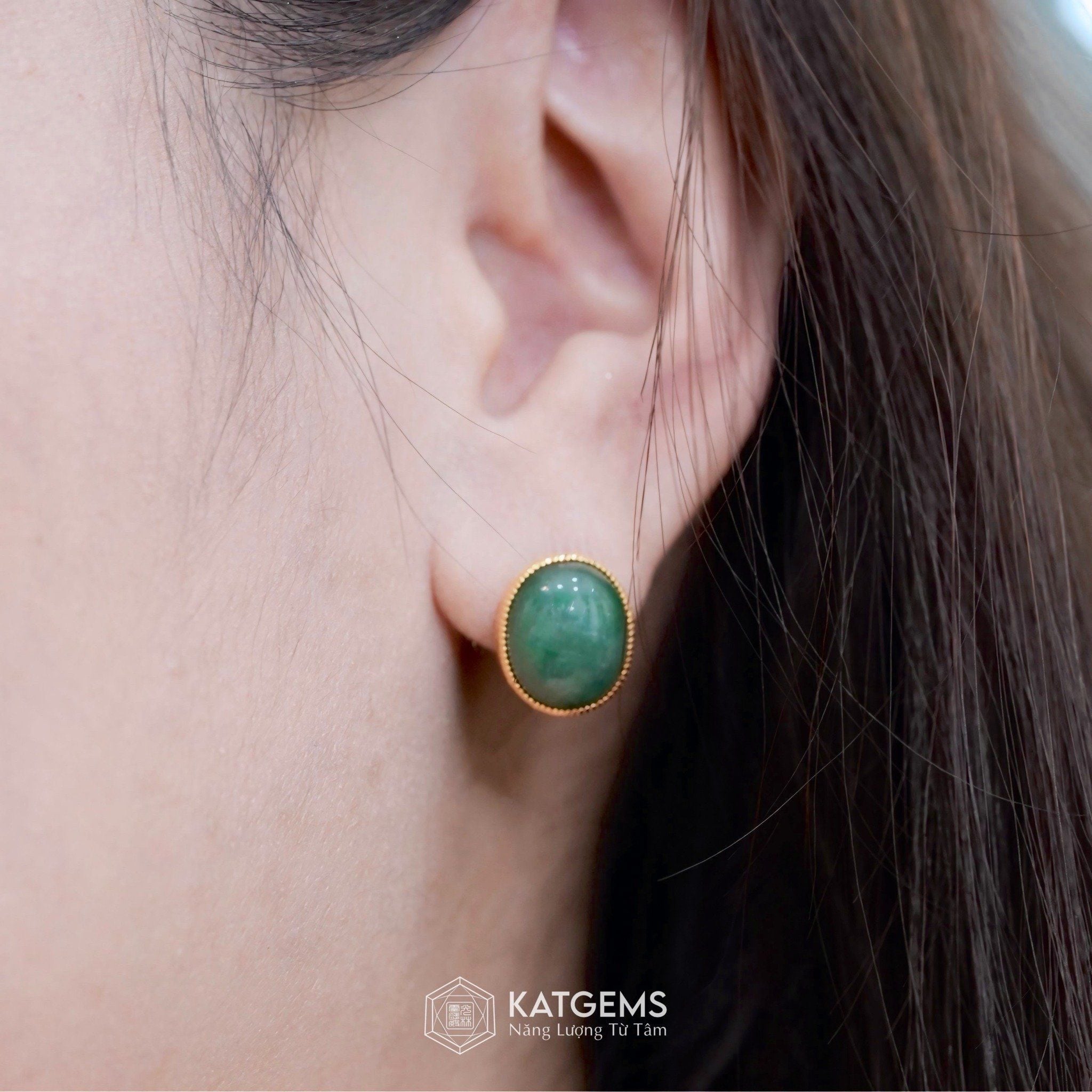 Khuyên Tai Thiết Kế Lục Bảo Cát Tường Mặt Ngọc Phỉ Thúy Type A KT 12 x10 x 6 (Không Kén Mệnh)