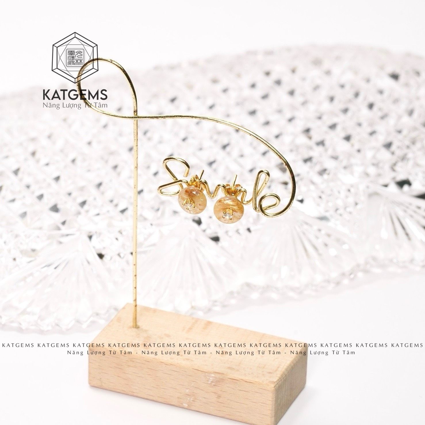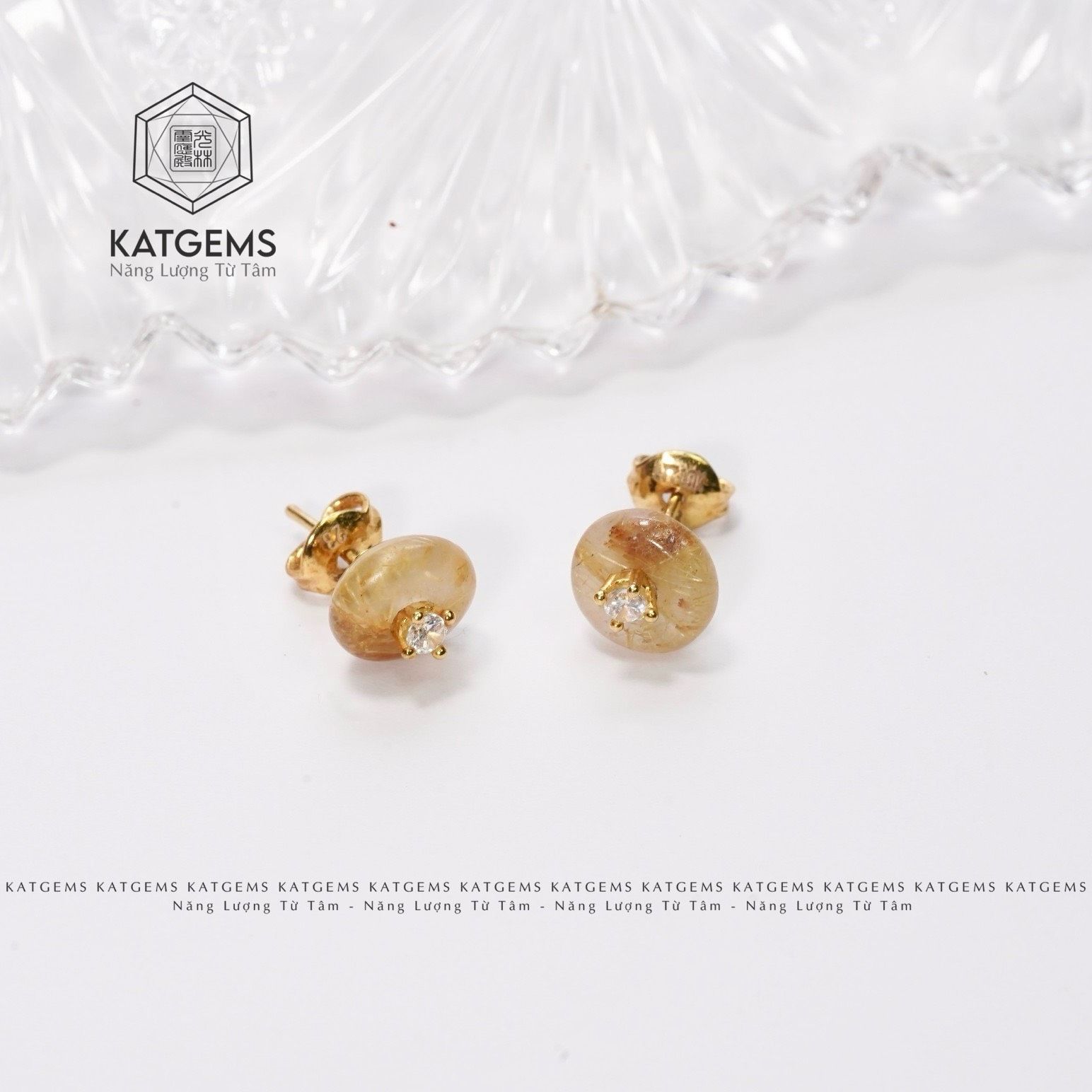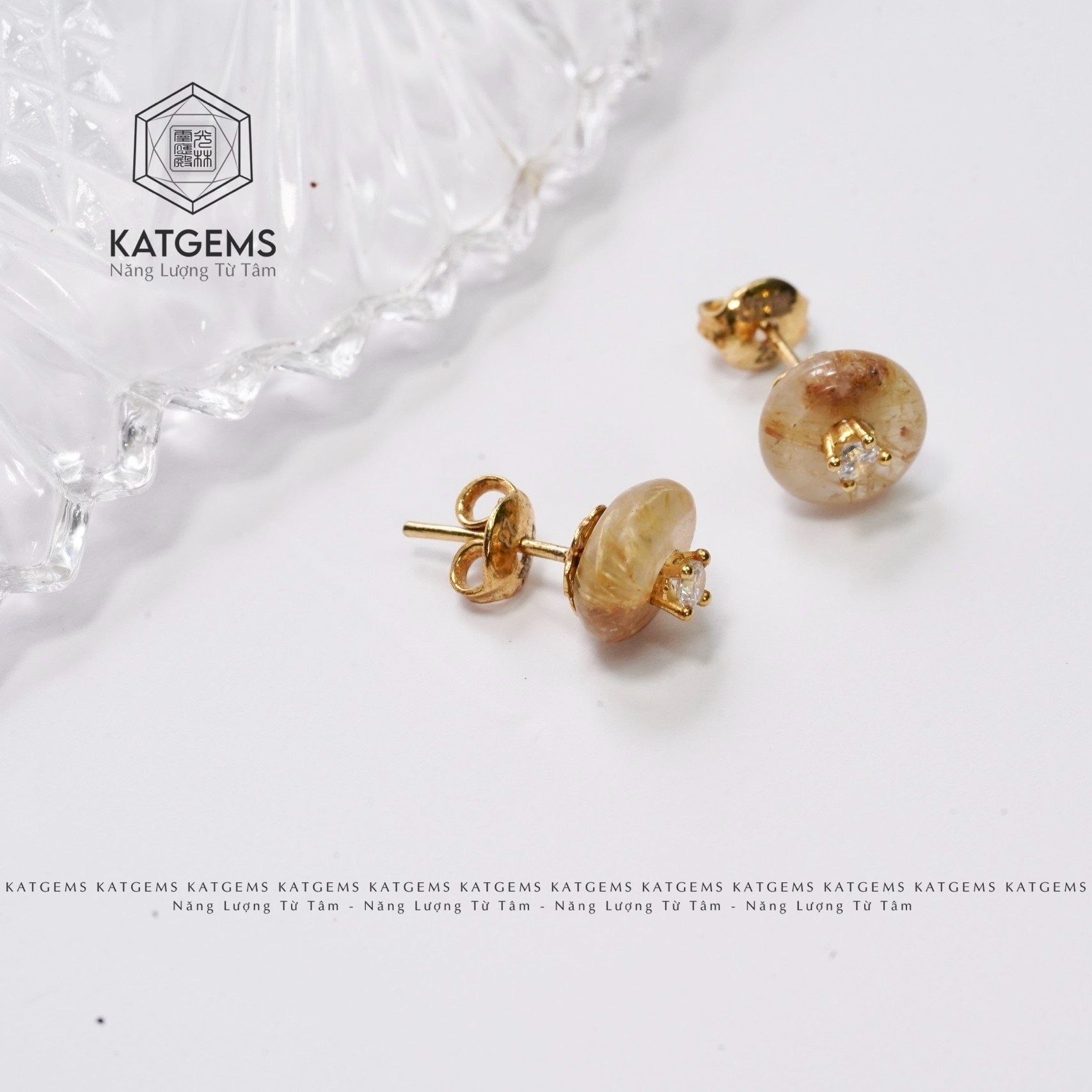 Khuyên Tai Vàng Trang Sức Thạch Anh Tóc Vàng (Kim, Thổ)