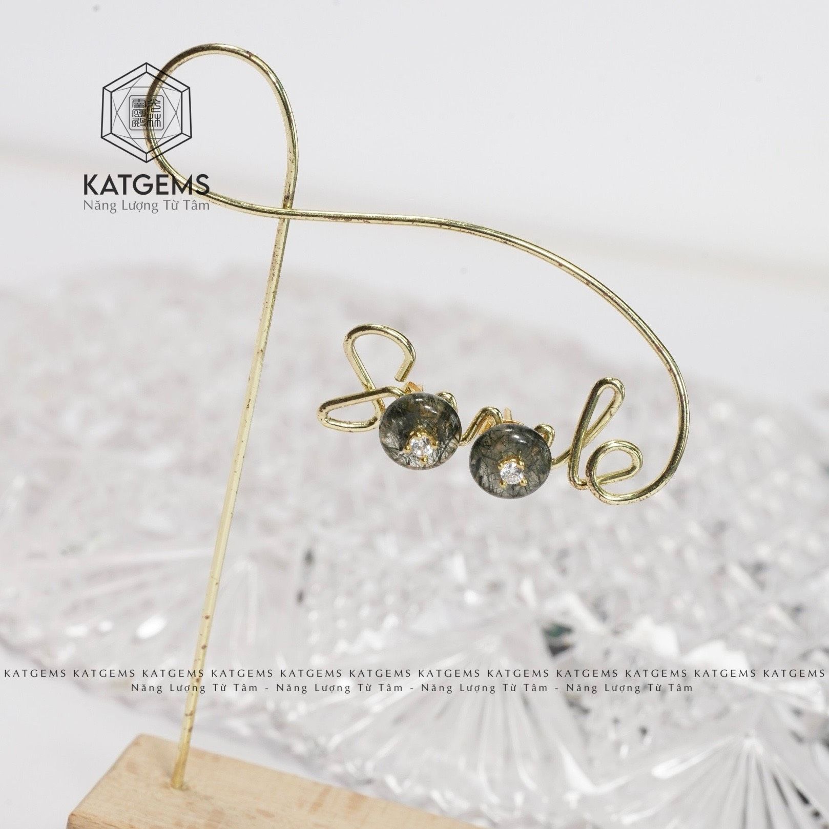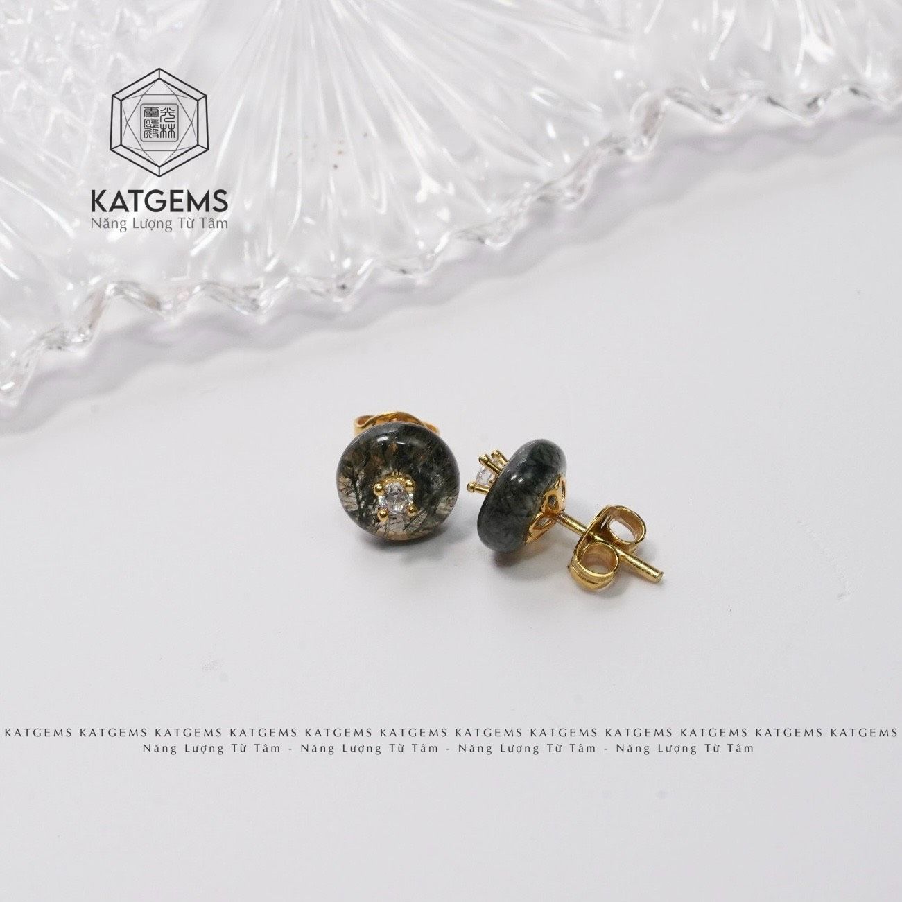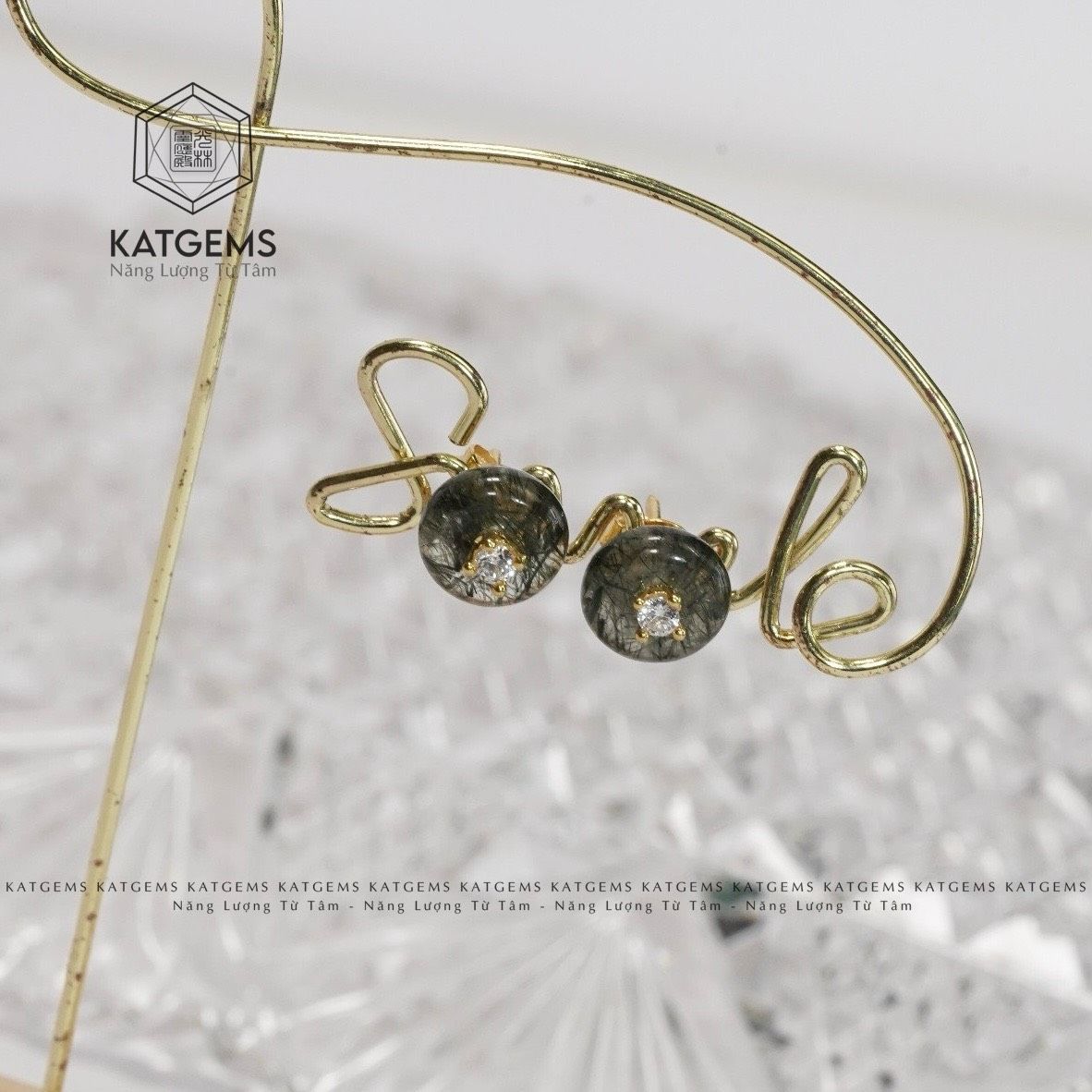 Khuyên Tai Vàng Trang Sức Thạch Anh Tóc Xanh (Mộc, Hoả)