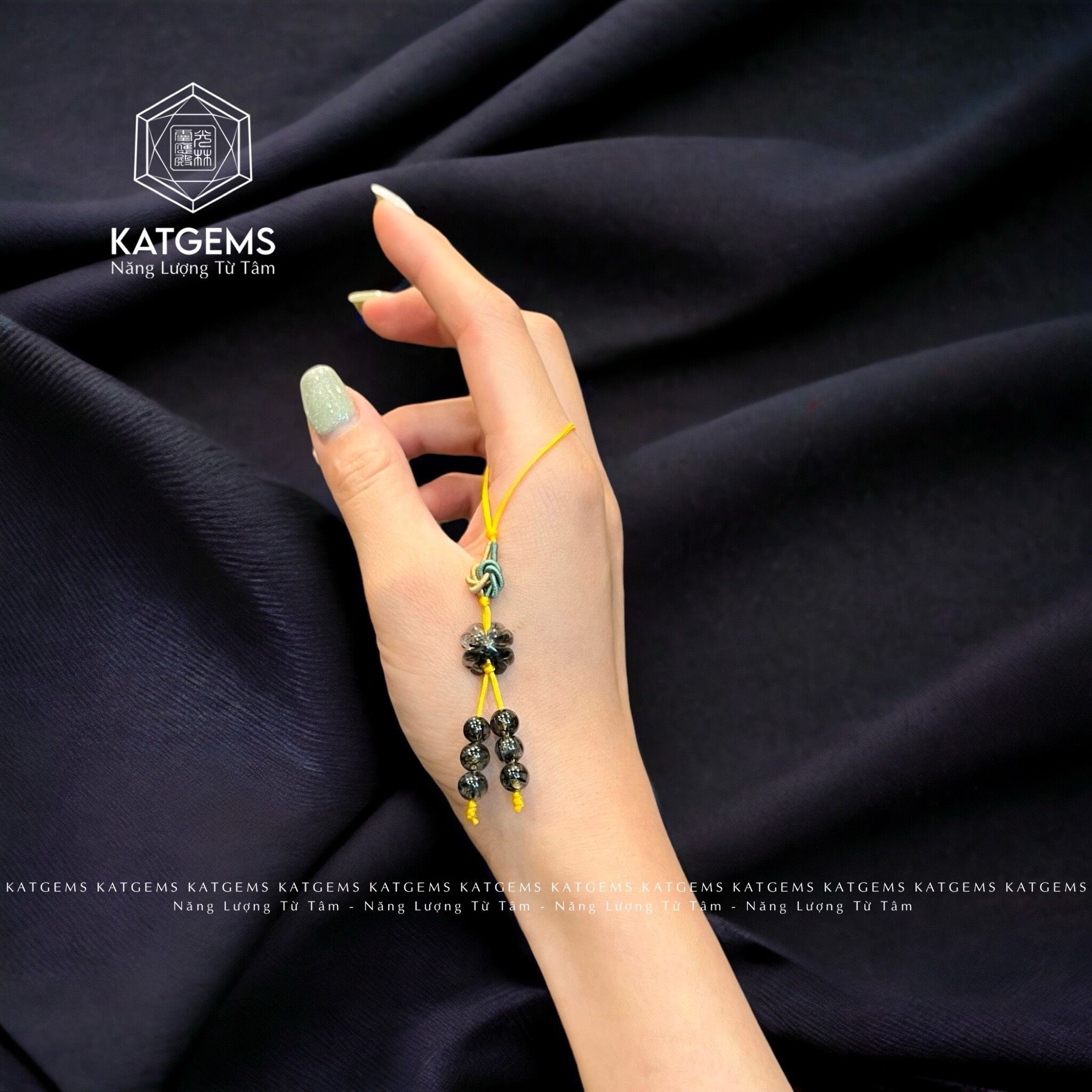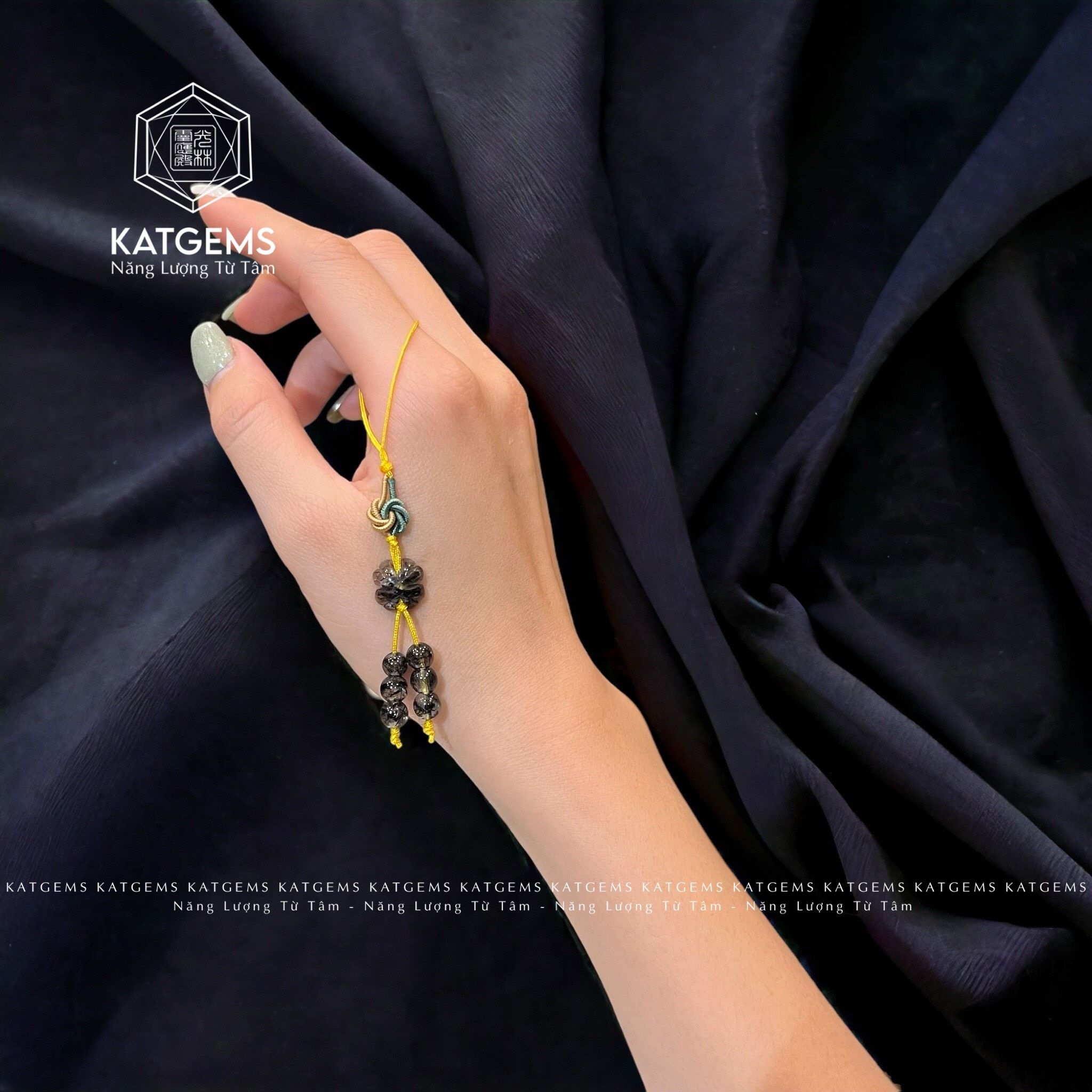 Móc Treo Điện Thoại Cỏ 4 Lá May Mắn Thạch Anh Tóc Đen (Thủy, Mộc)