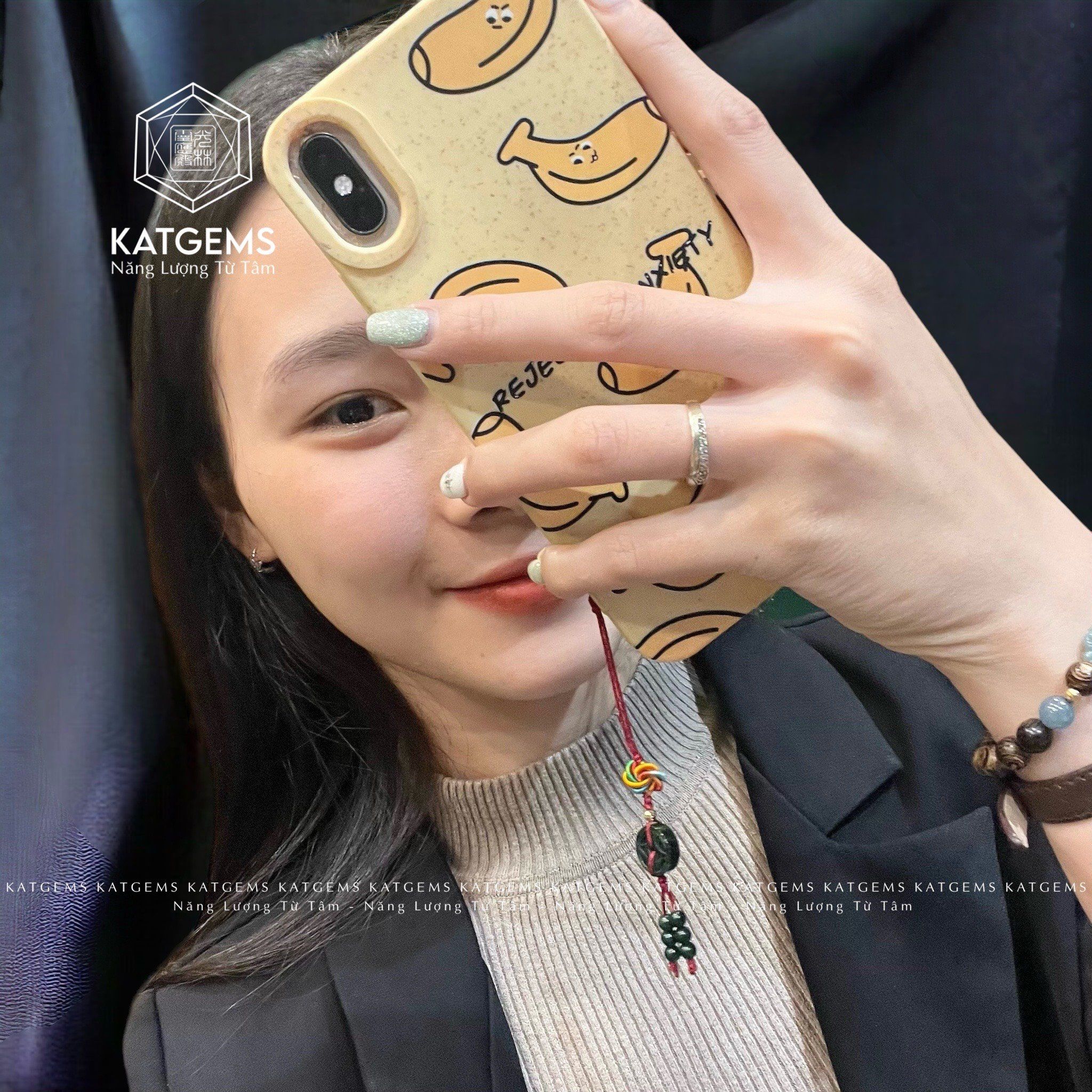 Móc Treo Điện Thoại Kim Tiền Ngọc Cẩm Thạch Sơn Thủy (Type B) (Không Kén Mệnh)