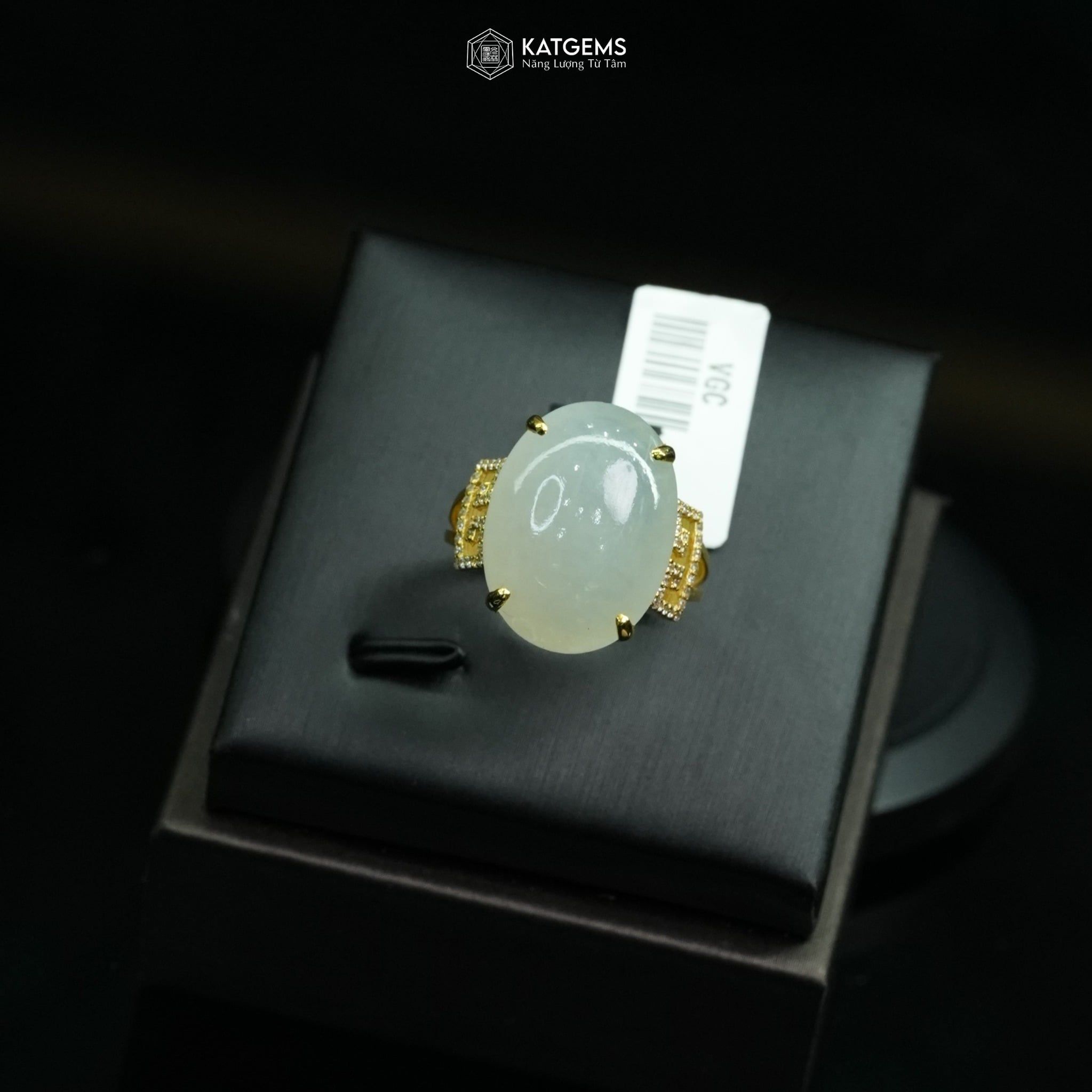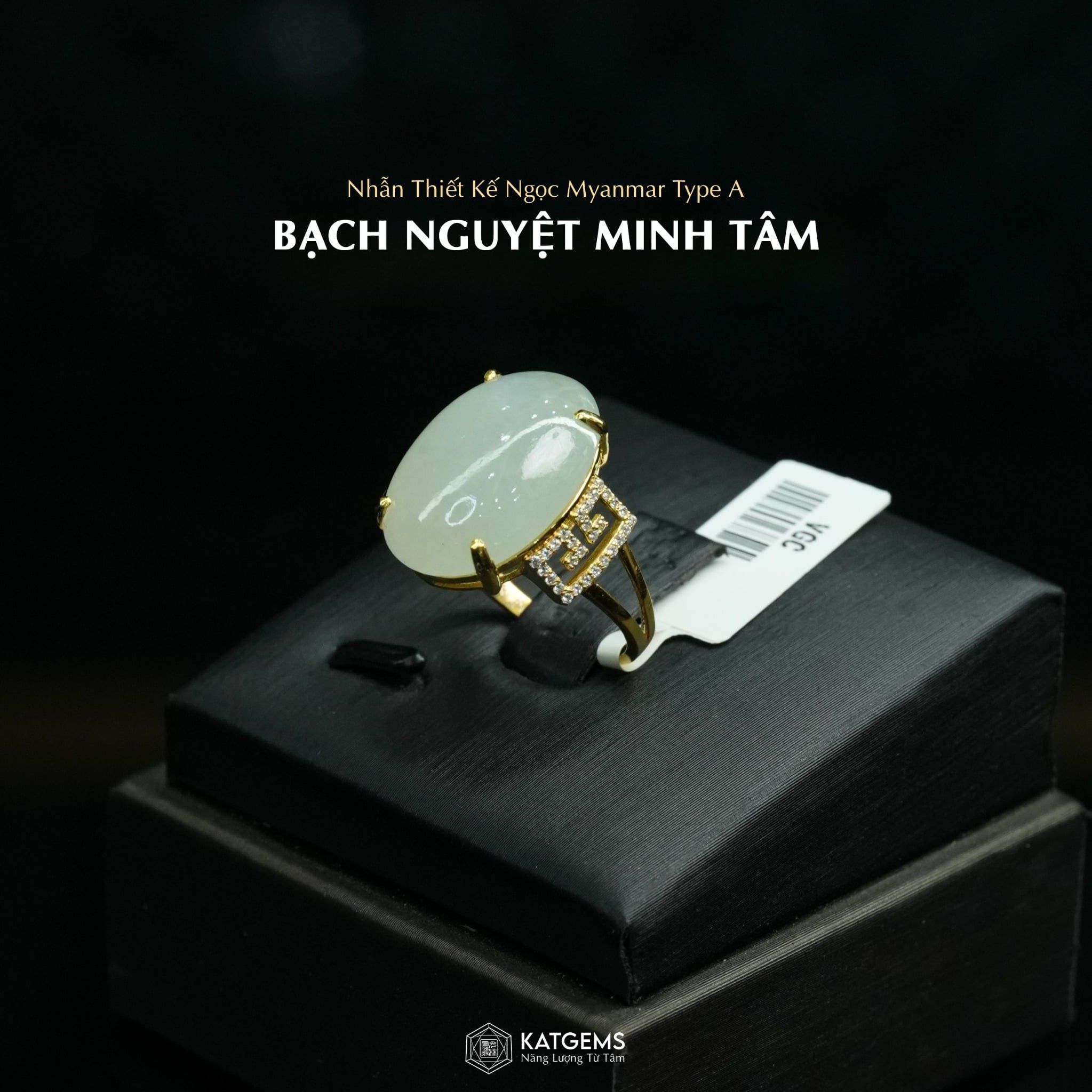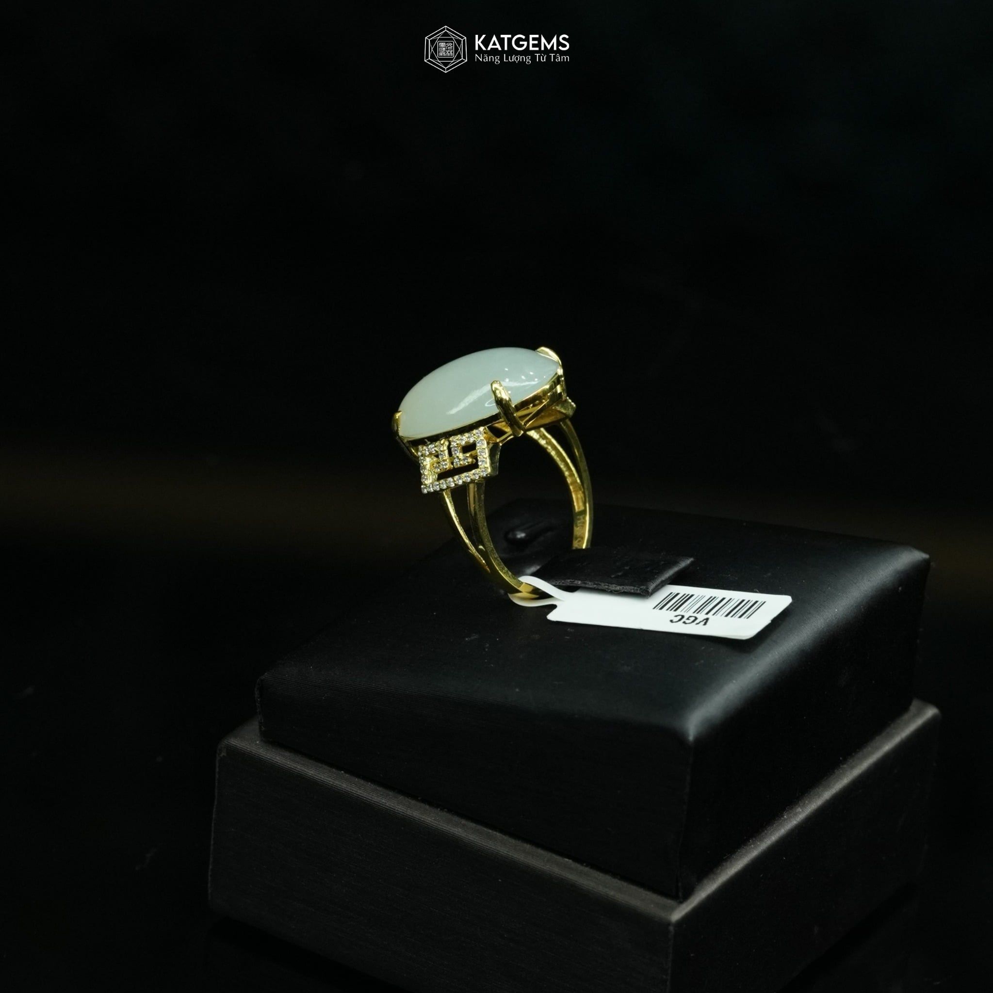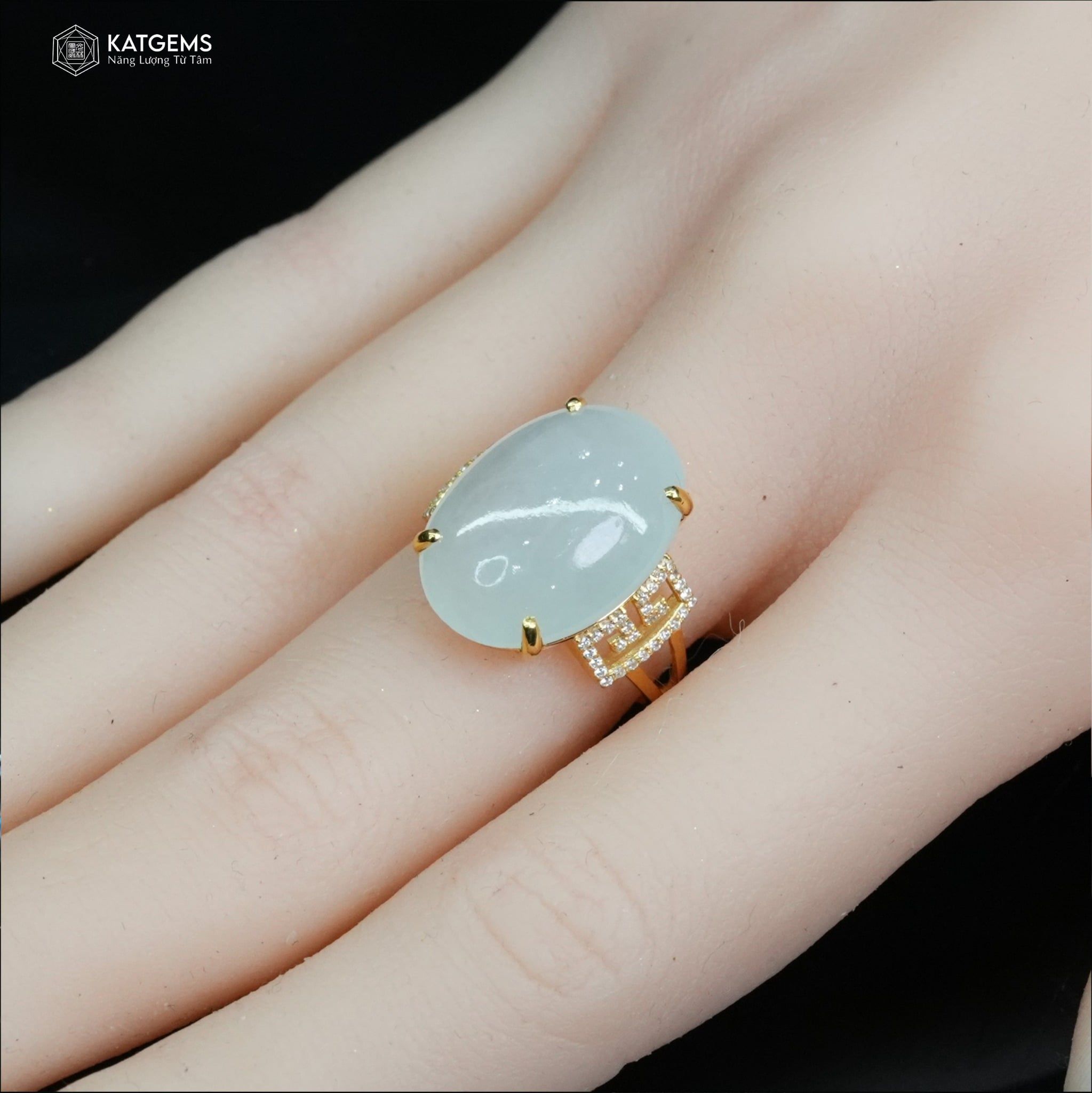 Nhẫn "Bạch Nguyệt Minh Tâm" Ngọc Myanmar Type A KT 17 x 13 x 5 Vàng Trang Sức (Không Kén Mệnh)