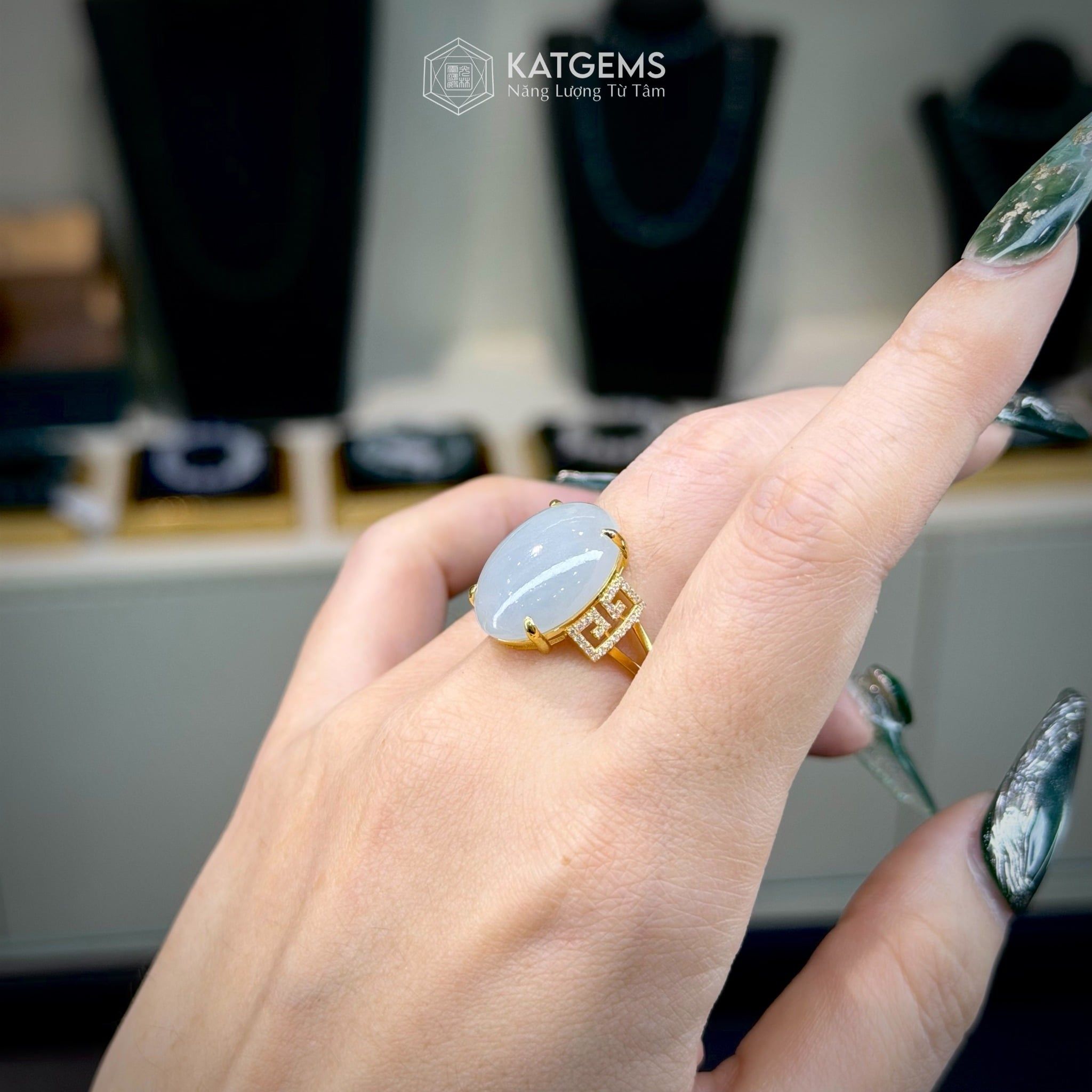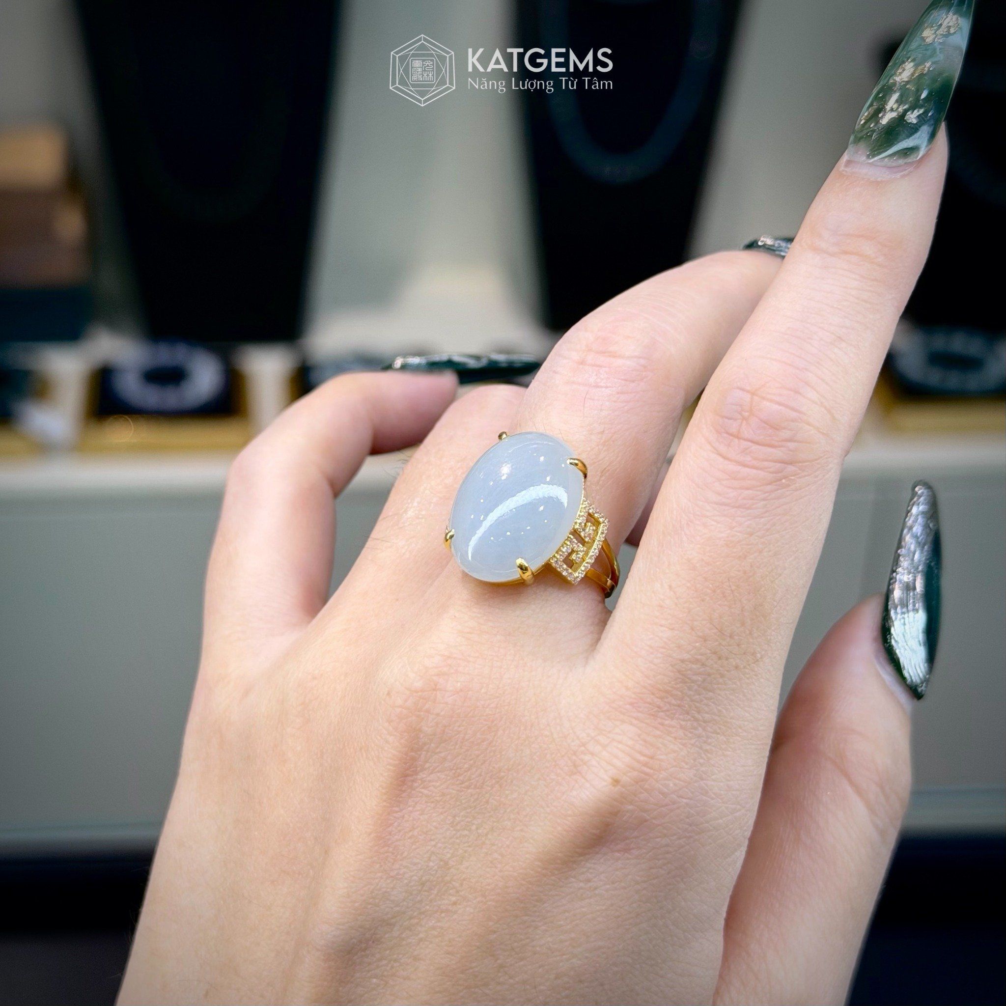 Nhẫn "Bạch Nguyệt Minh Tâm" Ngọc Myanmar Type A KT 17 x 13 x 5 Vàng Trang Sức (Không Kén Mệnh)