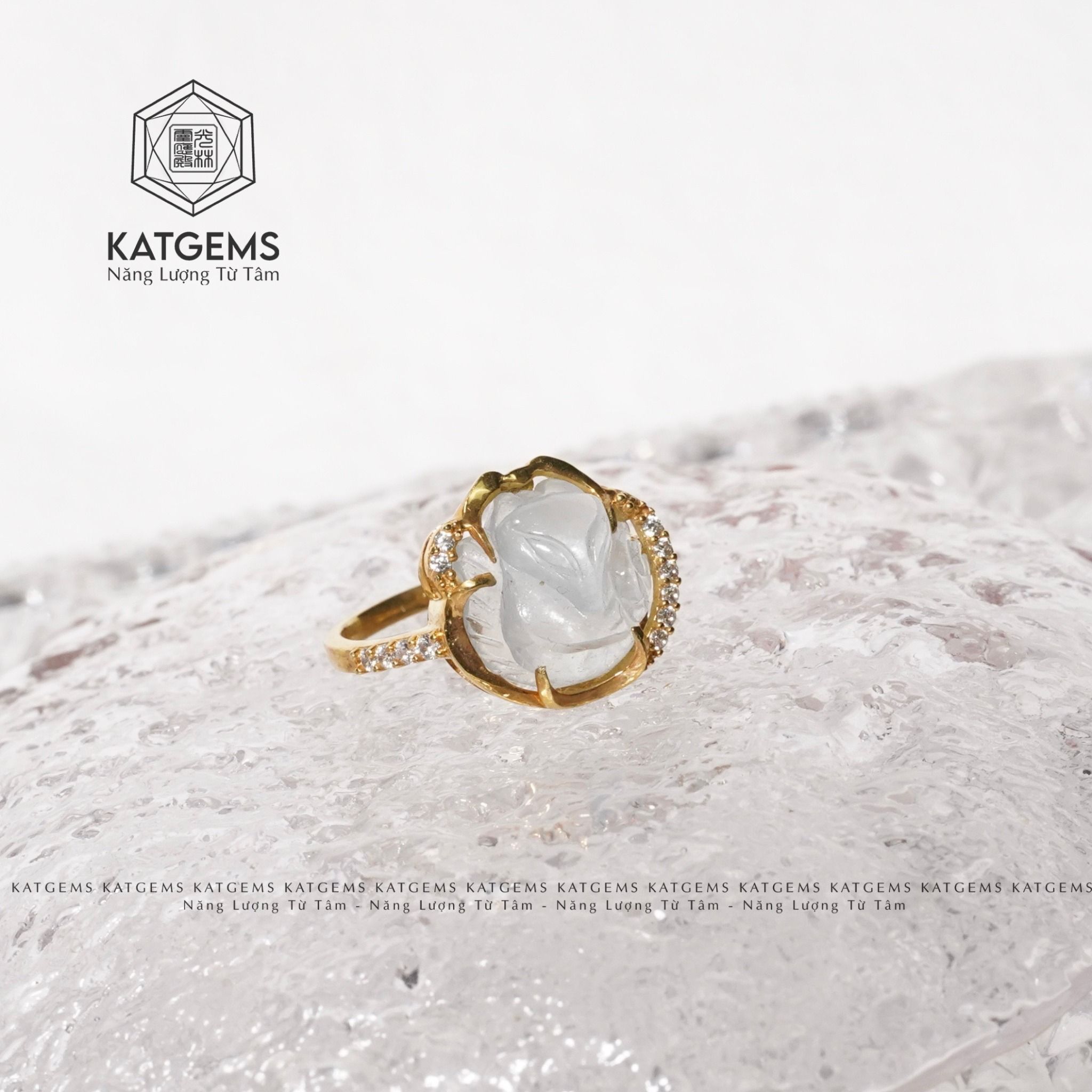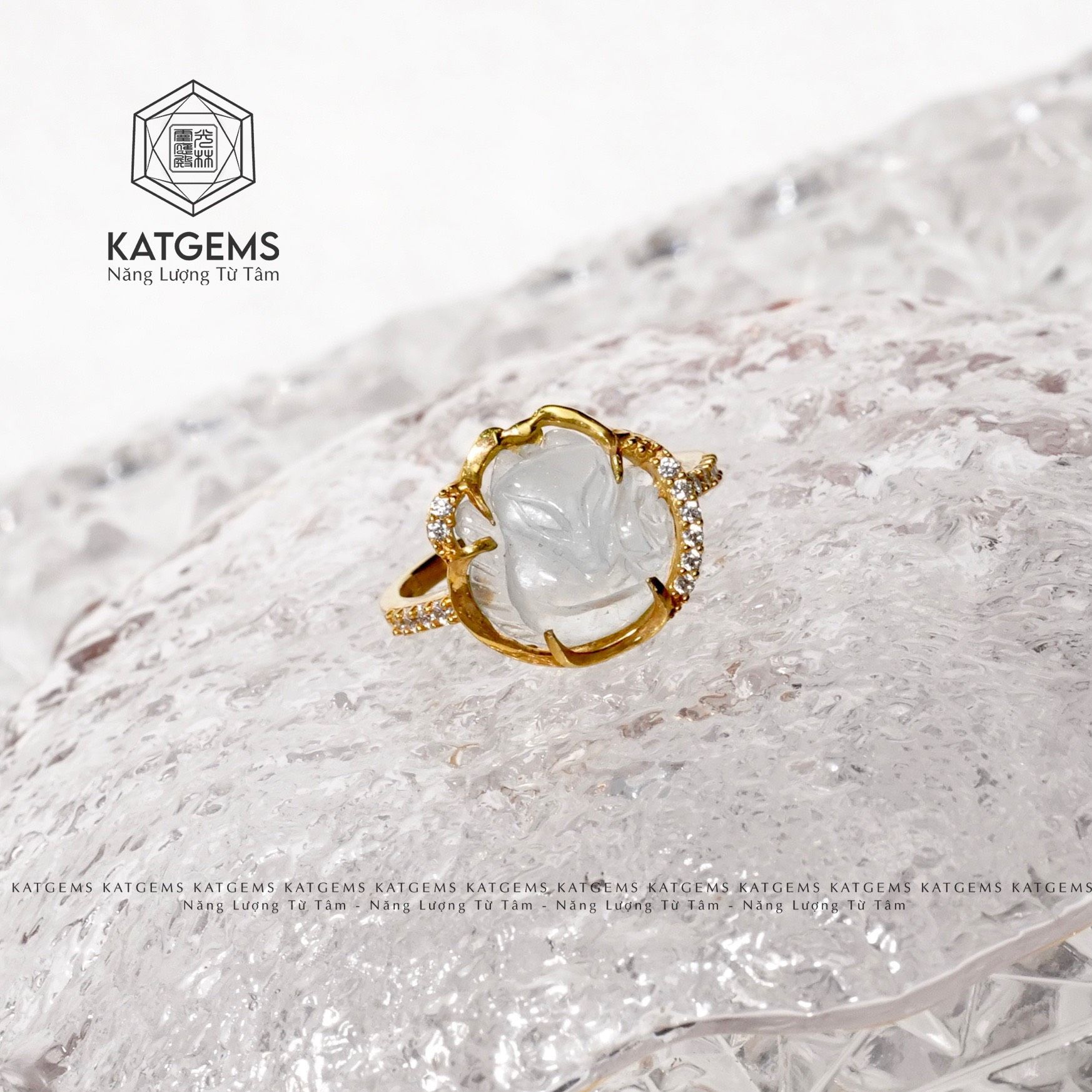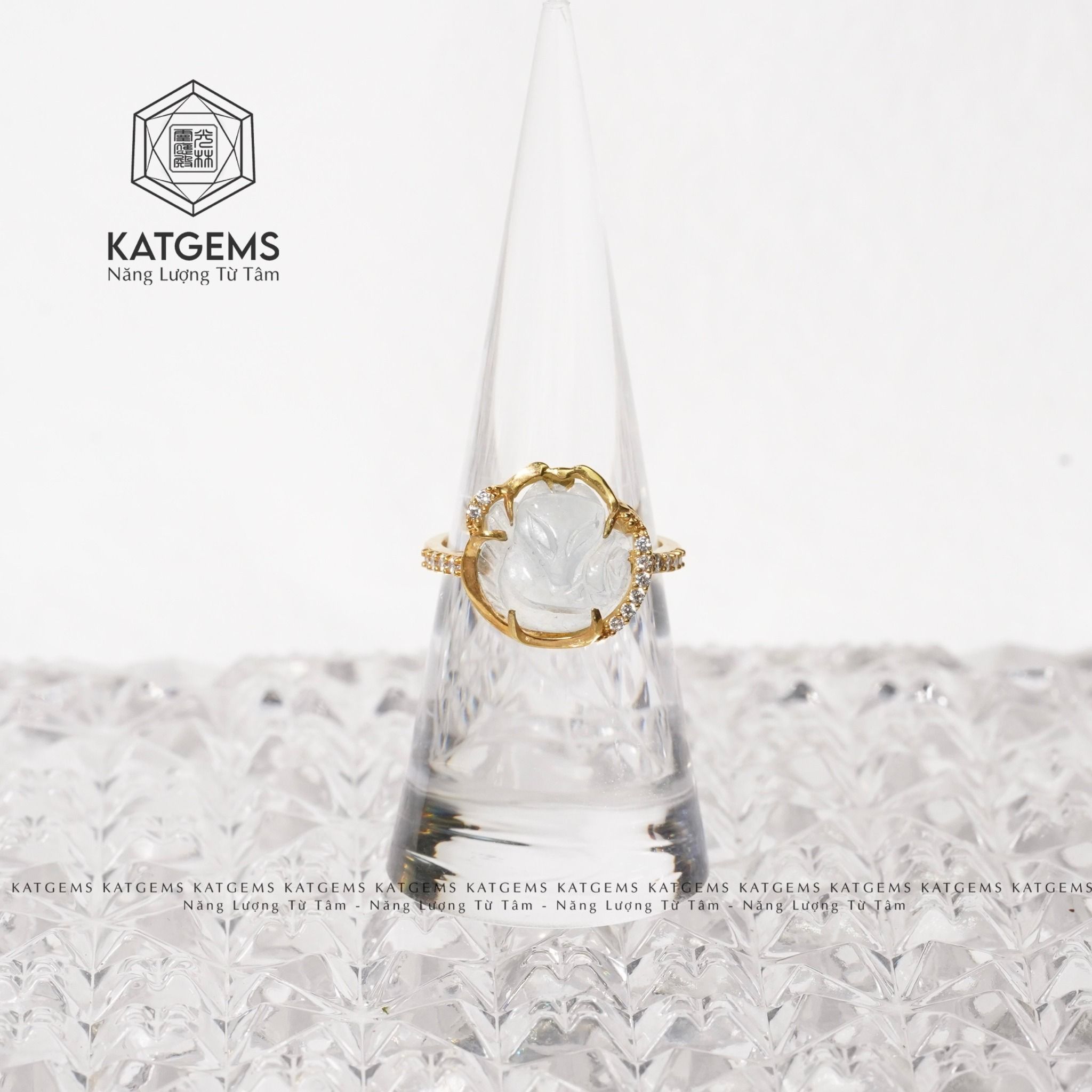 Nhẫn Hồ Ly Bọc Vàng Trang Sức Moonstone (Kim, Thuỷ)