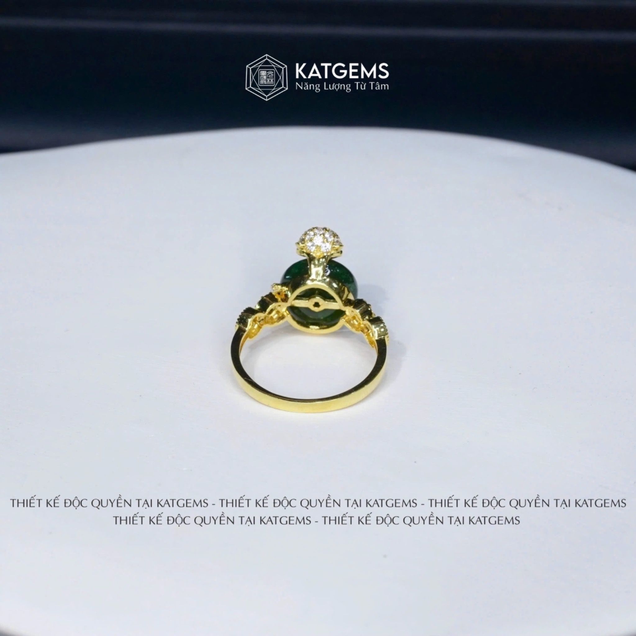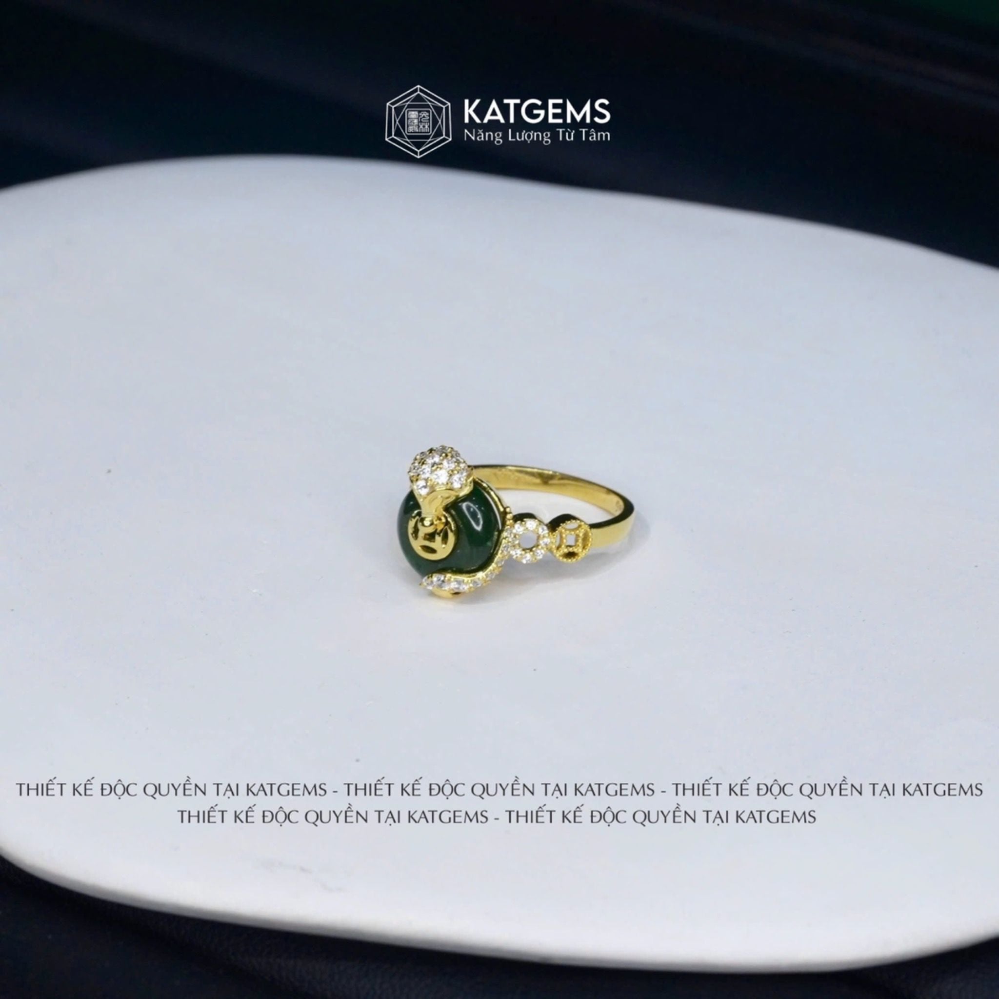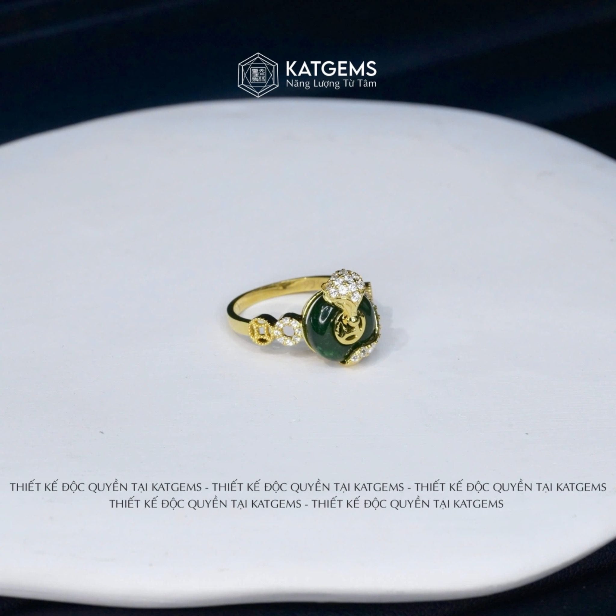 Nhẫn Hồ Thiên Cửu Vận Ngọc Bích Canada Thiết Kế Độc Quyền Đồng Điếu KT: 10x4ly Vàng Trang Sức VIP (Không Kén Mệnh)