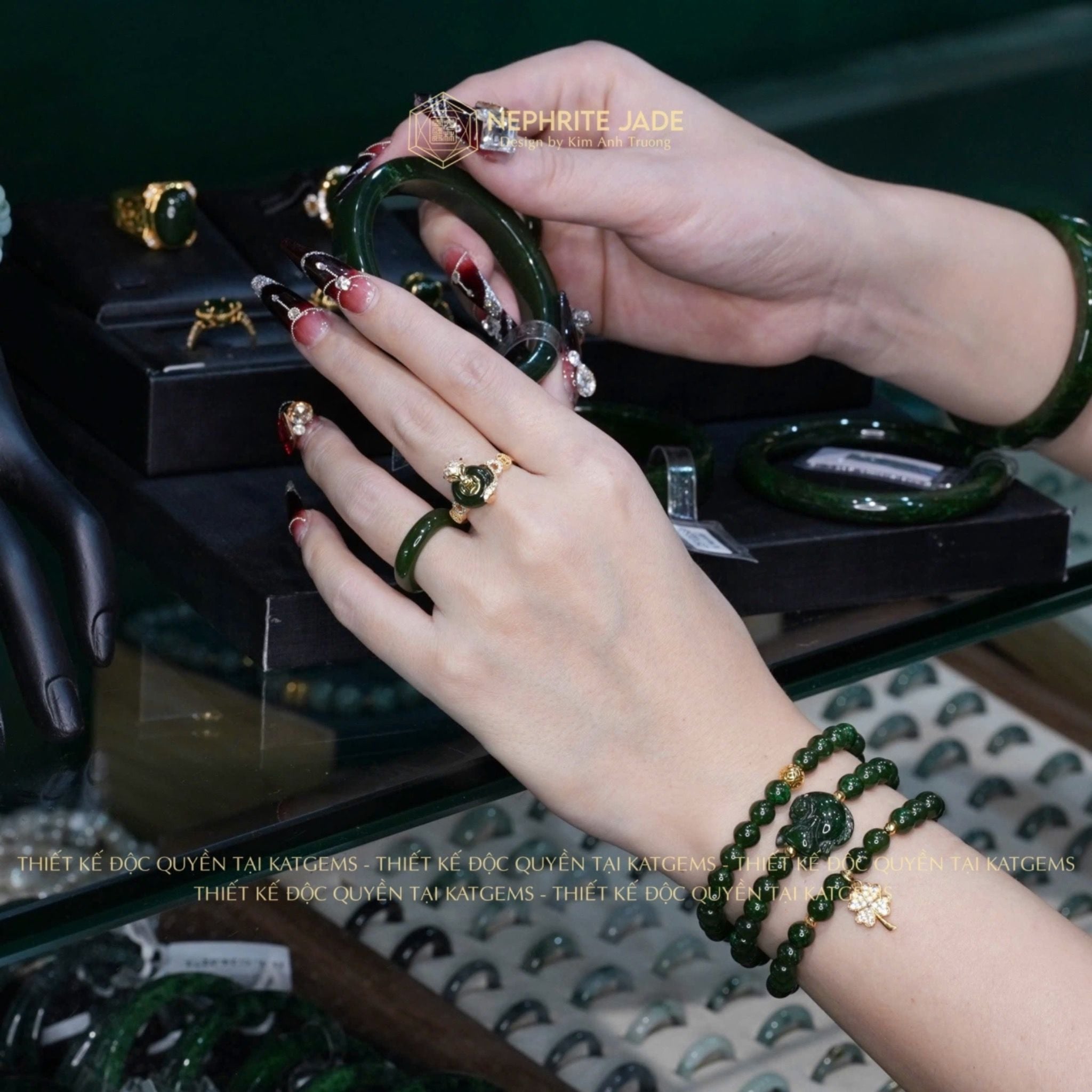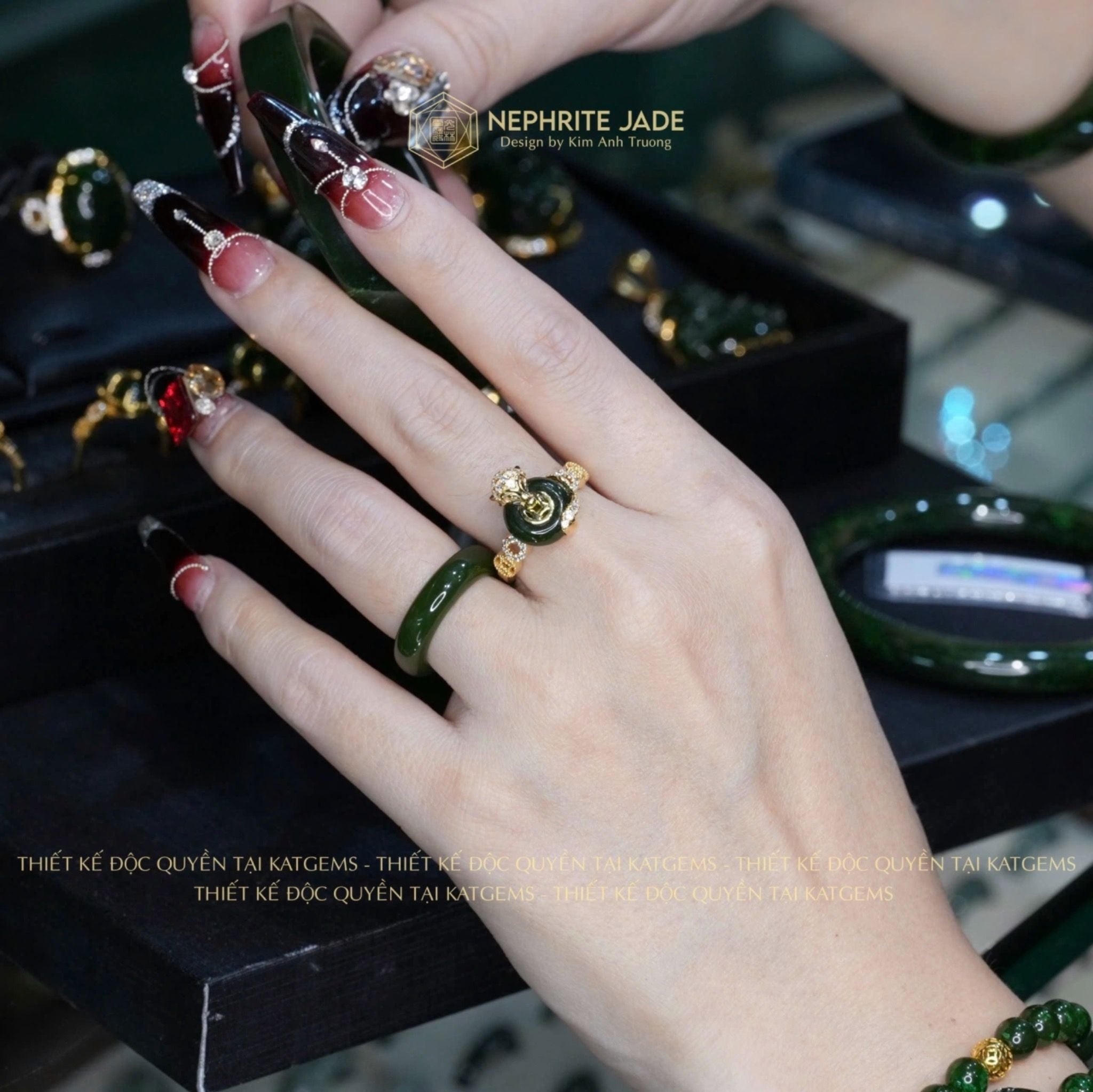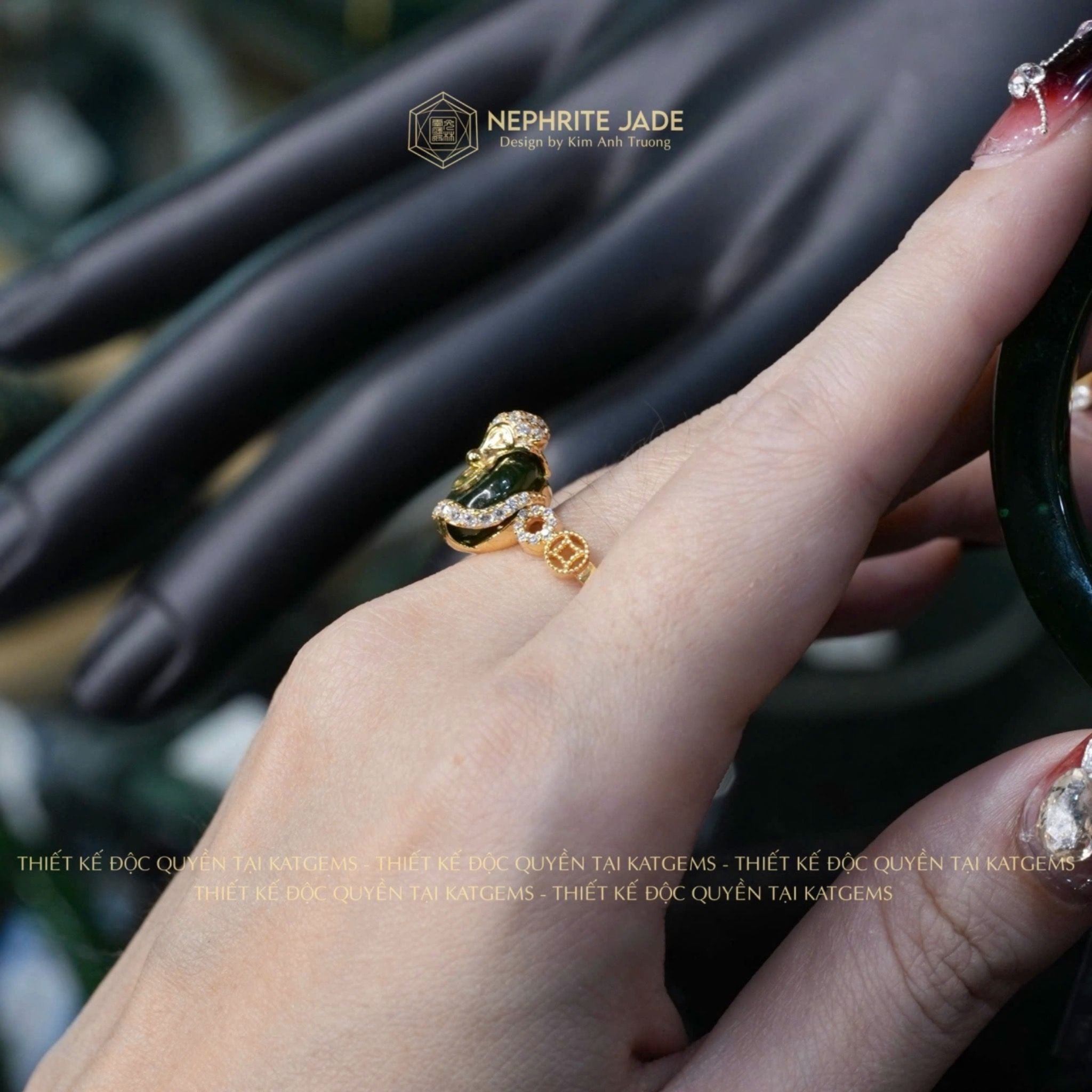 Nhẫn Hồ Thiên Cửu Vận Ngọc Bích Canada Thiết Kế Độc Quyền Đồng Điếu KT: 10x4ly Vàng Trang Sức VIP (Không Kén Mệnh)