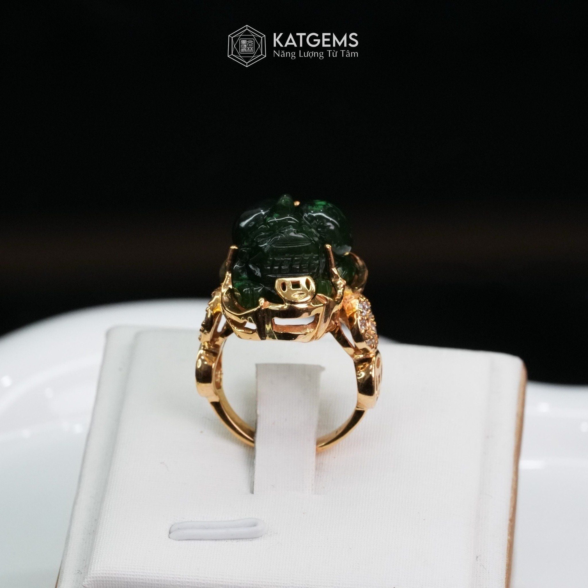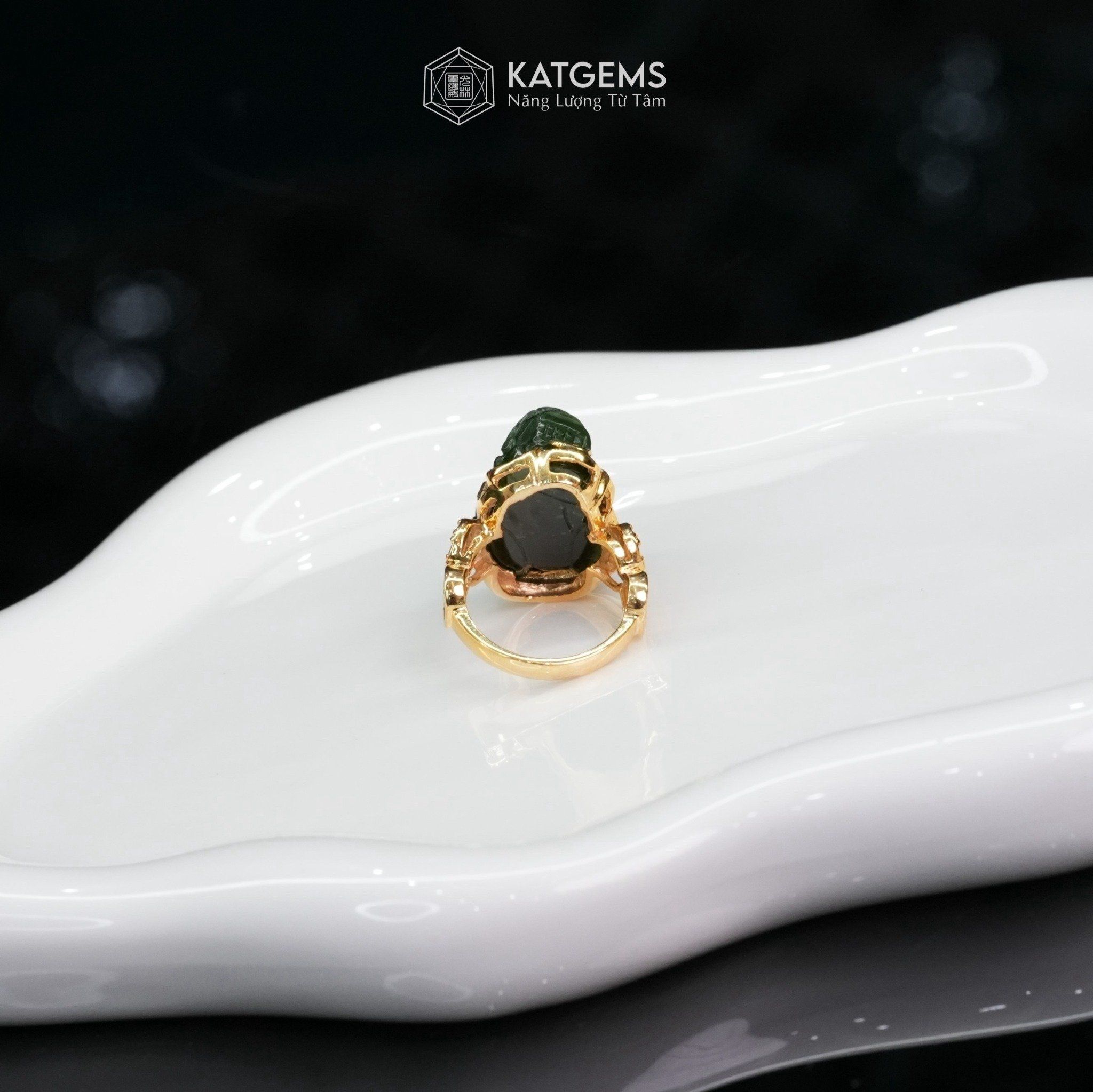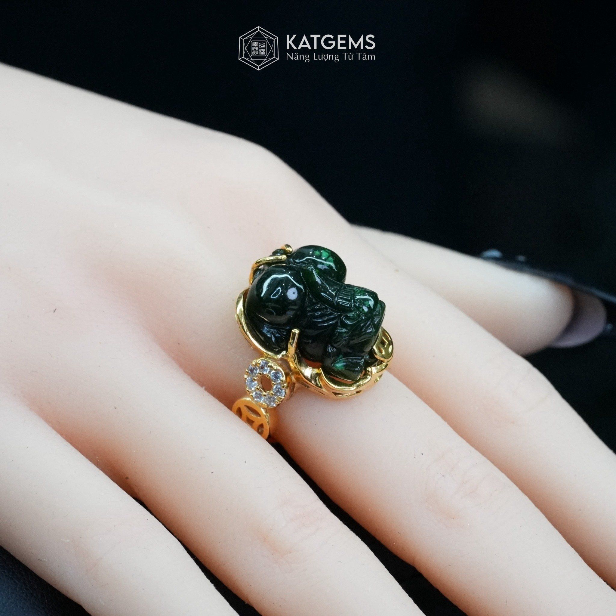 Nhẫn Kim Ngọc Phúc Lộc Mặt Tỳ Hưu Ngọc Bích Canada 18x12x10ly Vàng Trang Sức VIP (Không Kén Mệnh)