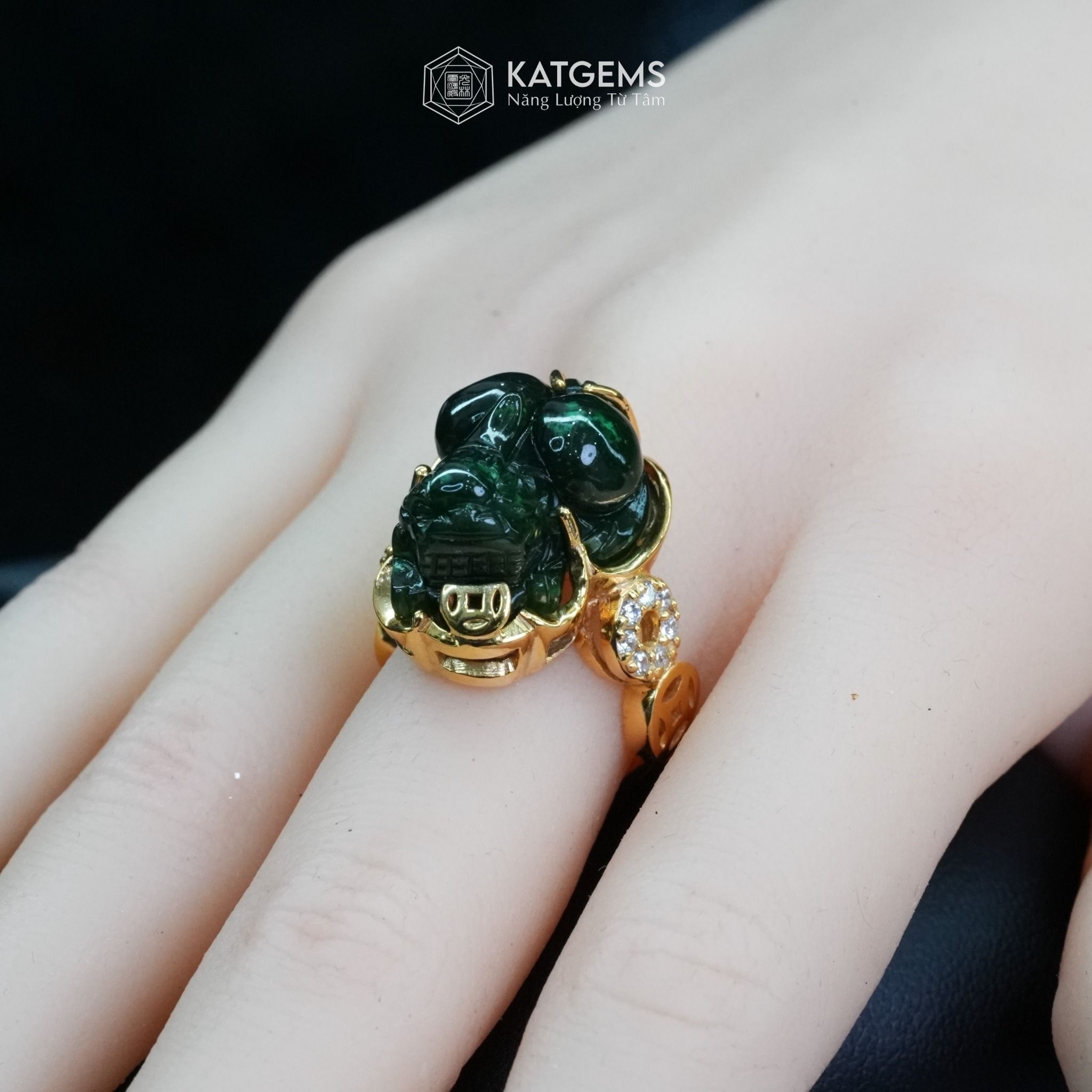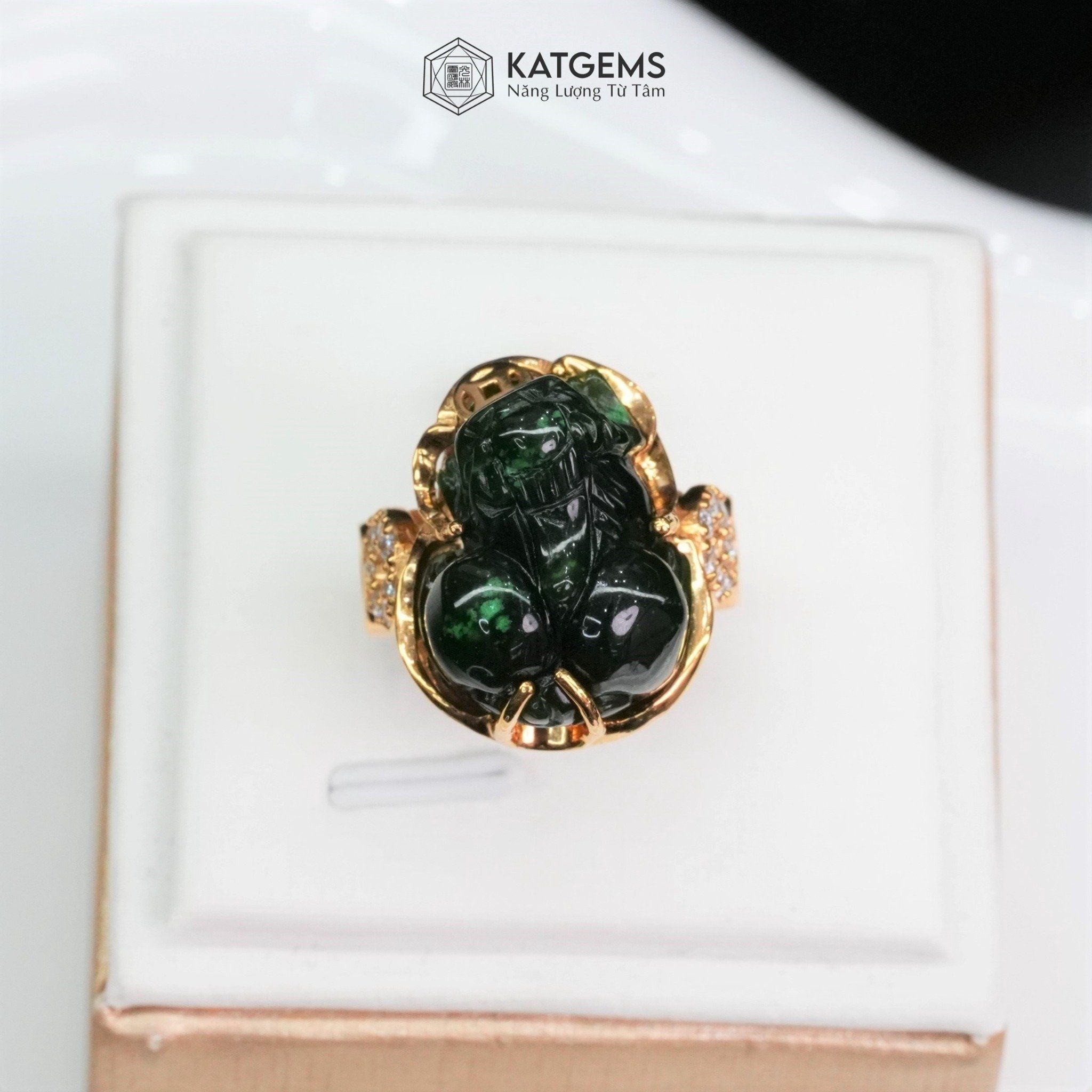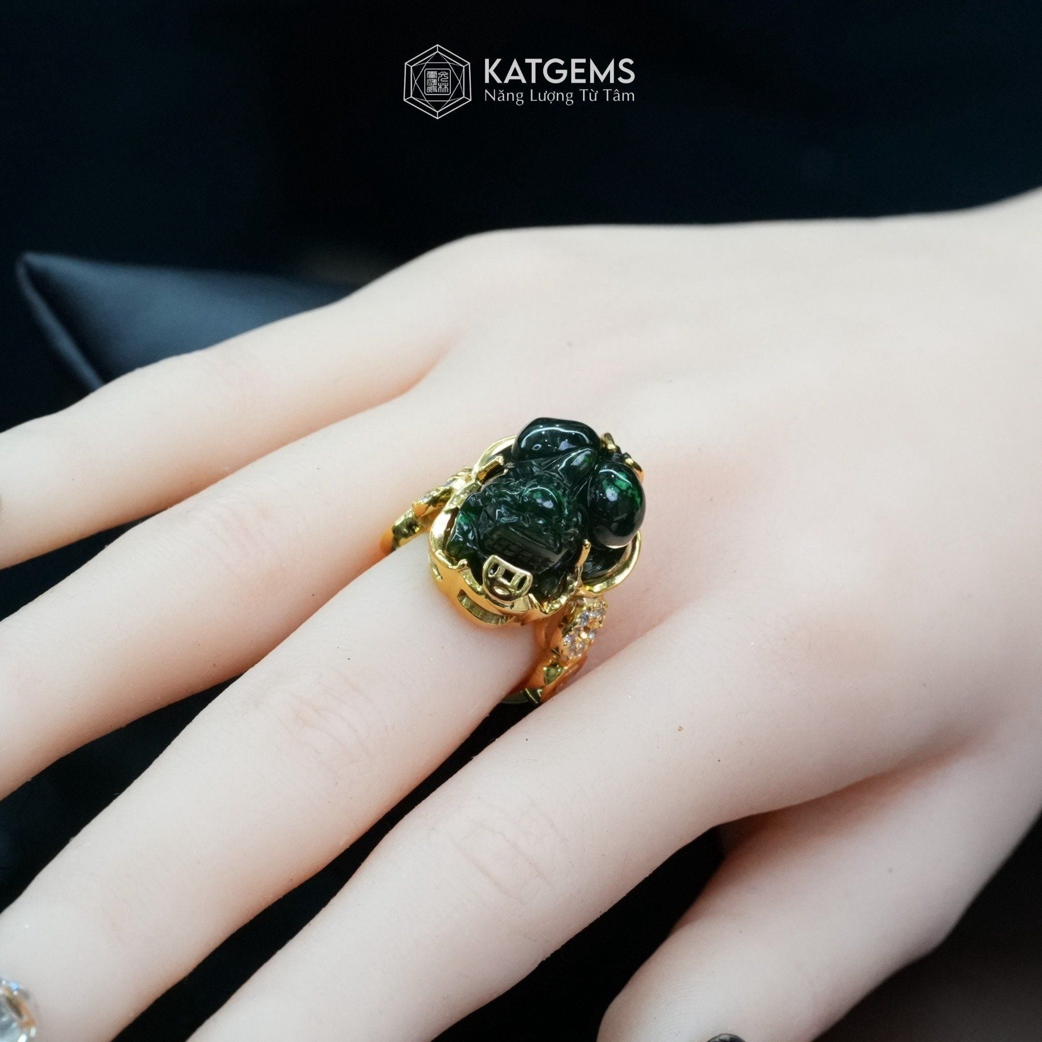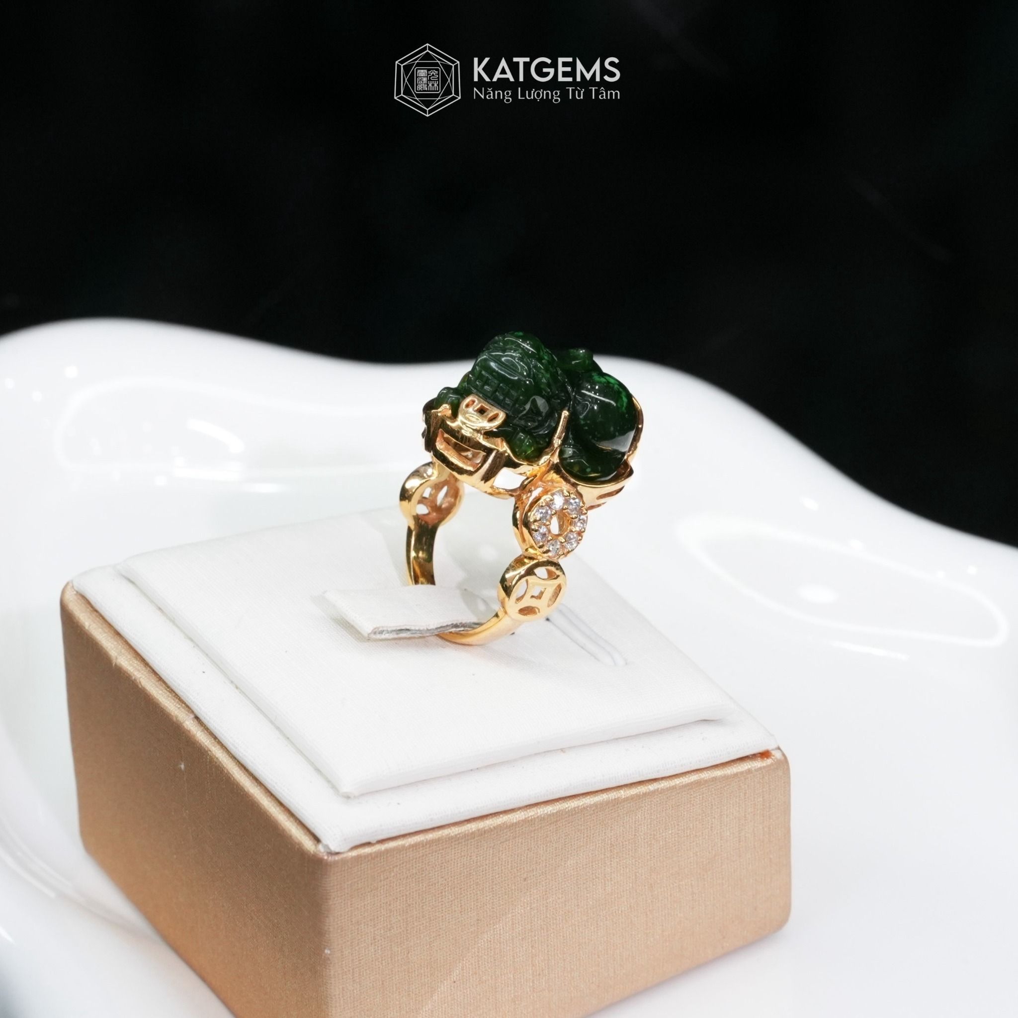 Nhẫn Kim Ngọc Phúc Lộc Mặt Tỳ Hưu Ngọc Bích Canada 18x12x10ly Vàng Trang Sức VIP (Không Kén Mệnh)