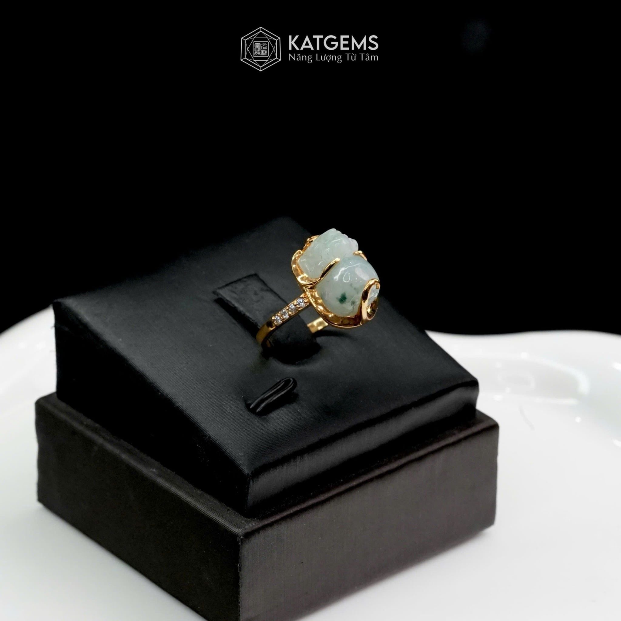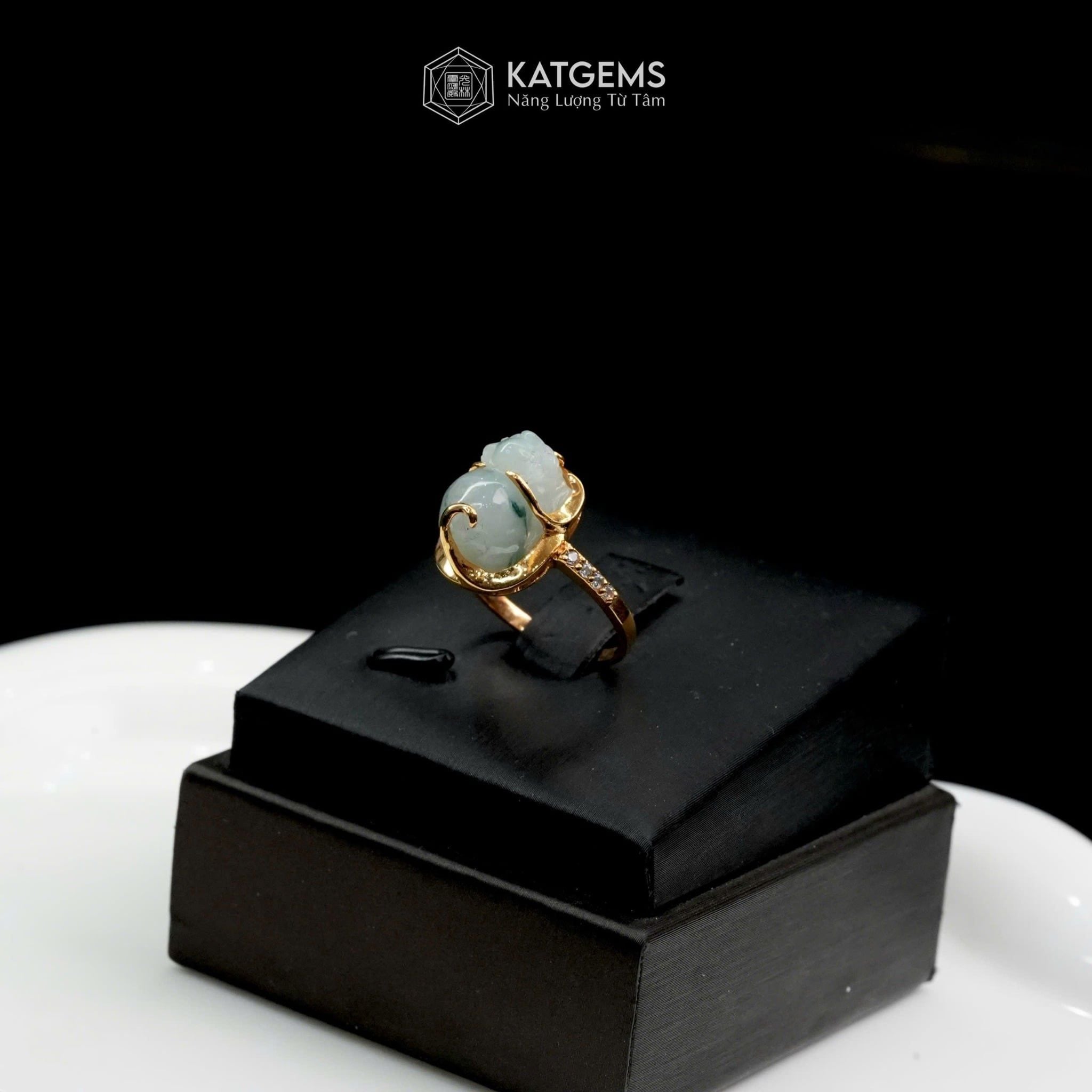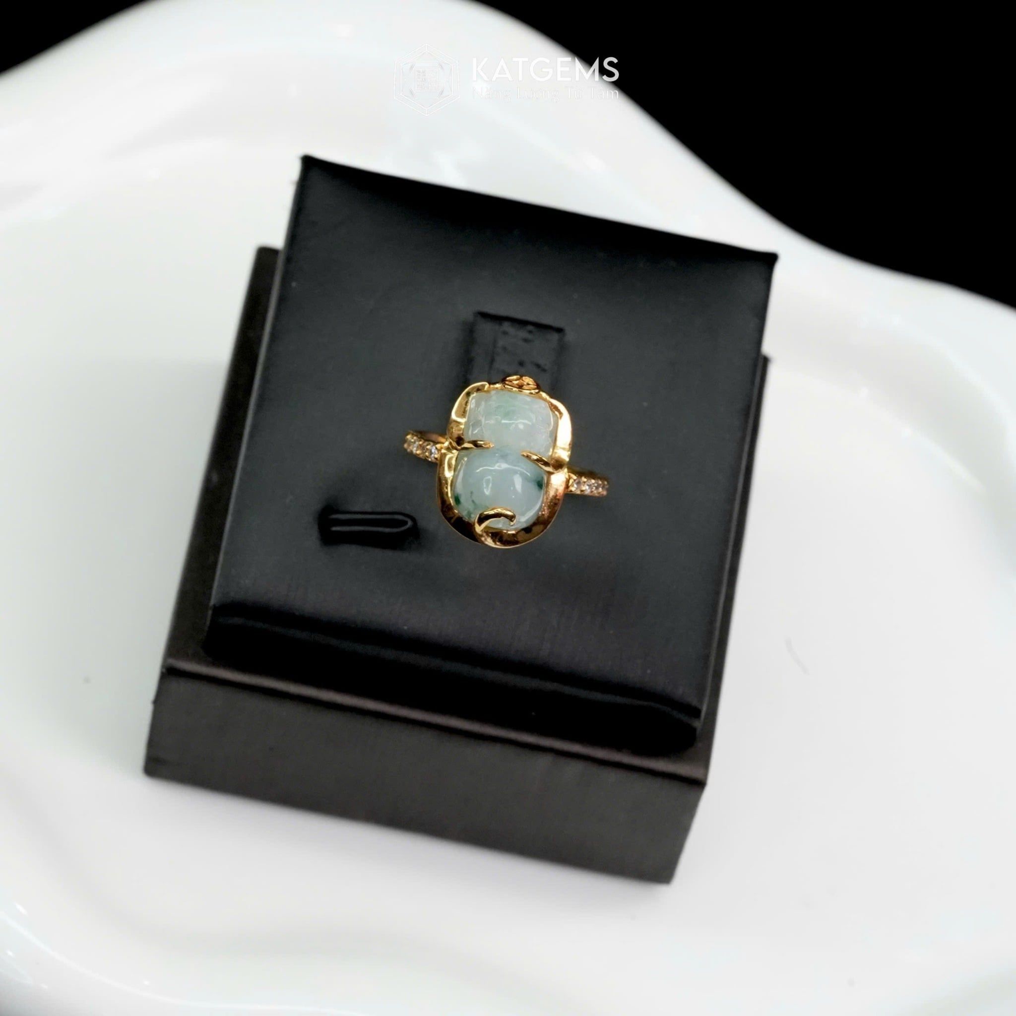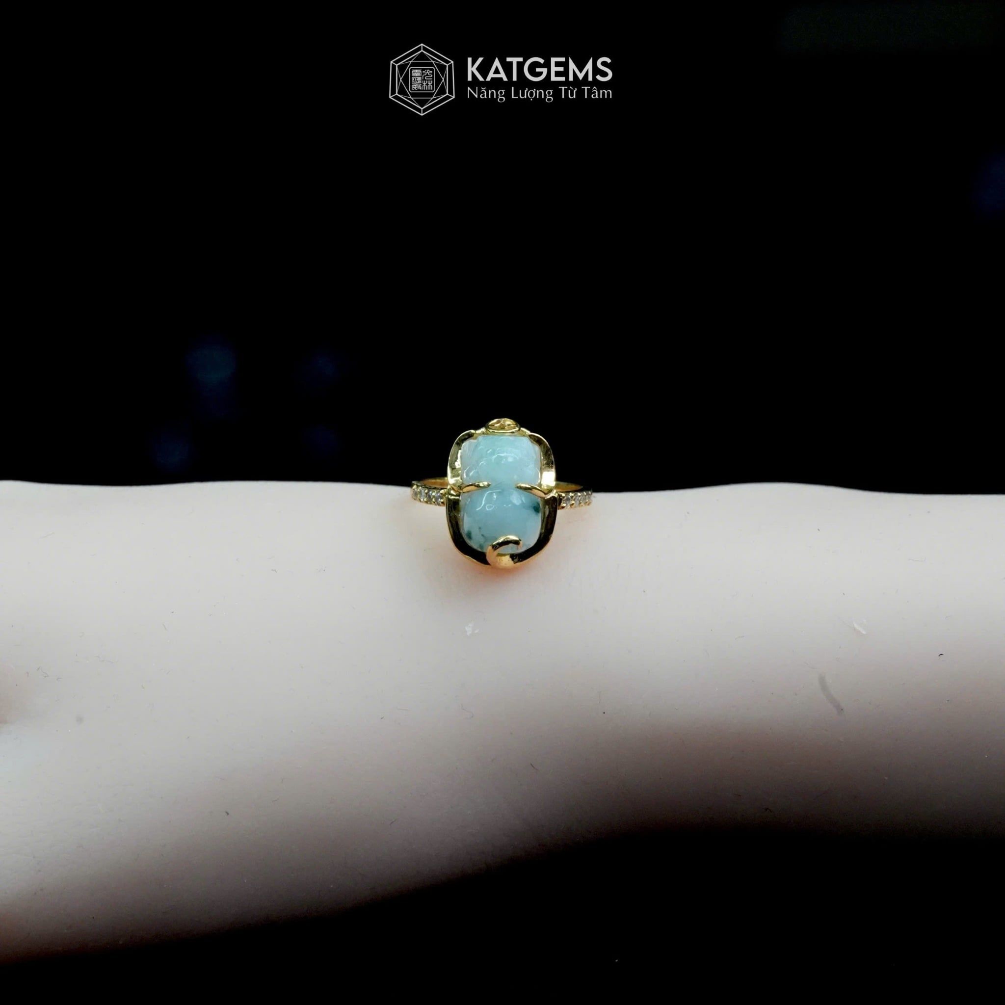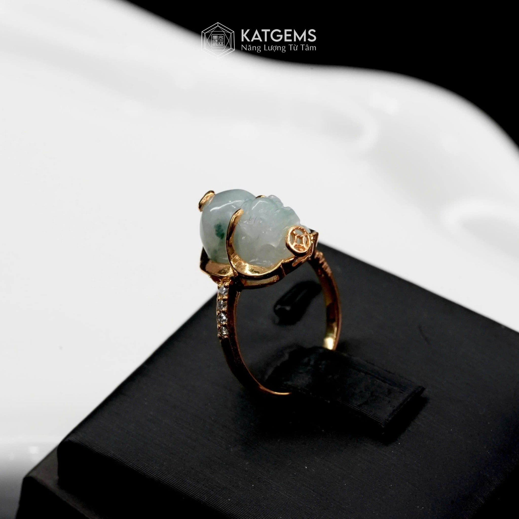 Nhẫn Kim Ngọc Tụ Bảo Mặt Tỳ Hưu Ngọc Phỉ Thúy Hoa Bay 10x9x6ly Vàng Trang Sức VIP (Không Kén Mệnh)