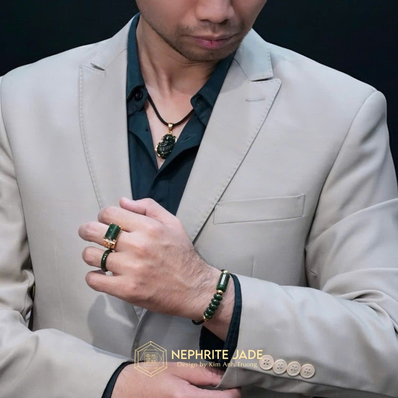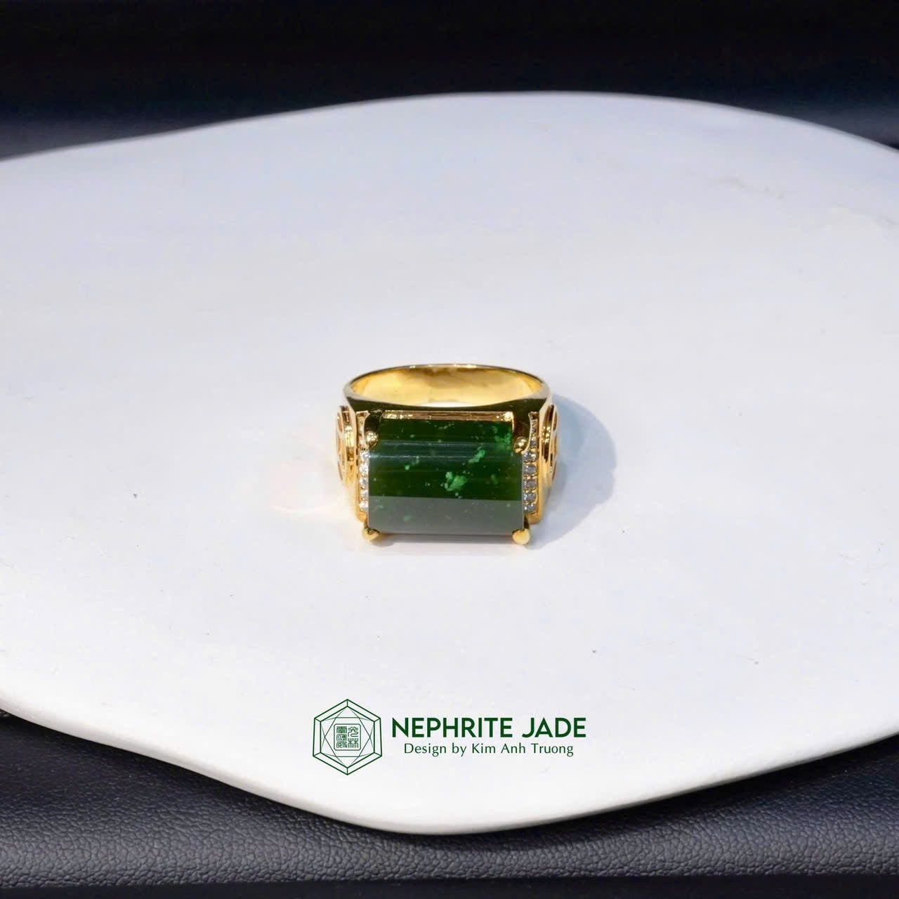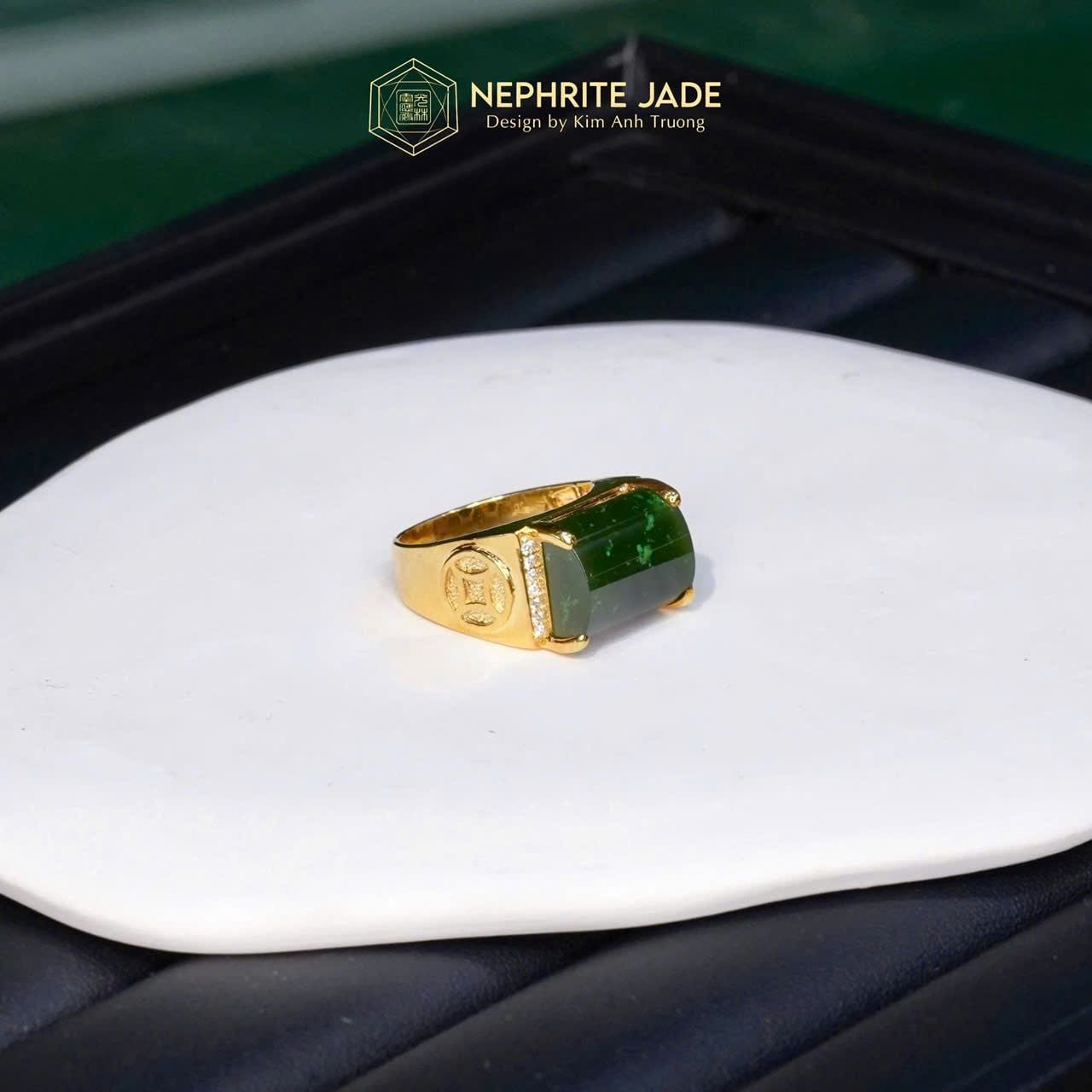 Nhẫn Nam Đại Hoàng Bảo Lộc Vàng Trang Sức Viên Chủ Ngọc Bích Canada (Không Kén Mệnh)
