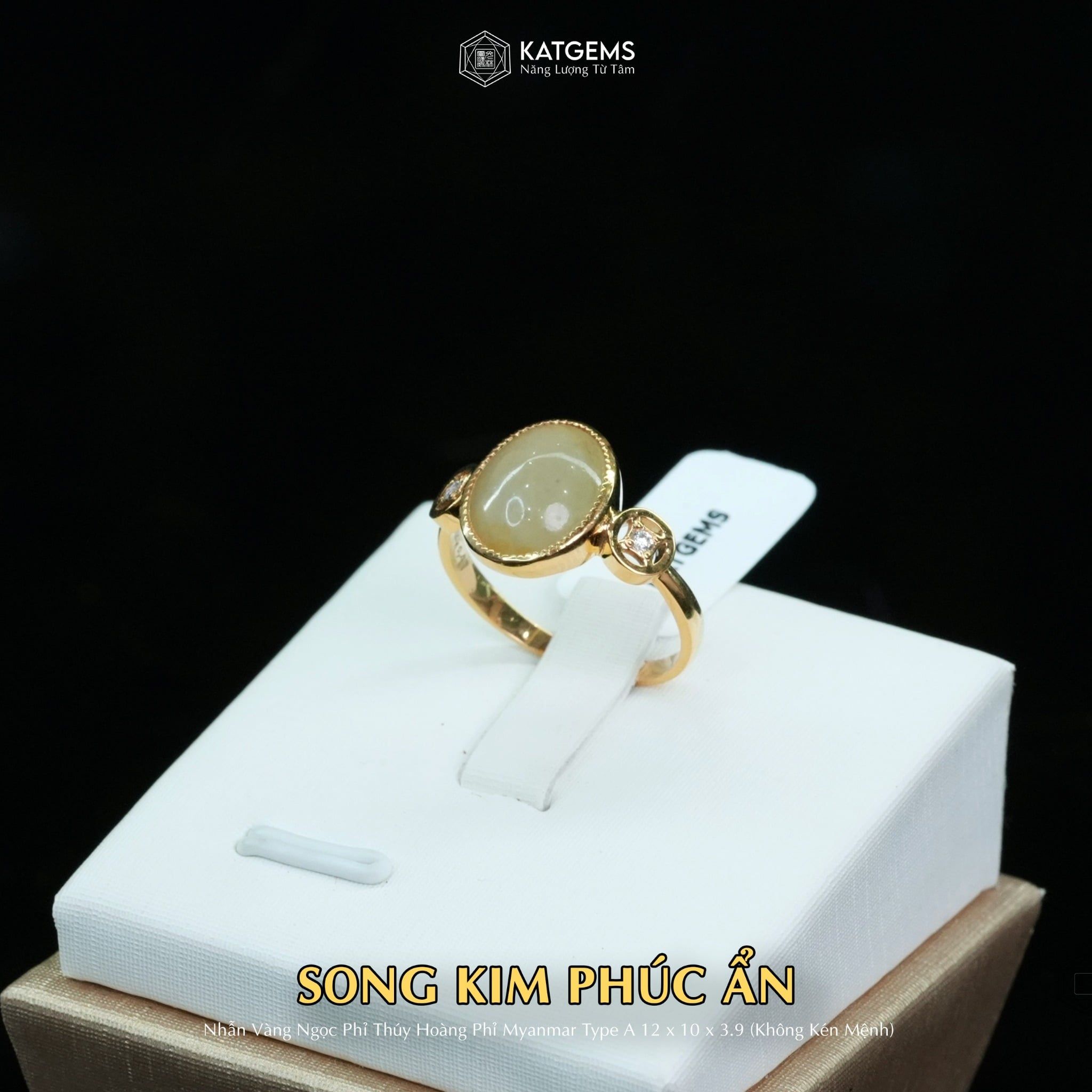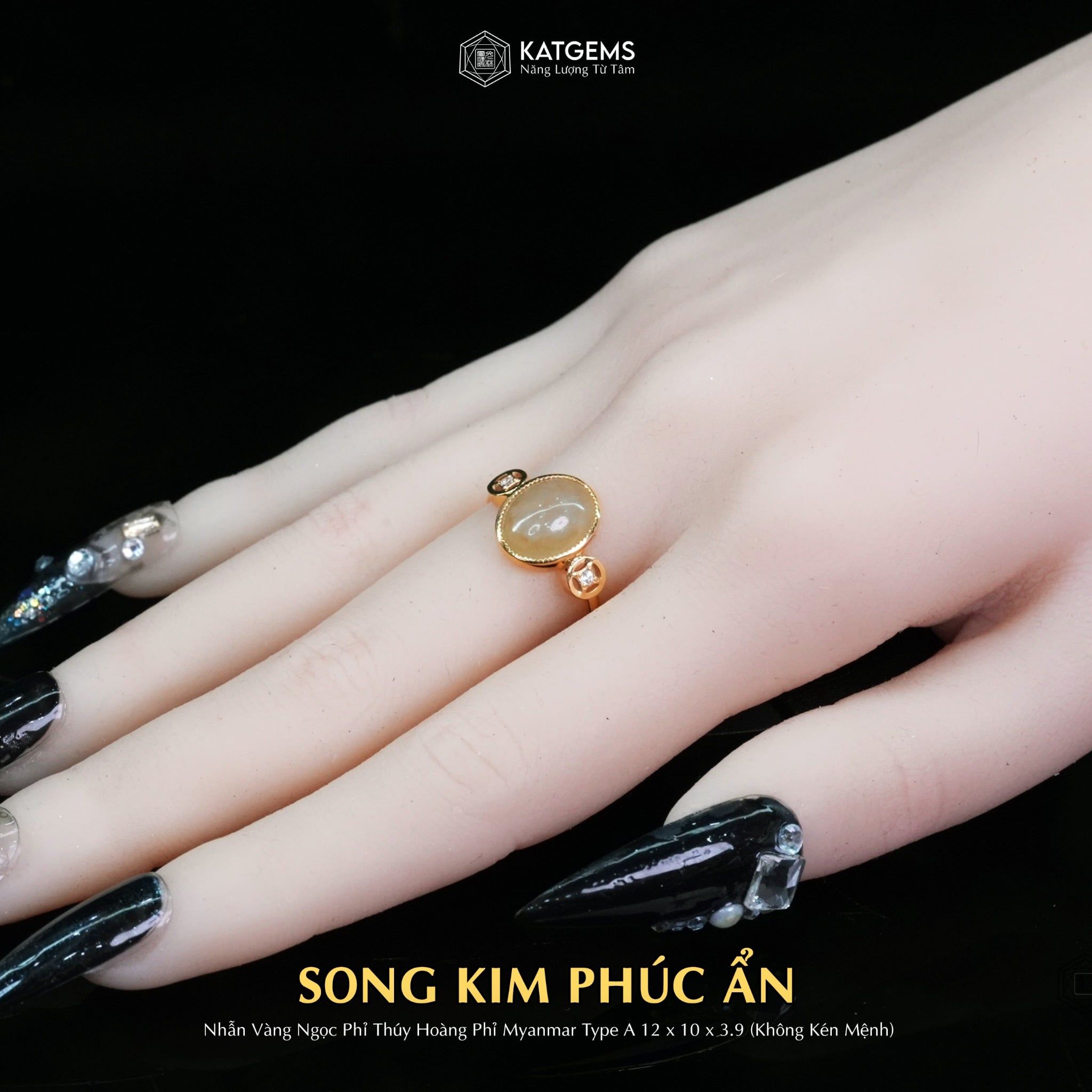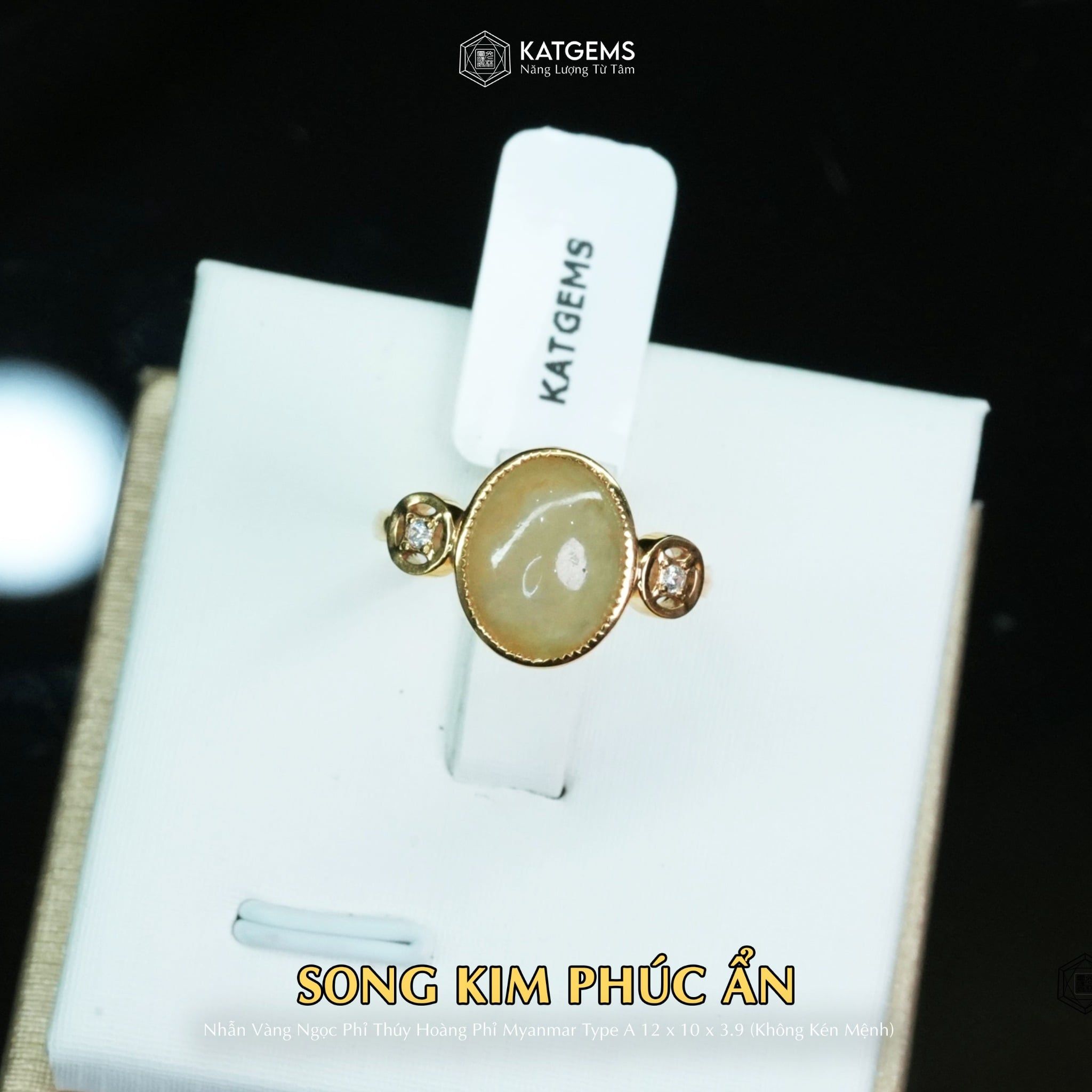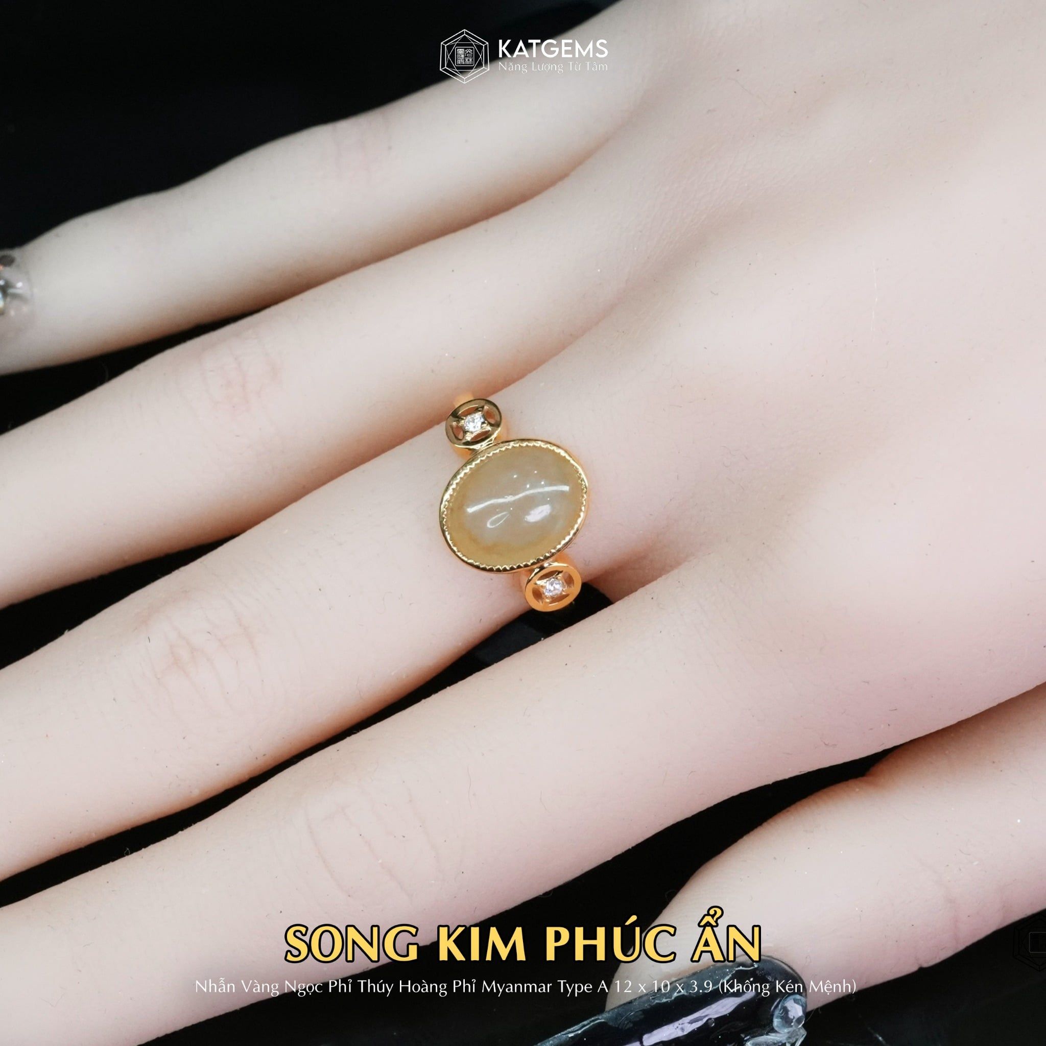 Nhẫn Ngọc Hoàng Phỉ Song Kim Phúc Ẩn Myanmar Type A Vàng Trang Sức 12x10x3.9mm Ni 17mm (Không Kén Mệnh)