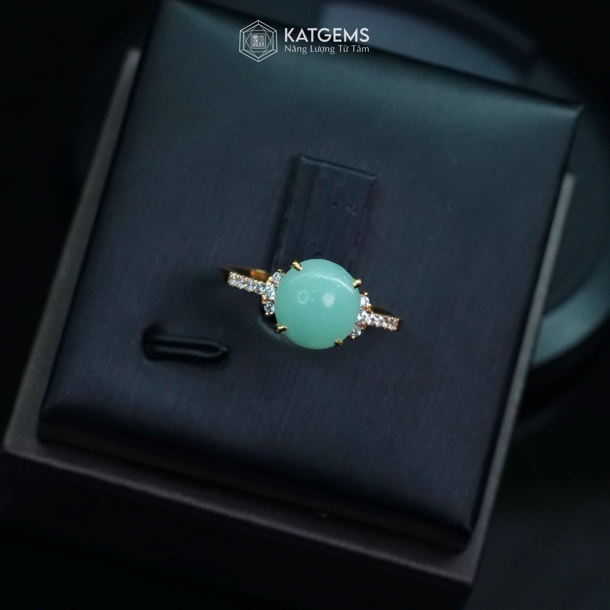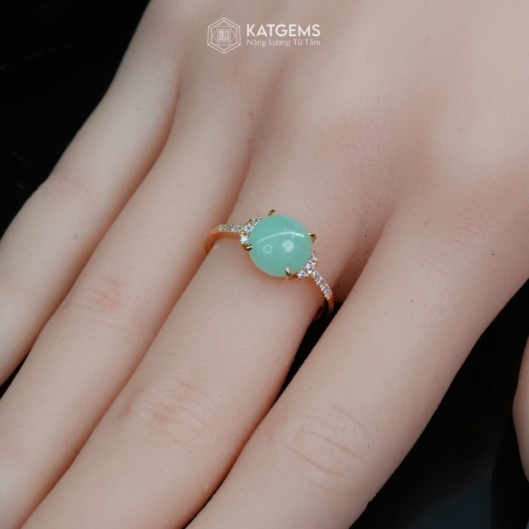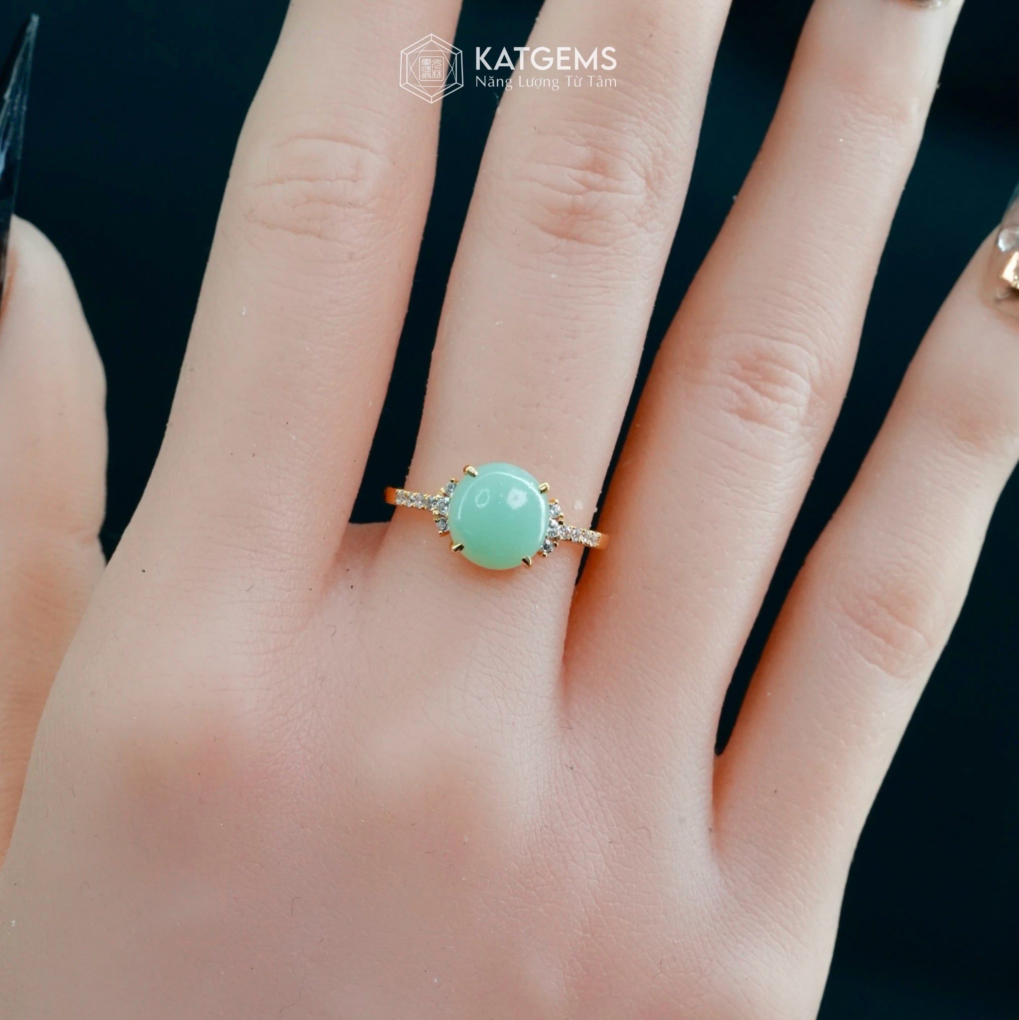 Nhẫn Phỉ Thúy Xanh Lục Táo Ngọc Myanmar Type A Vàng Trang Sức (Không Kén Mệnh)