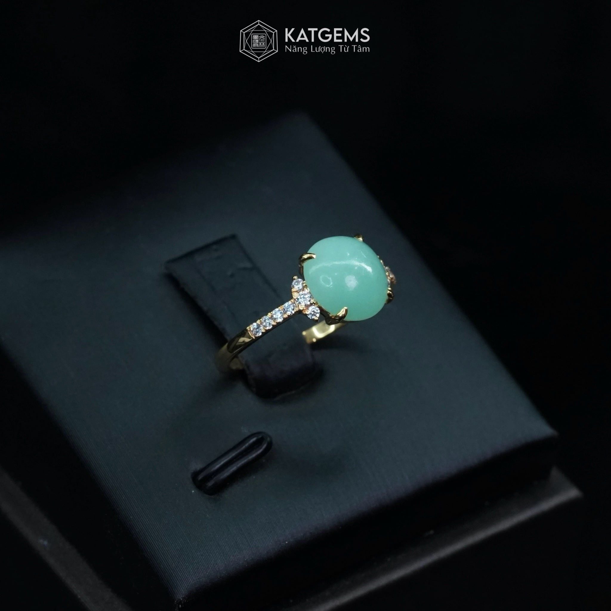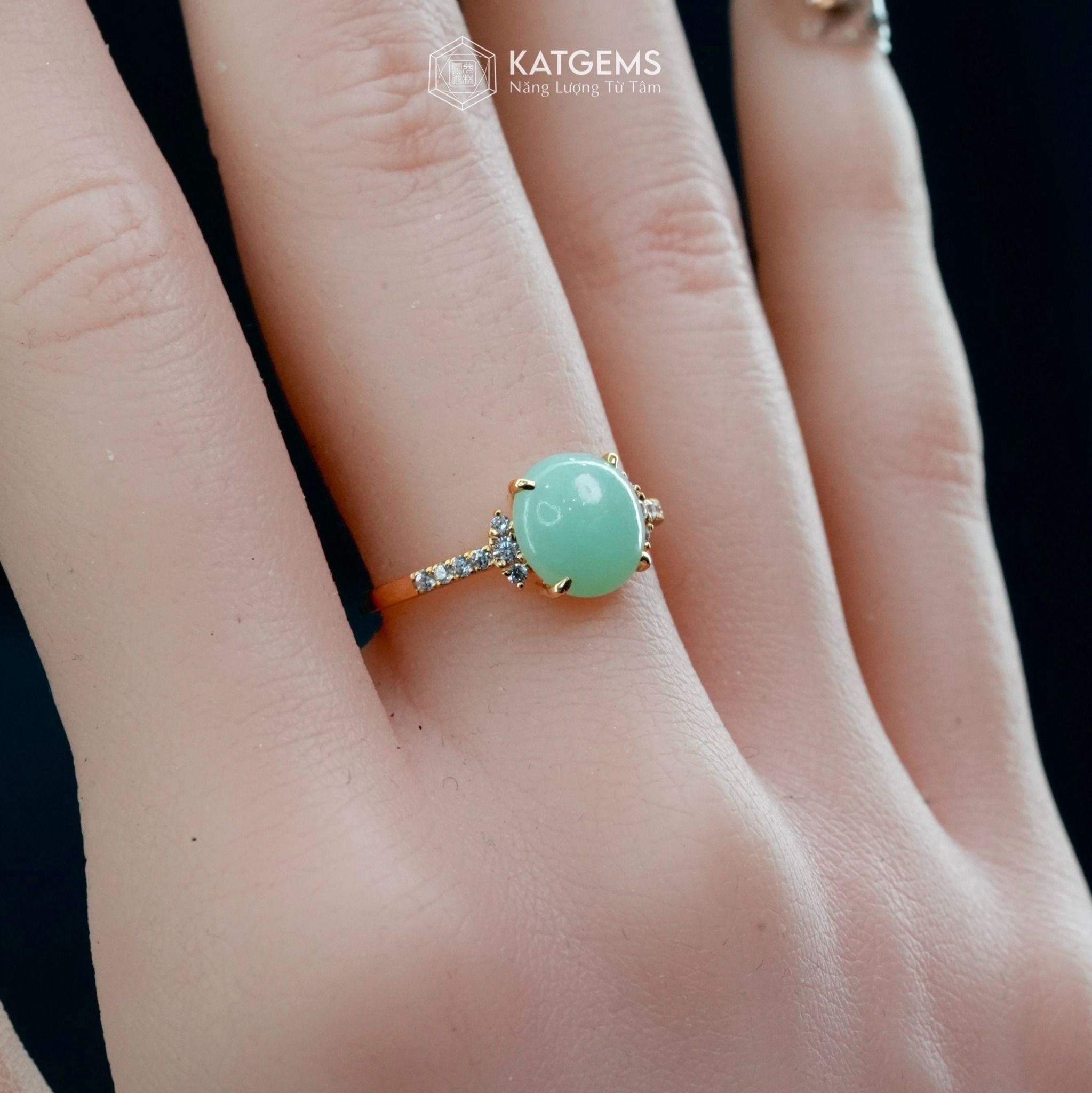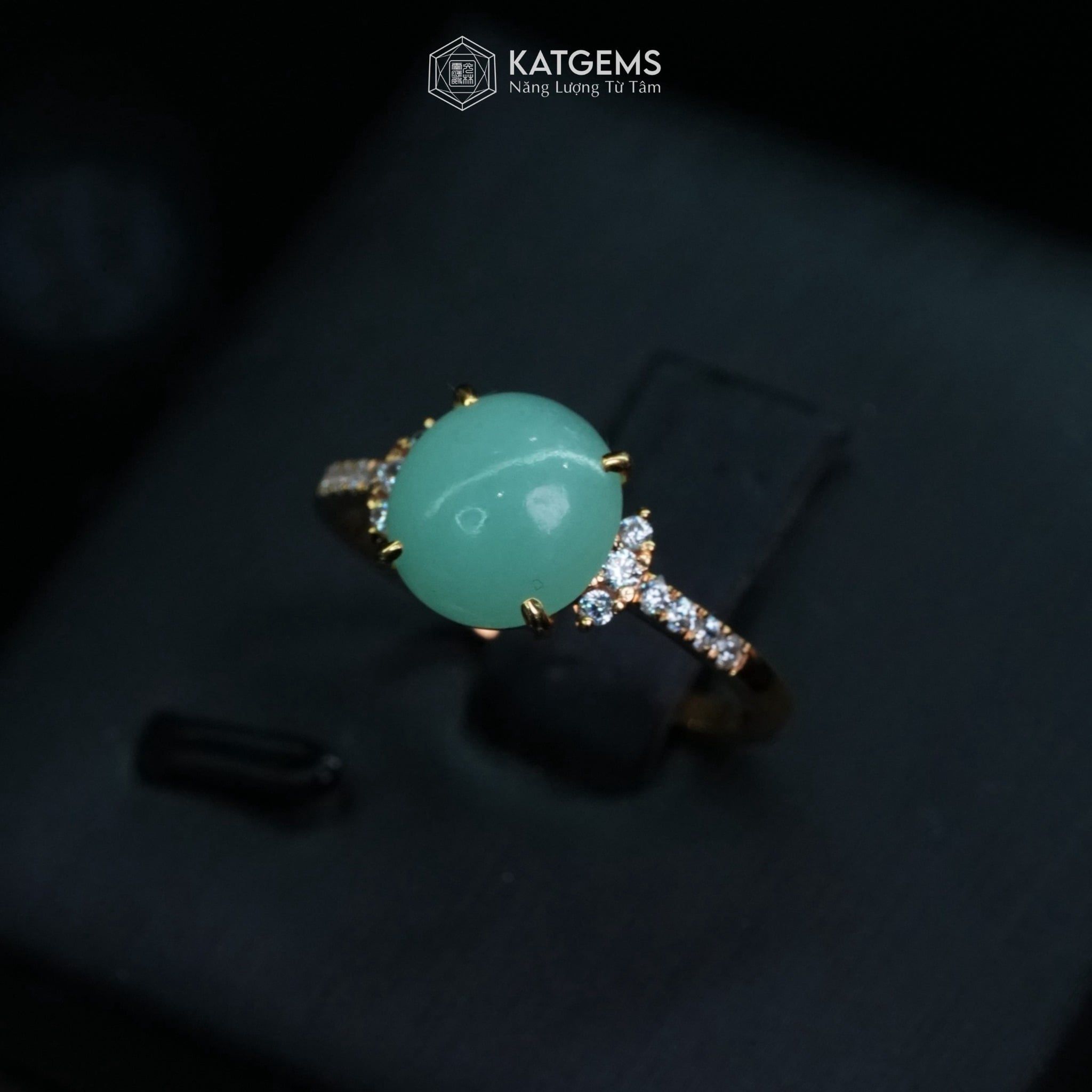 Nhẫn Phỉ Thúy Xanh Lục Táo Ngọc Myanmar Type A Vàng Trang Sức (Không Kén Mệnh)