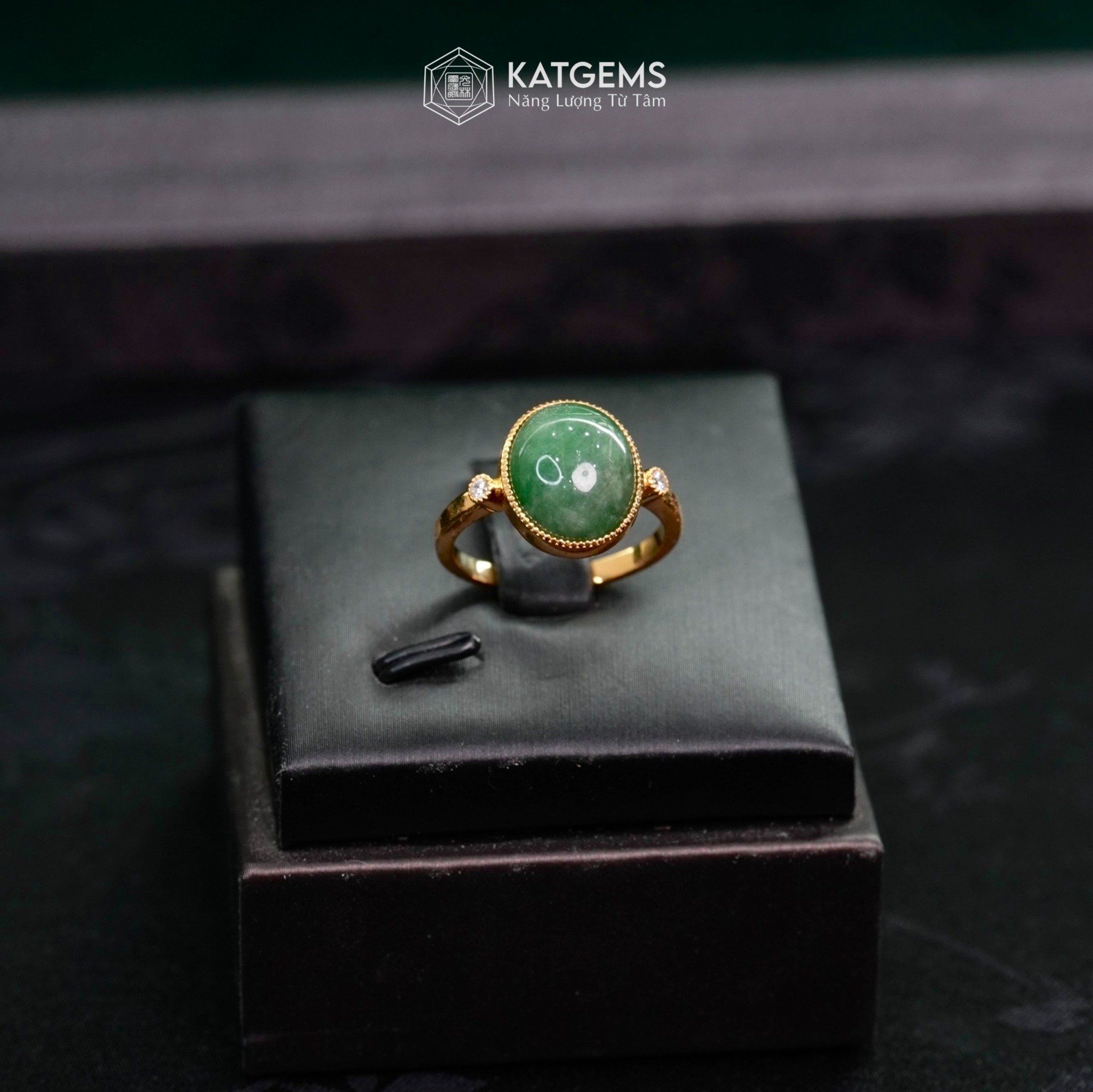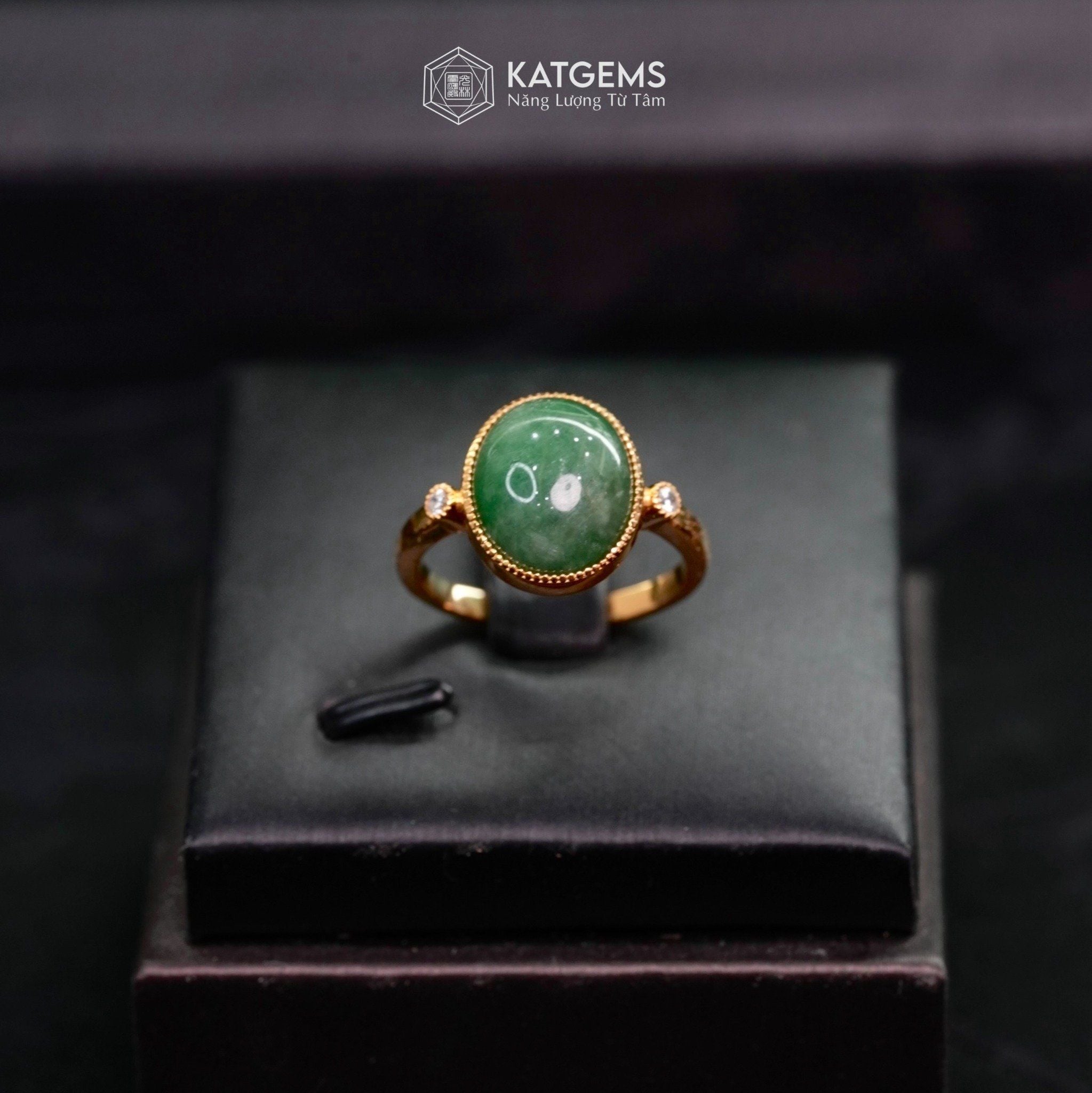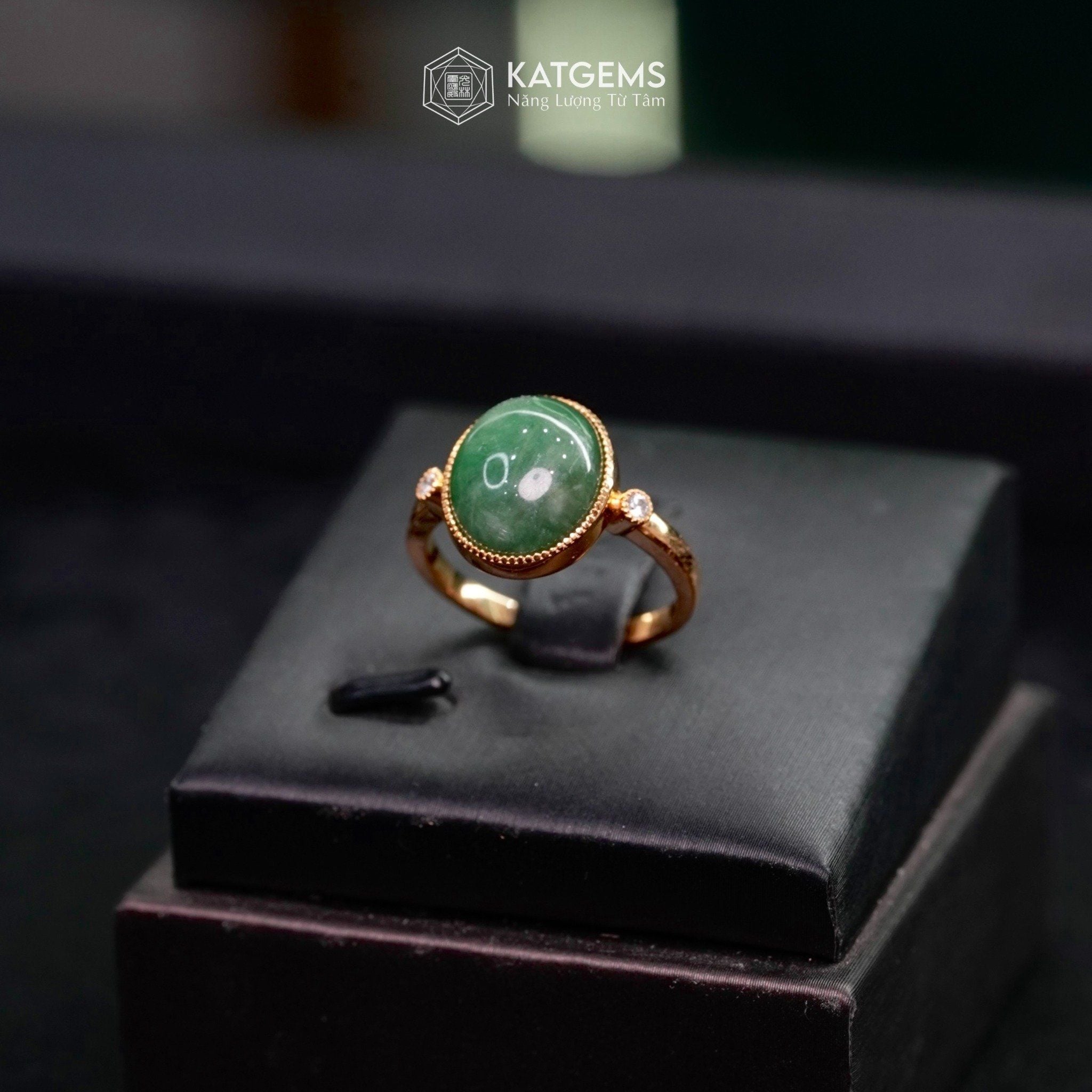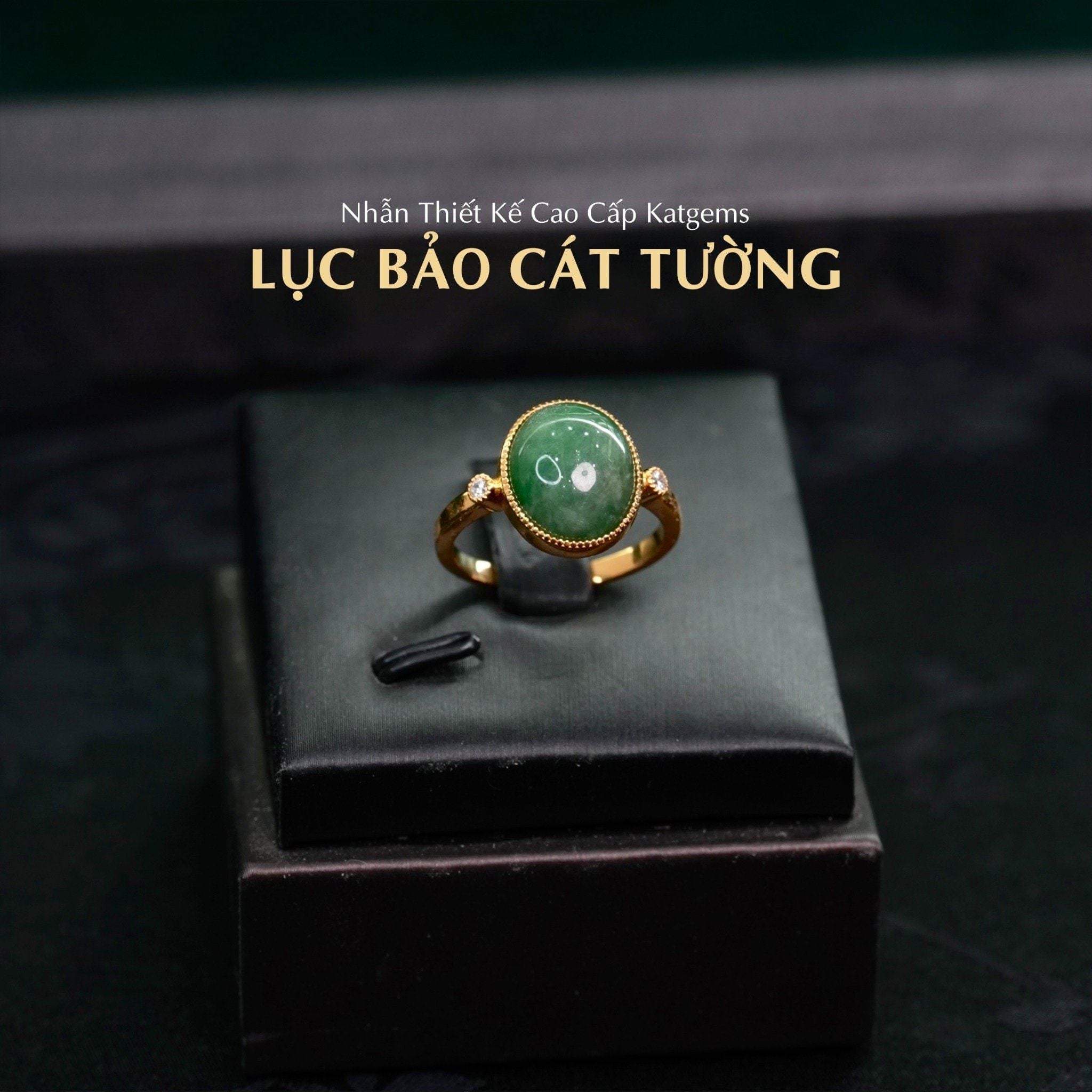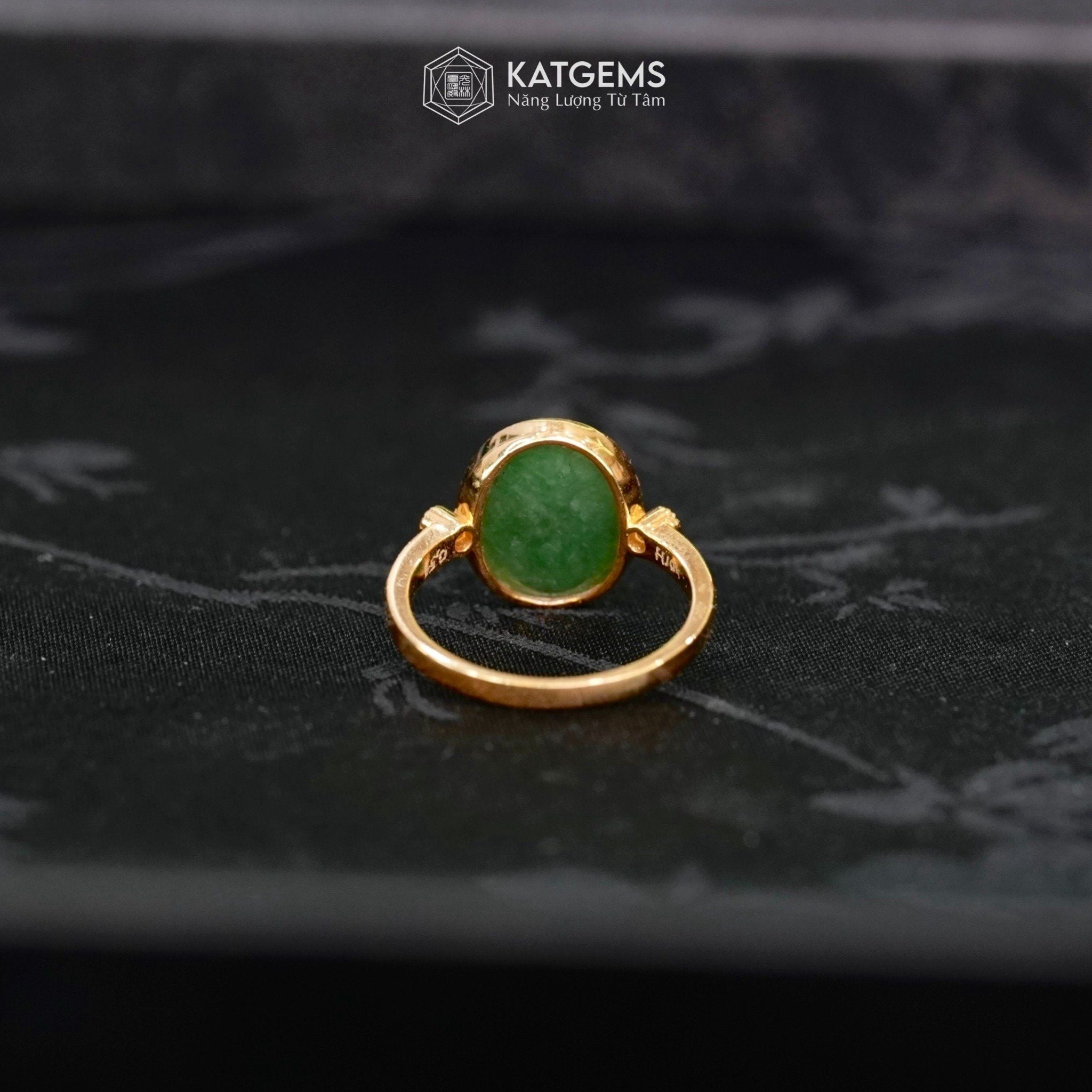 Nhẫn Thiết Kế Lục Bảo Cát Tường Mặt Ngọc Phỉ Thuý Type A KT 12 x10 x 6 (Không Kén Mệnh)