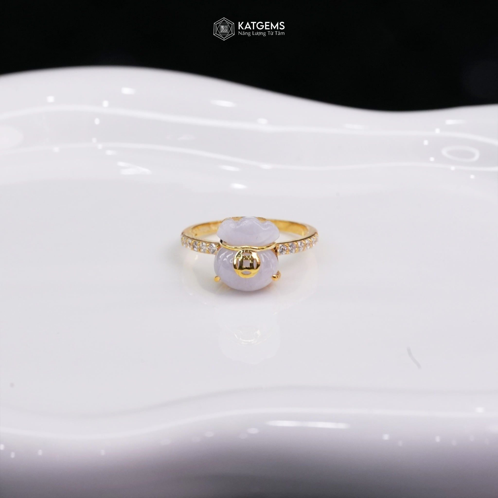 Nhẫn Túi Tiền Kim Bảo Đại Phát Ngọc Phỉ Thúy Tím Tử La Lan KT: 10x9x4ly Vàng Trang Sức (Không kén mệnh)