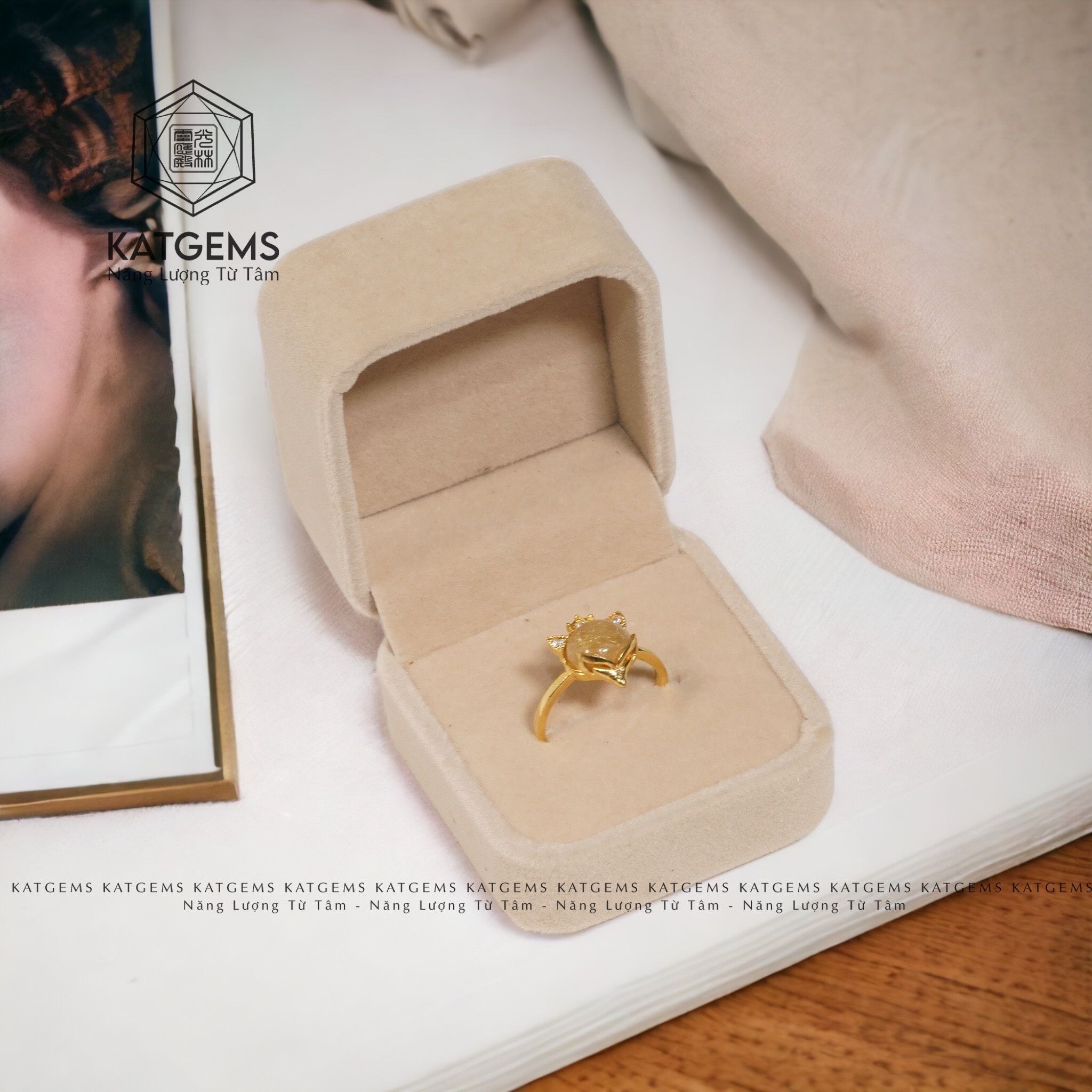 Nhẫn Vàng Trang Sức Bà Hồ Ly Thạch Anh Tóc Tóc Vàng (Thổ, Kim)