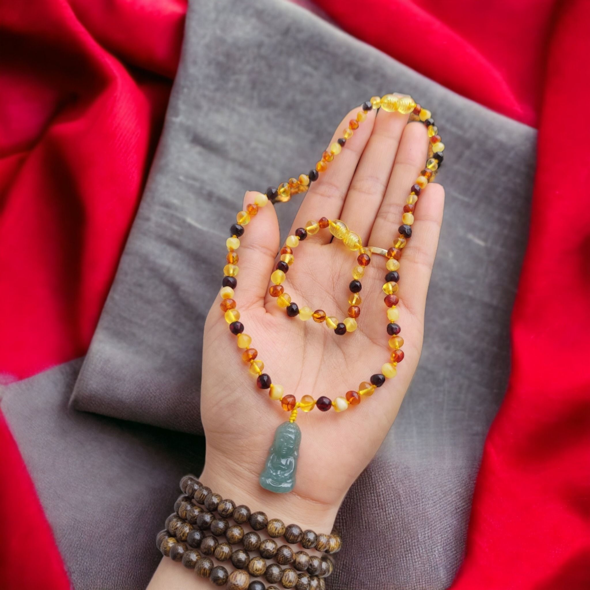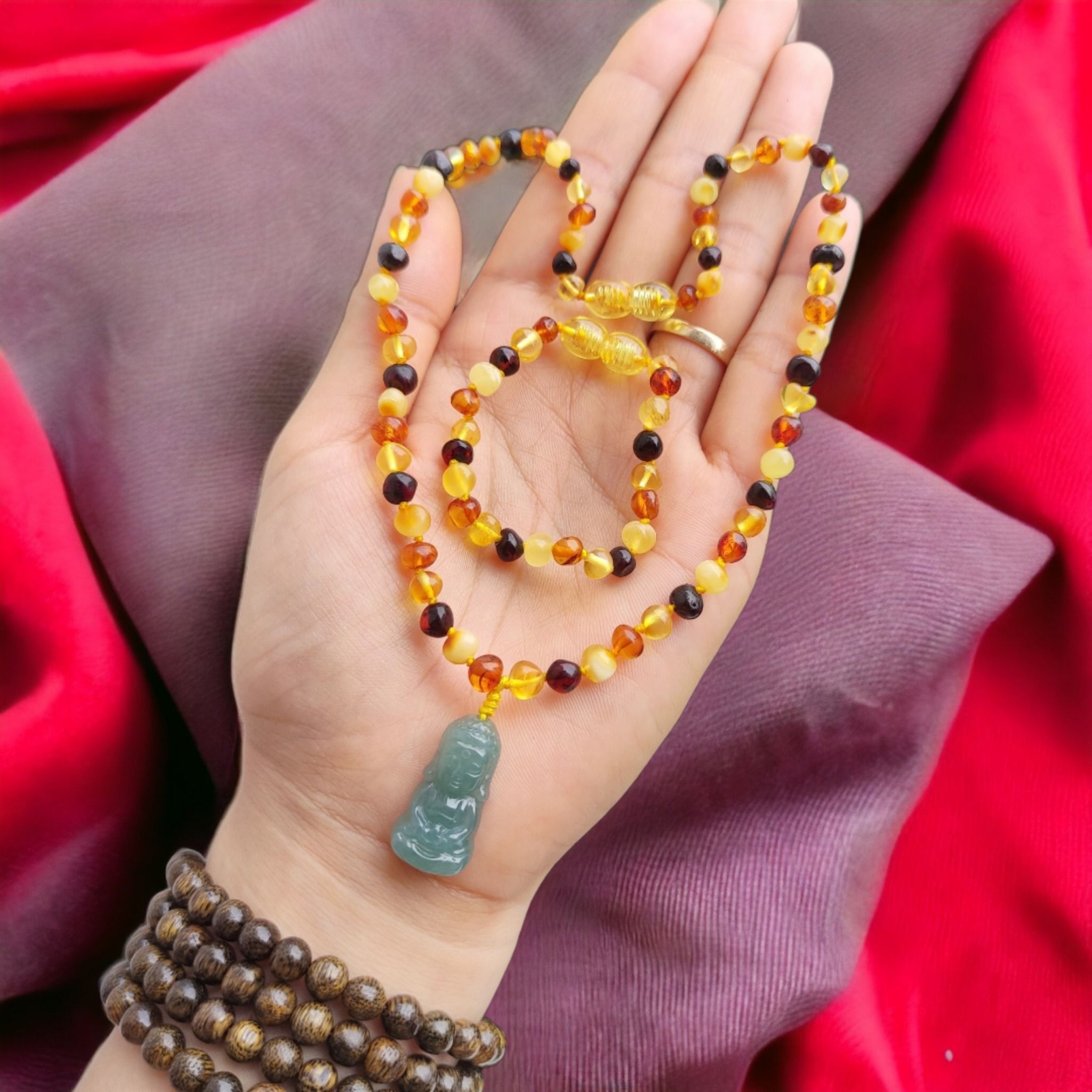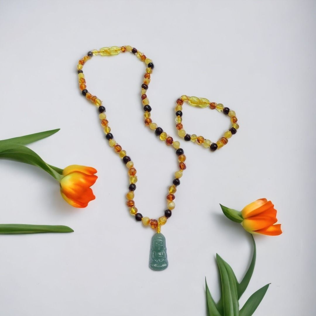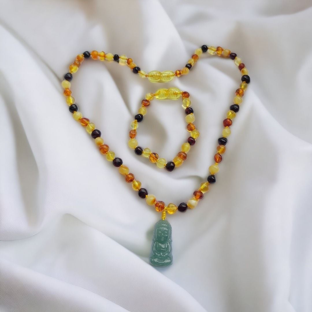 Set Hổ Phách Mix Tiểu Phật Lam Ngọc Cho Bé (Không Kén Mệnh)