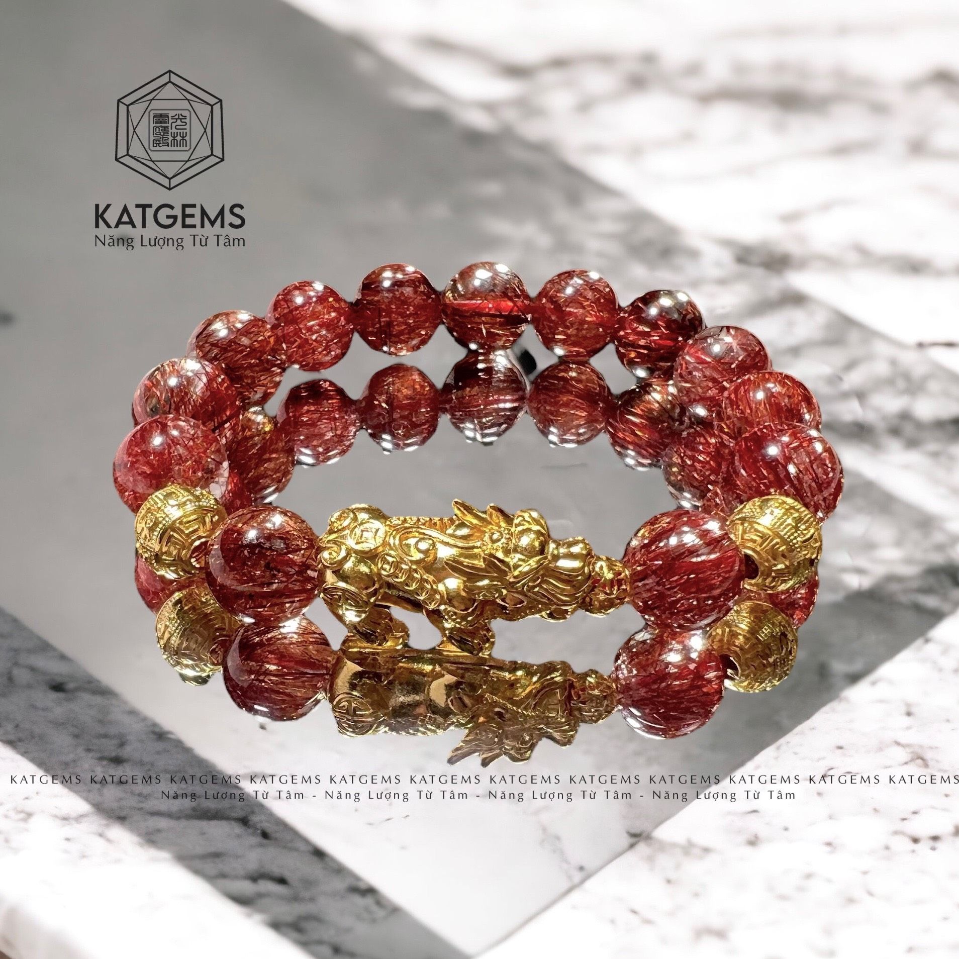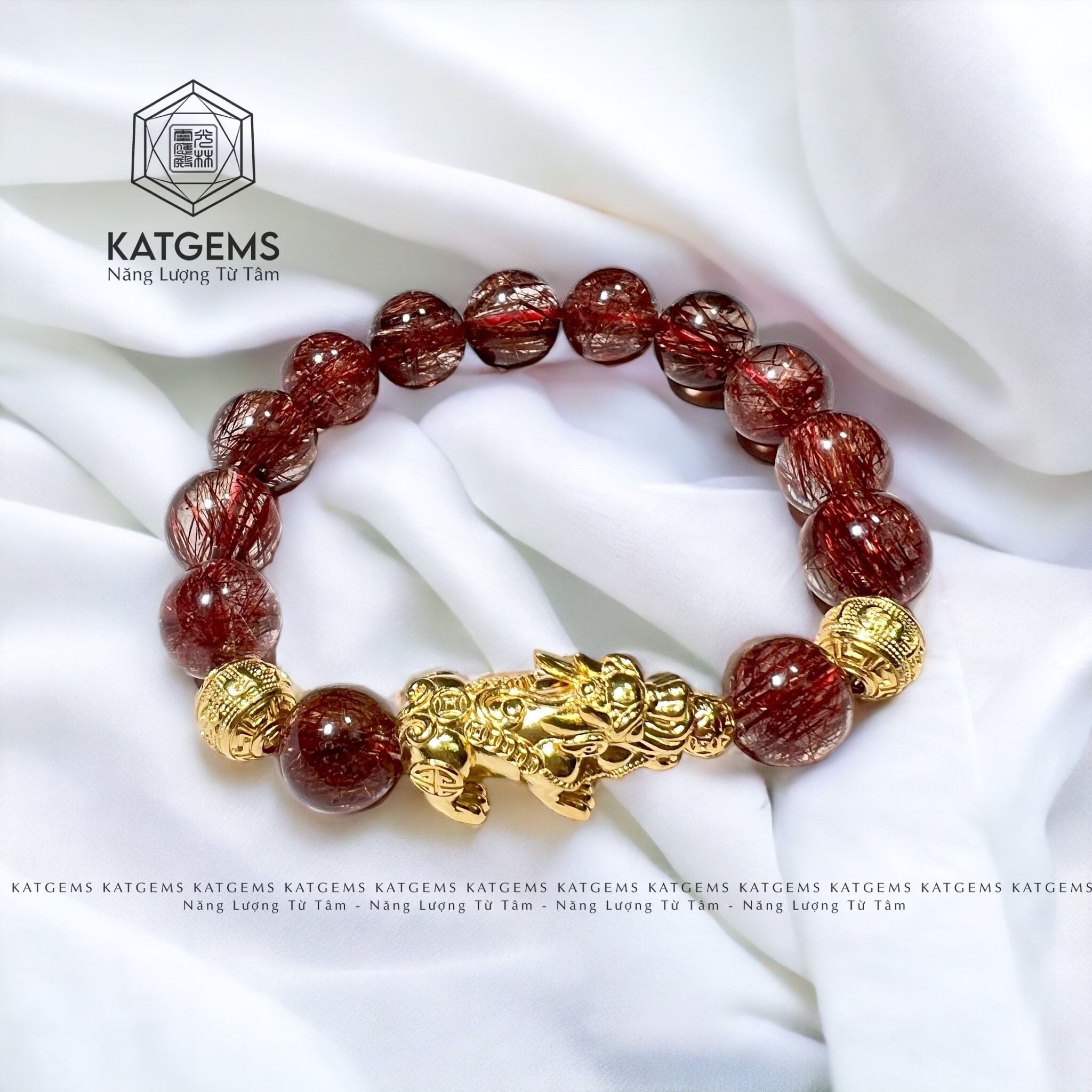 Vòng Đơn Thạch Anh Tóc Đỏ 12 Ly Mix Tỳ Hưu và Charm Kim Tiền Vàng Trang Sức (Hoả, Thổ) GIÁ LIÊN HỆ