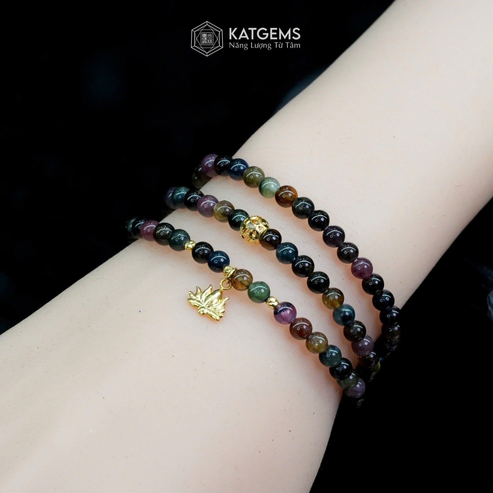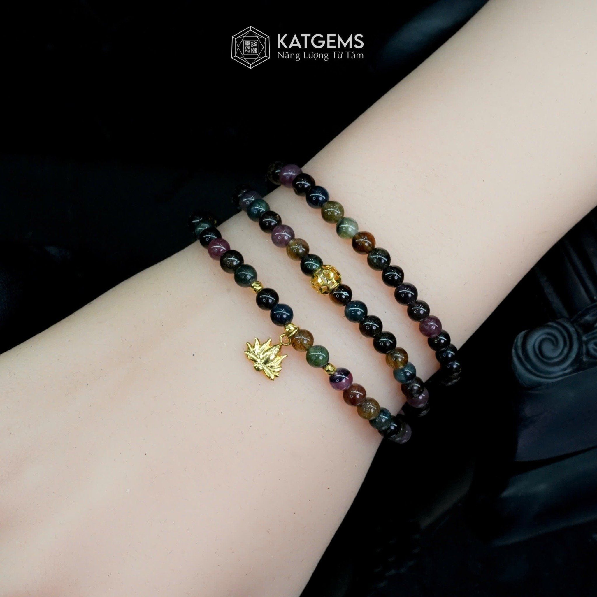 Vòng Chuỗi Đá Tourmaline 4.6ly Mix Bi Kim Tiền Và Hoa Sen Vàng Trang Sức (Không Kén Mệnh)125003