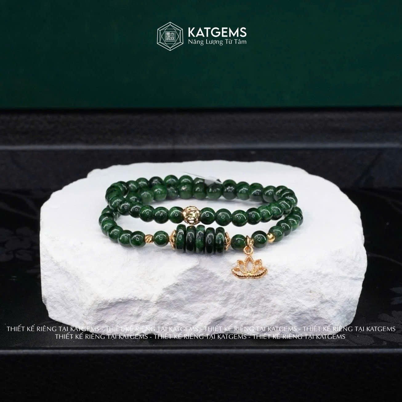 Vòng Chuỗi Cuốn 2 Ngọc Cẩm Thạch Sơn Thuỷ (Type B) 5ly Mix Ngũ Điếu, Bi Kim Tiền Vàng và Hoa Sen Vàng Trang Sức (Không Kén Mệnh) CTB1-126002