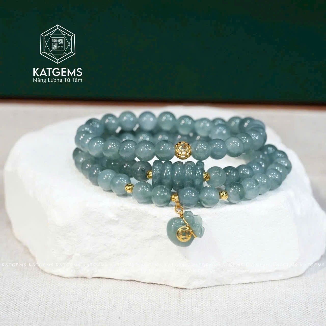 Vòng Chuỗi Lam Ngọc 5.6li Mix Ngũ Điếu, Charm Túi Tiền Và Bi Kim Tiền Vàng Trang Sức (Không Kén Mệnh) 2-126001