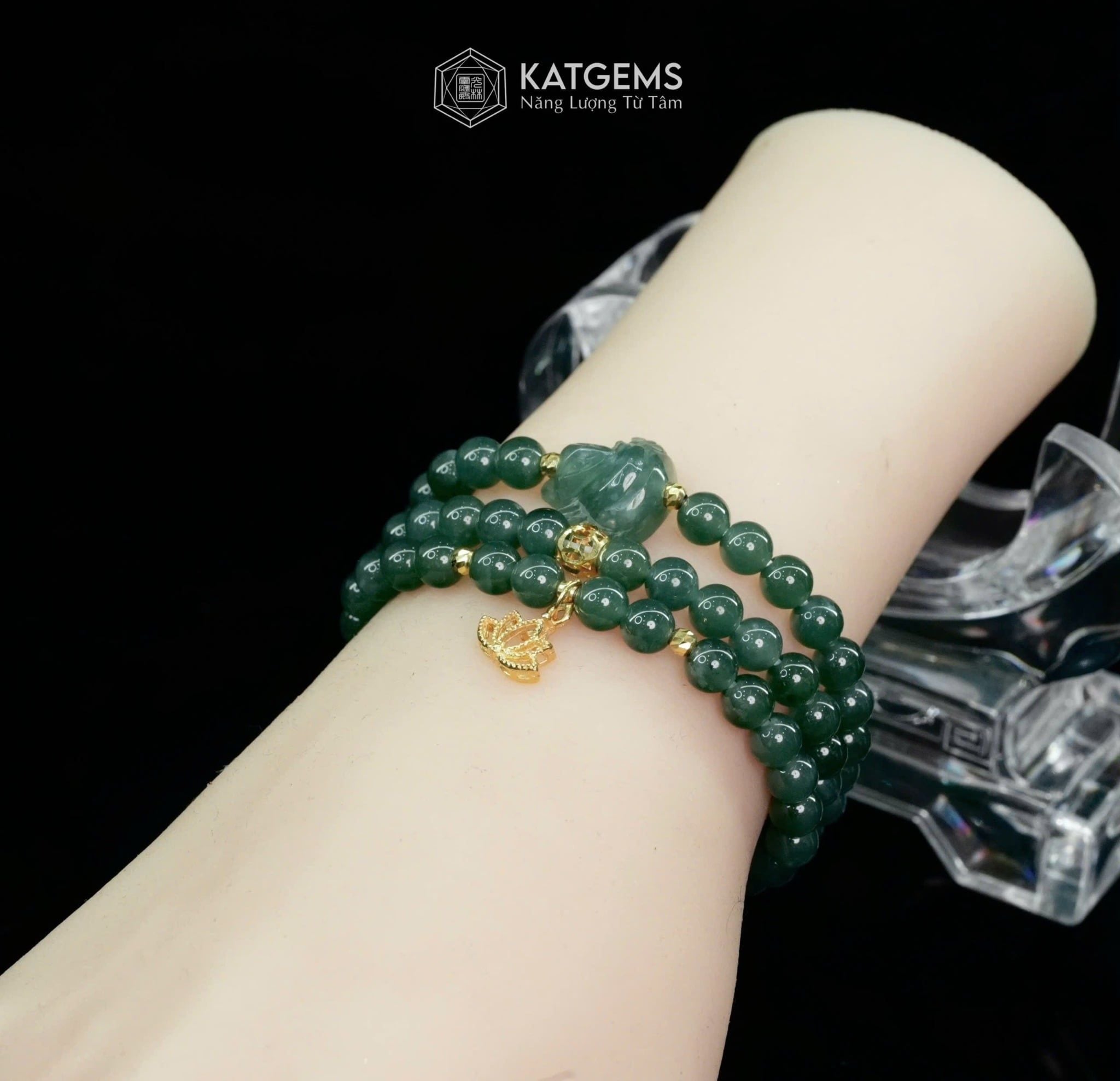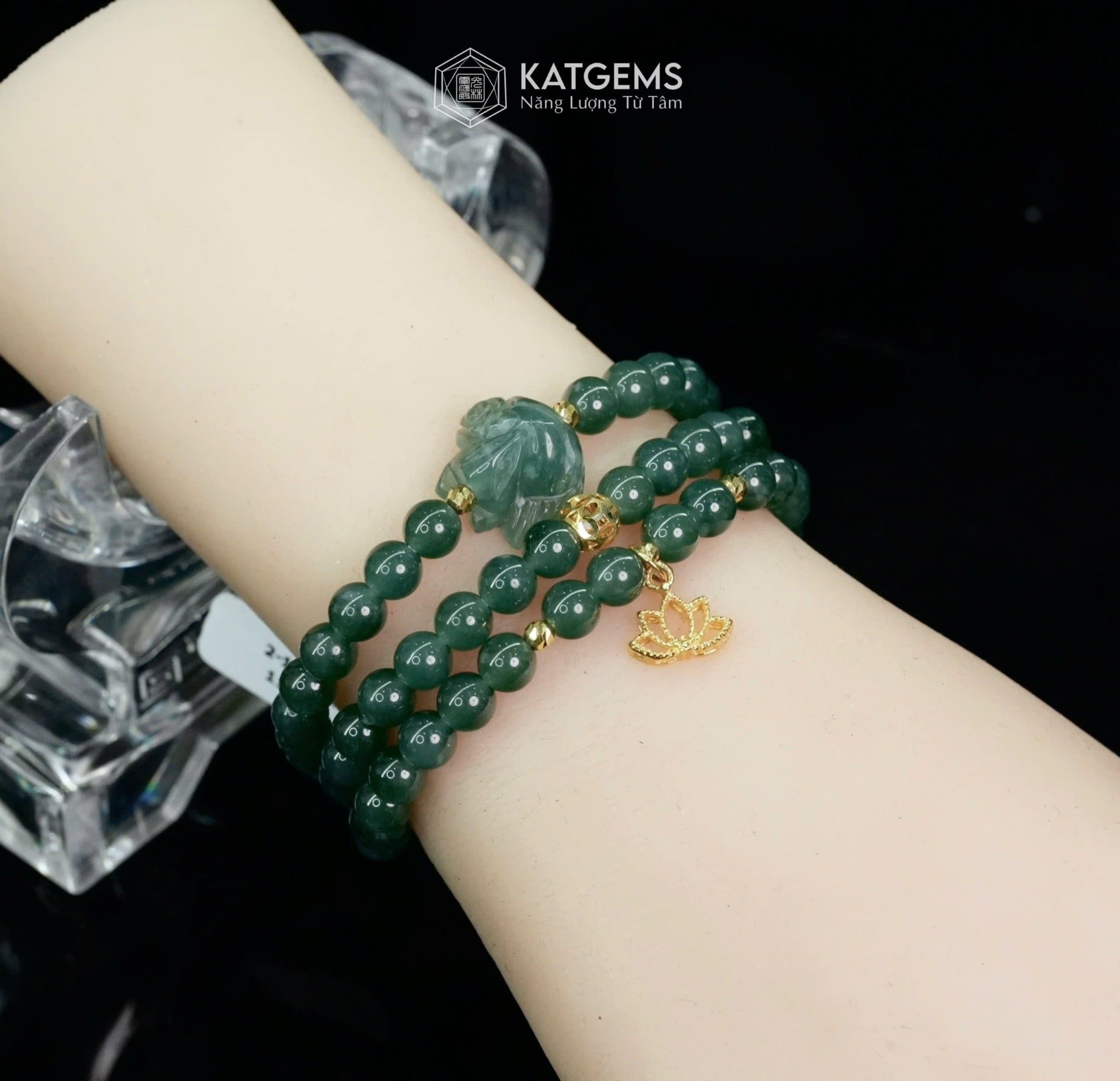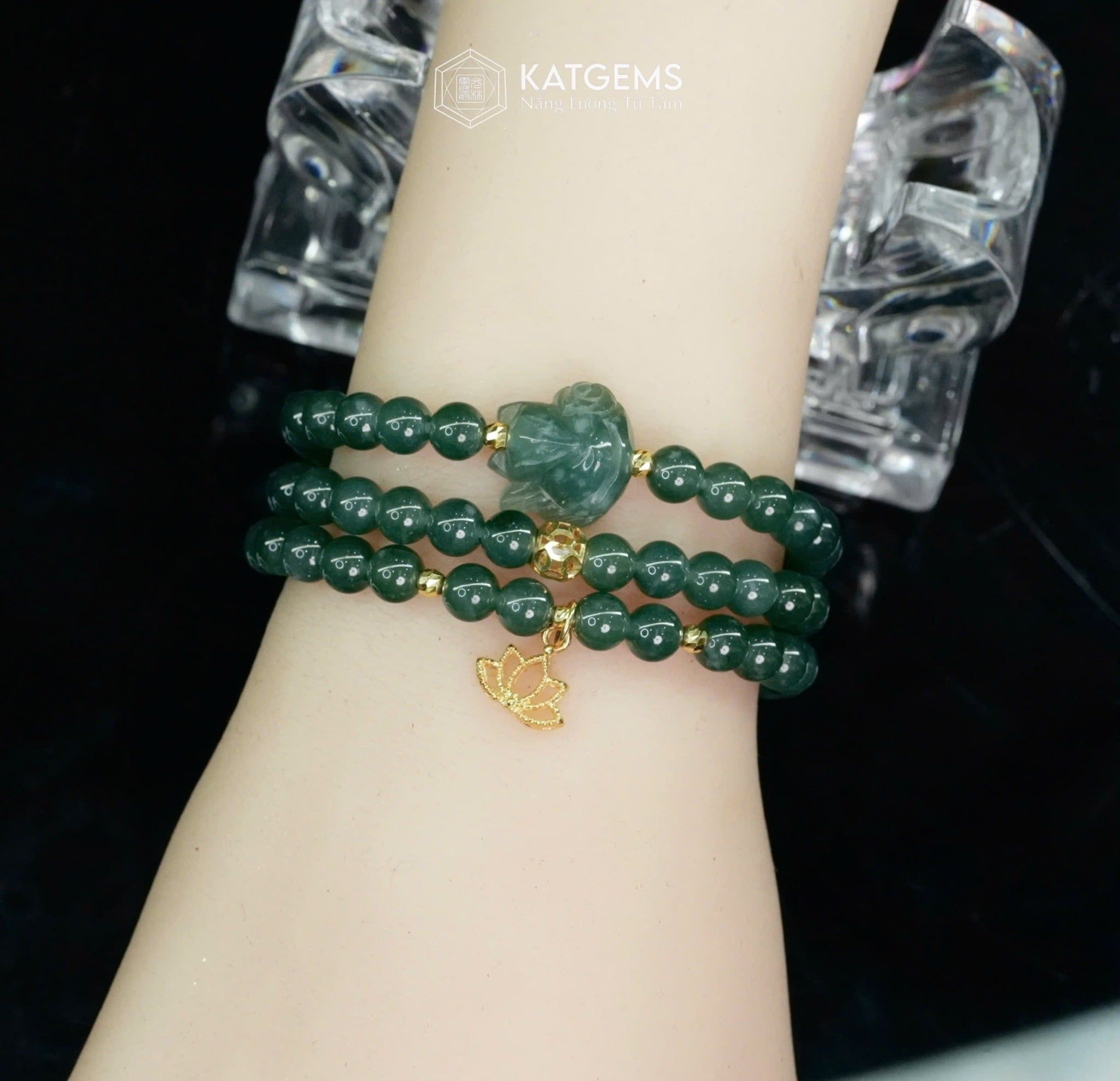 Vòng Chuỗi Lam Ngọc 5.7ly Mix Bi Kim Tiền, Hồ Ly Và Charm Hoa Sen Vàng Trang Sức (Không Kén Mệnh) 2-126010