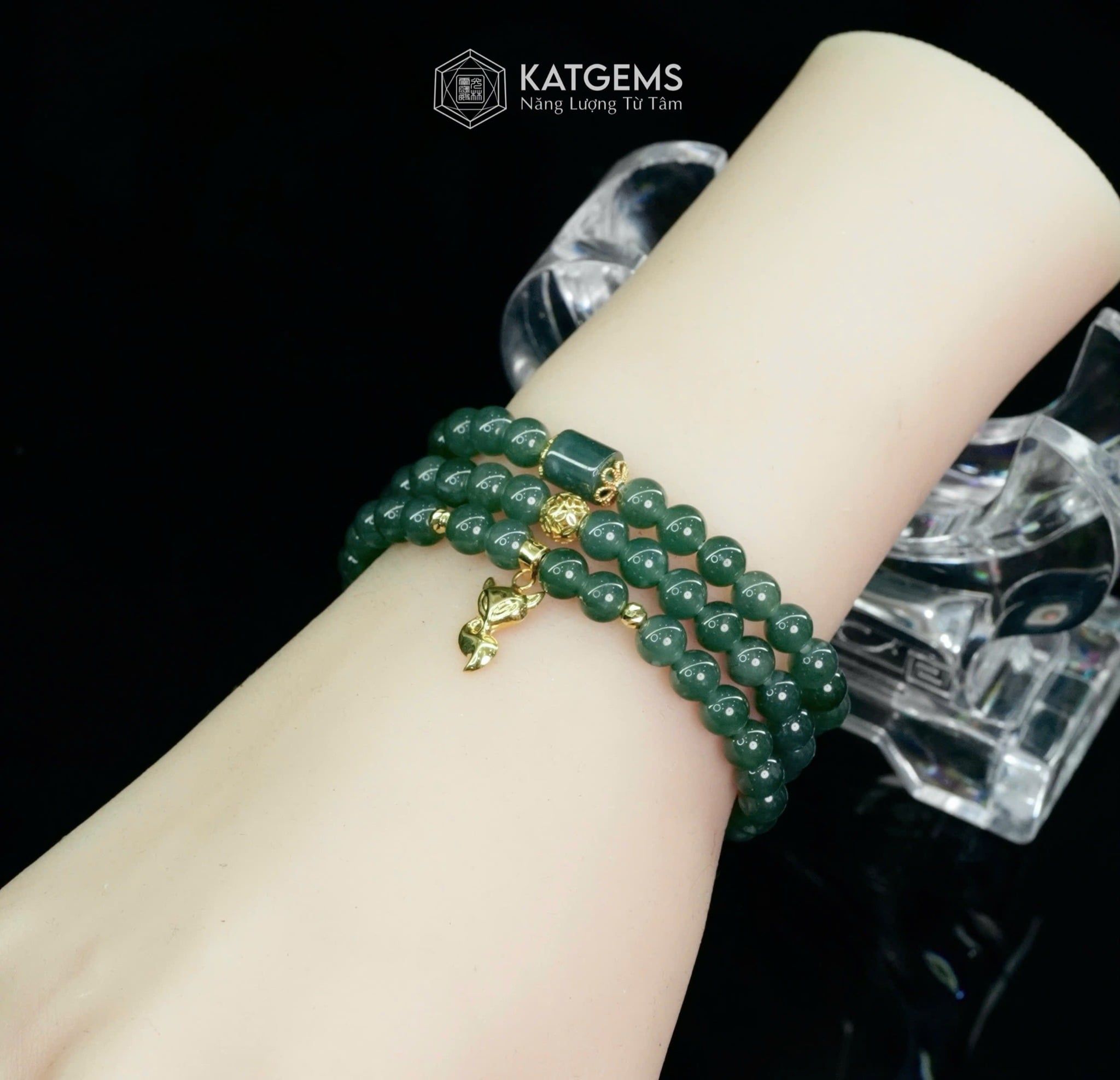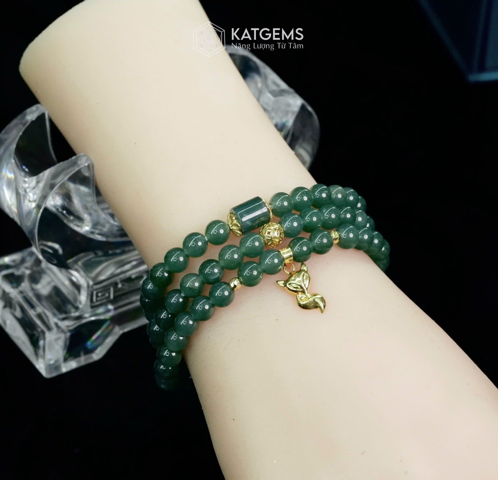 Vòng Chuỗi Lam Ngọc 5.7ly Mix Bi Kim Tiền, Lu Thống Và Charm Hồ Ly Vàng Trang Sức (Không Kén Mệnh) 2-126010
