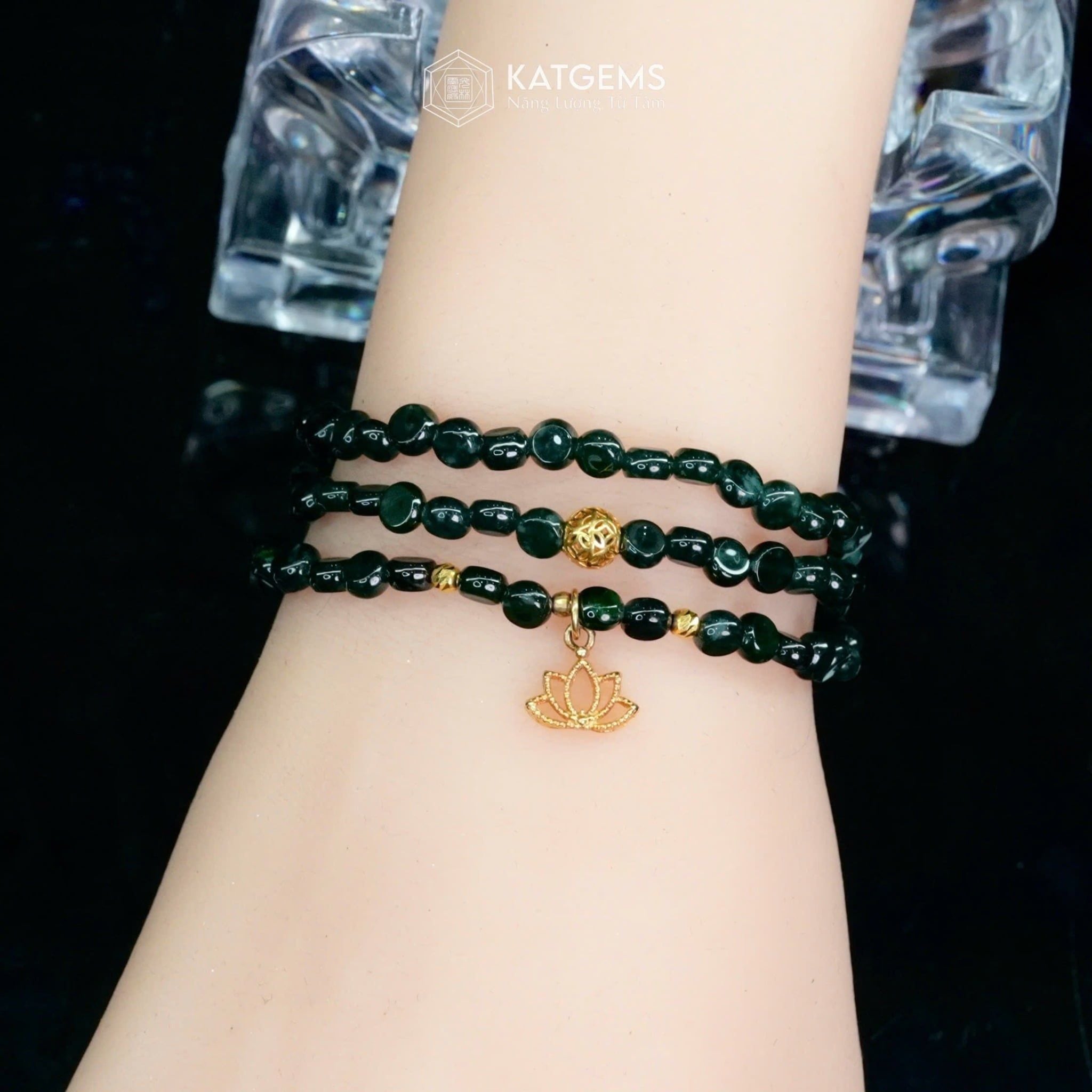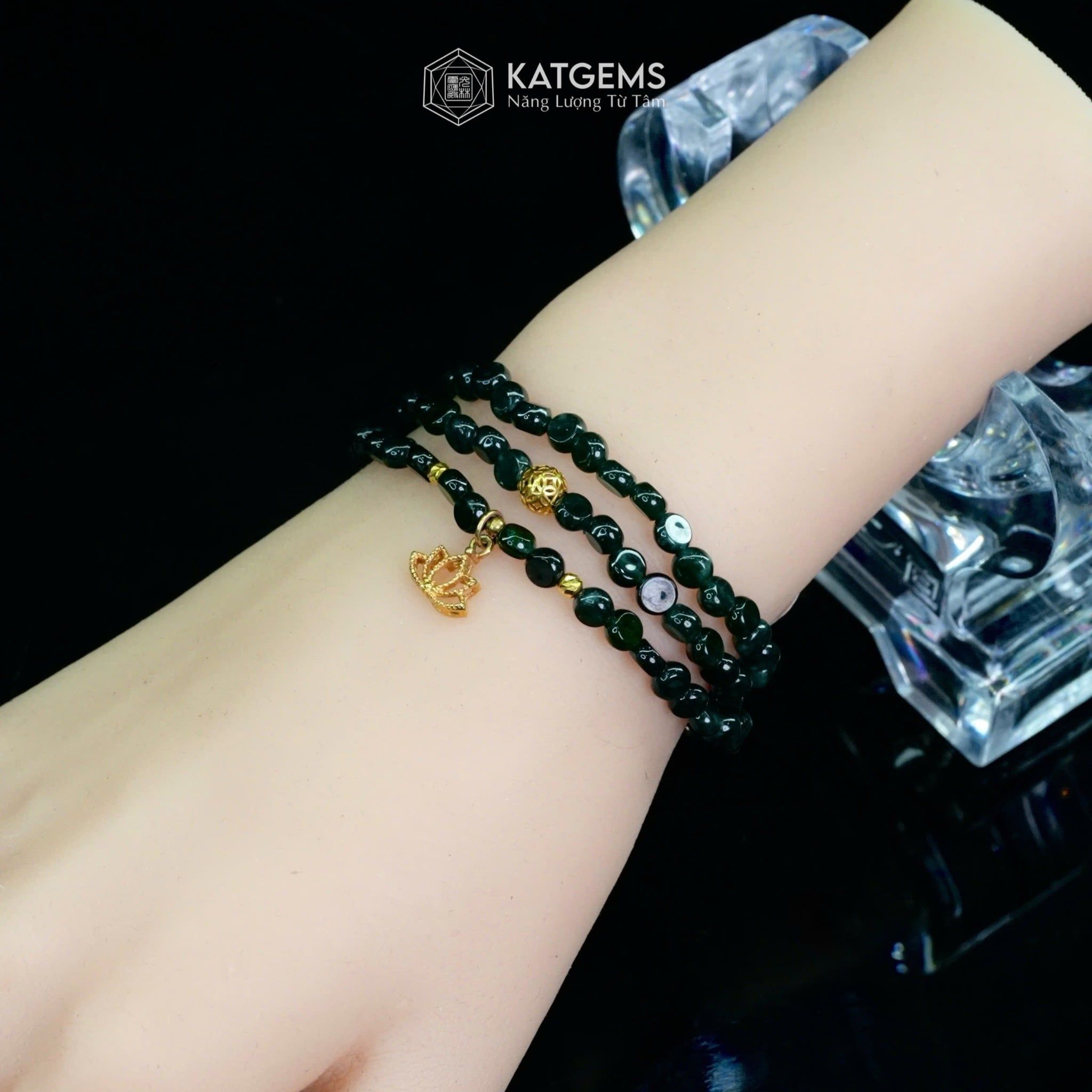 Vòng Chuỗi Lam Ngọc Dẹt 5ly Mix Bi Kim Tiền Và Charm Hoa Sen Vàng Trang Sức (Không Kén Mệnh) 2-126007