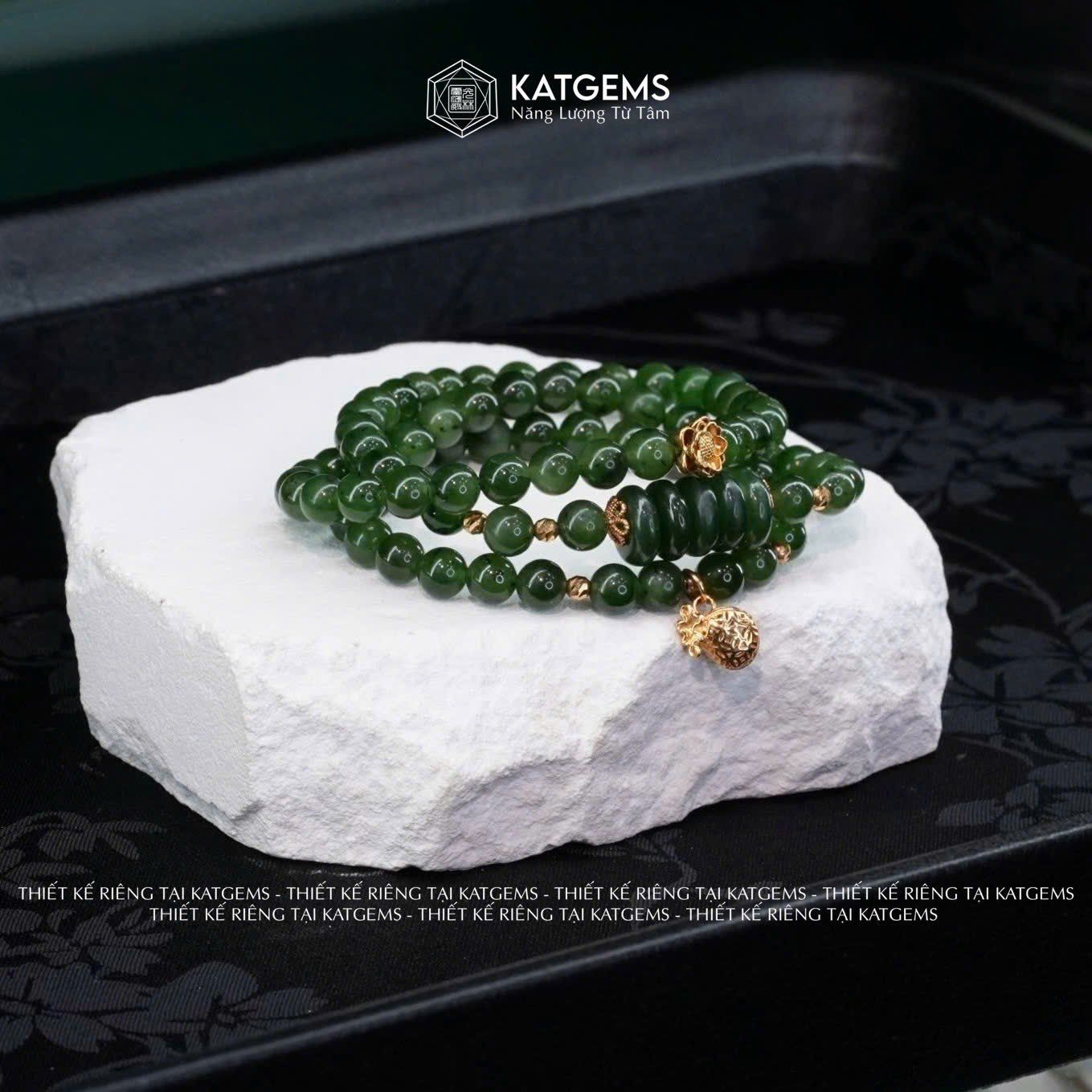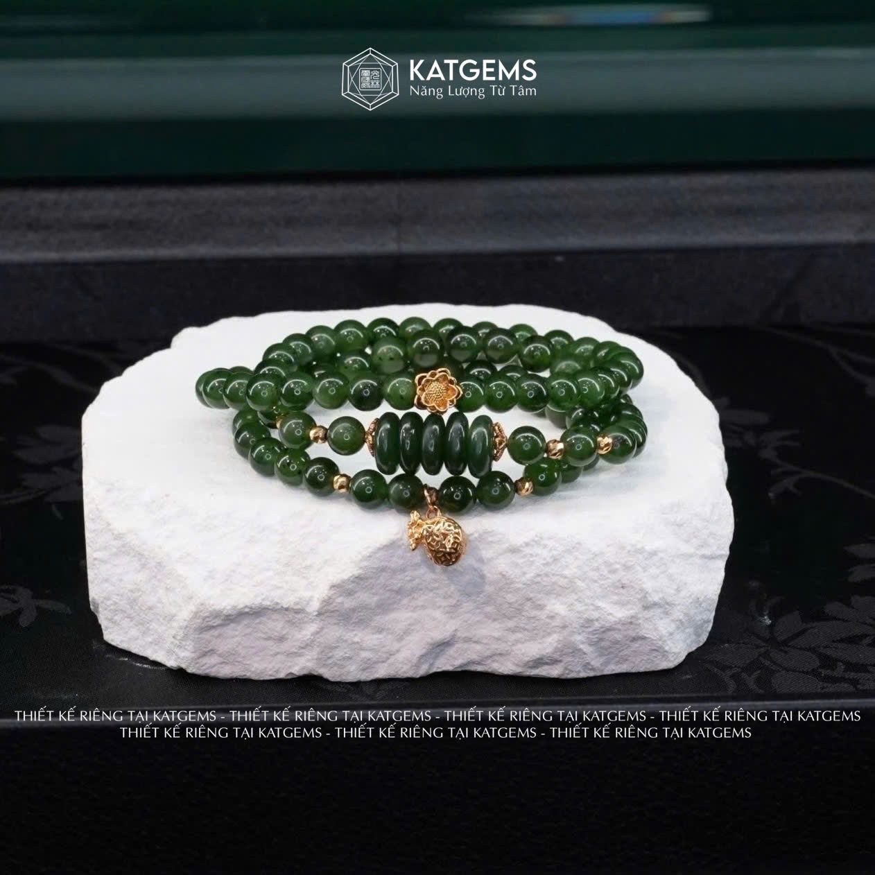 Vòng Chuỗi Ngọc Bích 5,8ly mix Ngũ Điếu, Túi Tiền Vàng và Hoa Sen Vàng Trang Sức (Không Kén Mệnh) 2-128002