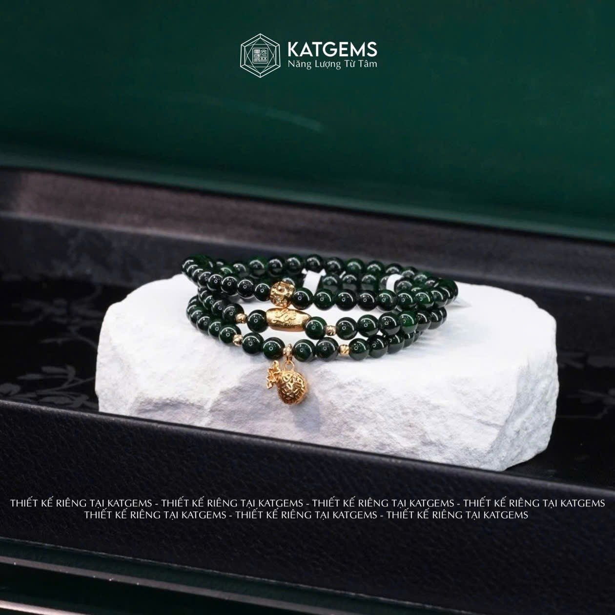 Vòng Chuỗi Ngọc Cẩm Thạch Sơn Thuỷ Type A 5ly mix Túi Tiền Vàng, Gạo Vàng và Bi Kim Tiền Vàng Trang Sức (Không Kén Mệnh) 126015