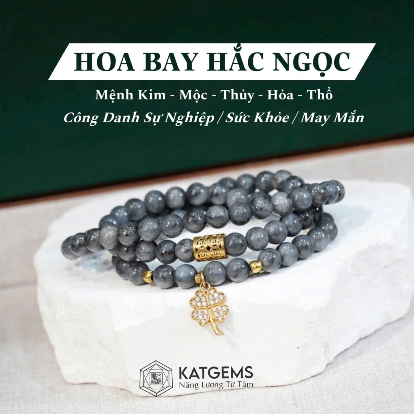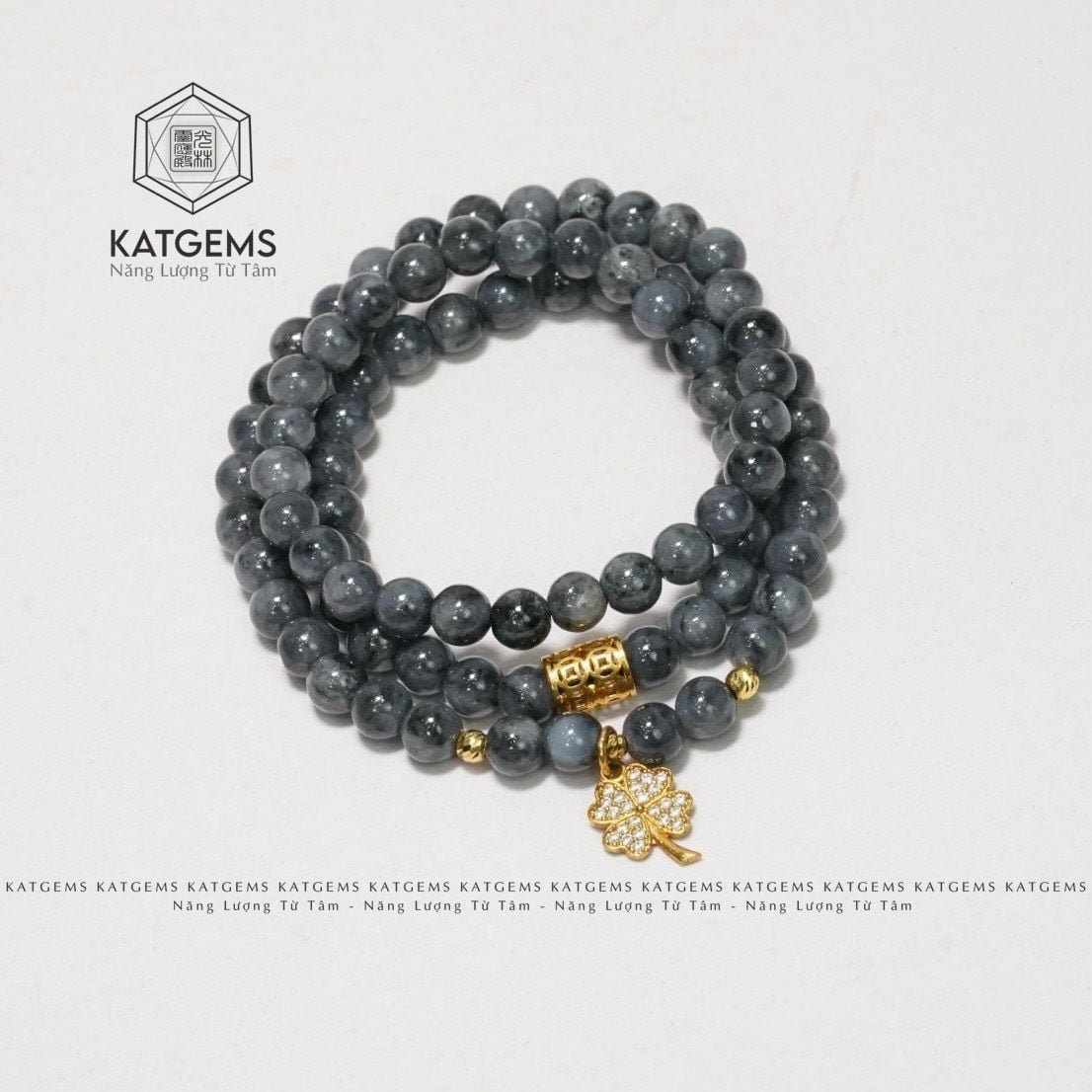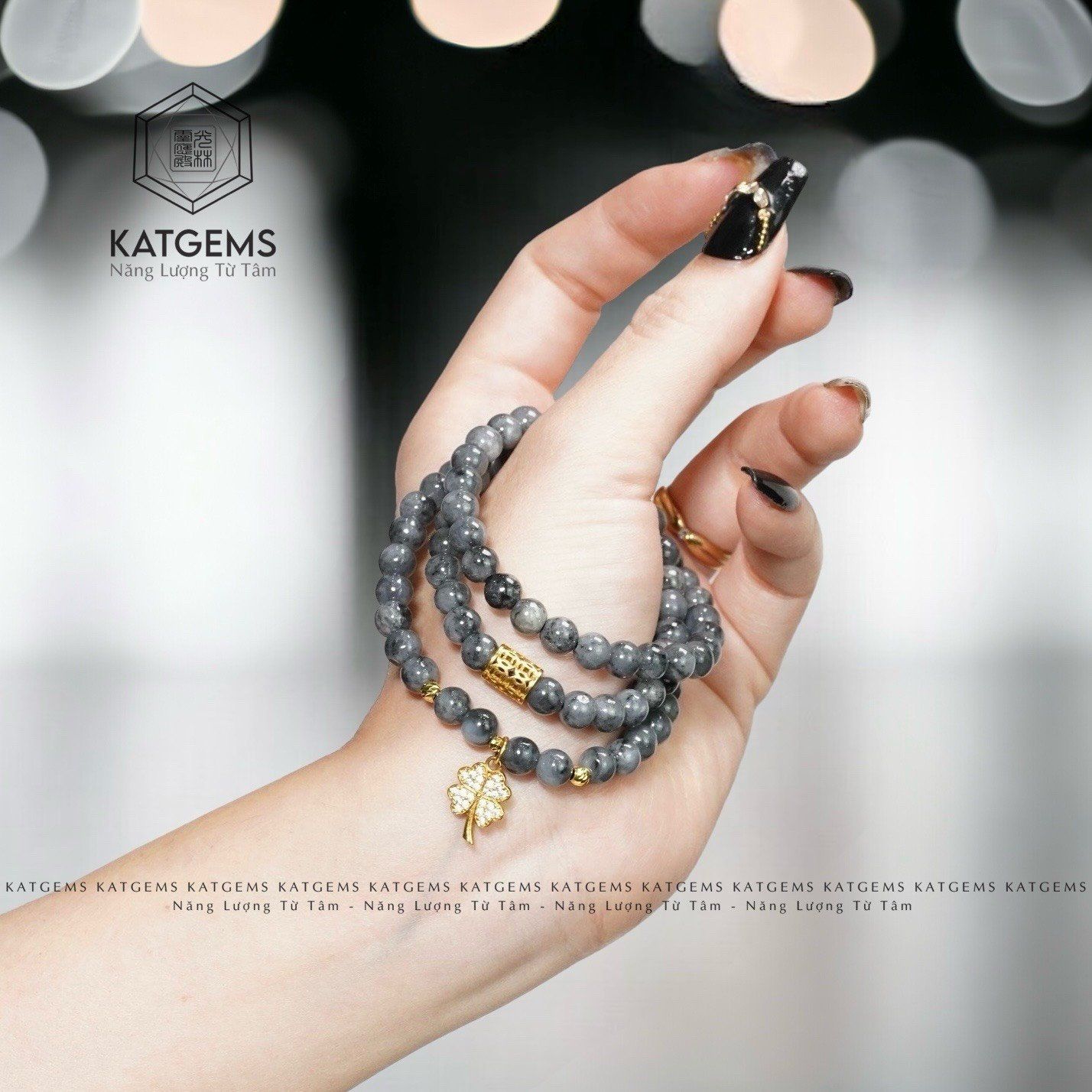 Vòng Chuỗi Ngọc Gà Đen Vip 5.8Ly Jade A Mix Lu Thống, Cỏ Bốn Lá Và charm Kim Tiền Vàng Trang Sức (Không Kén Mệnh)