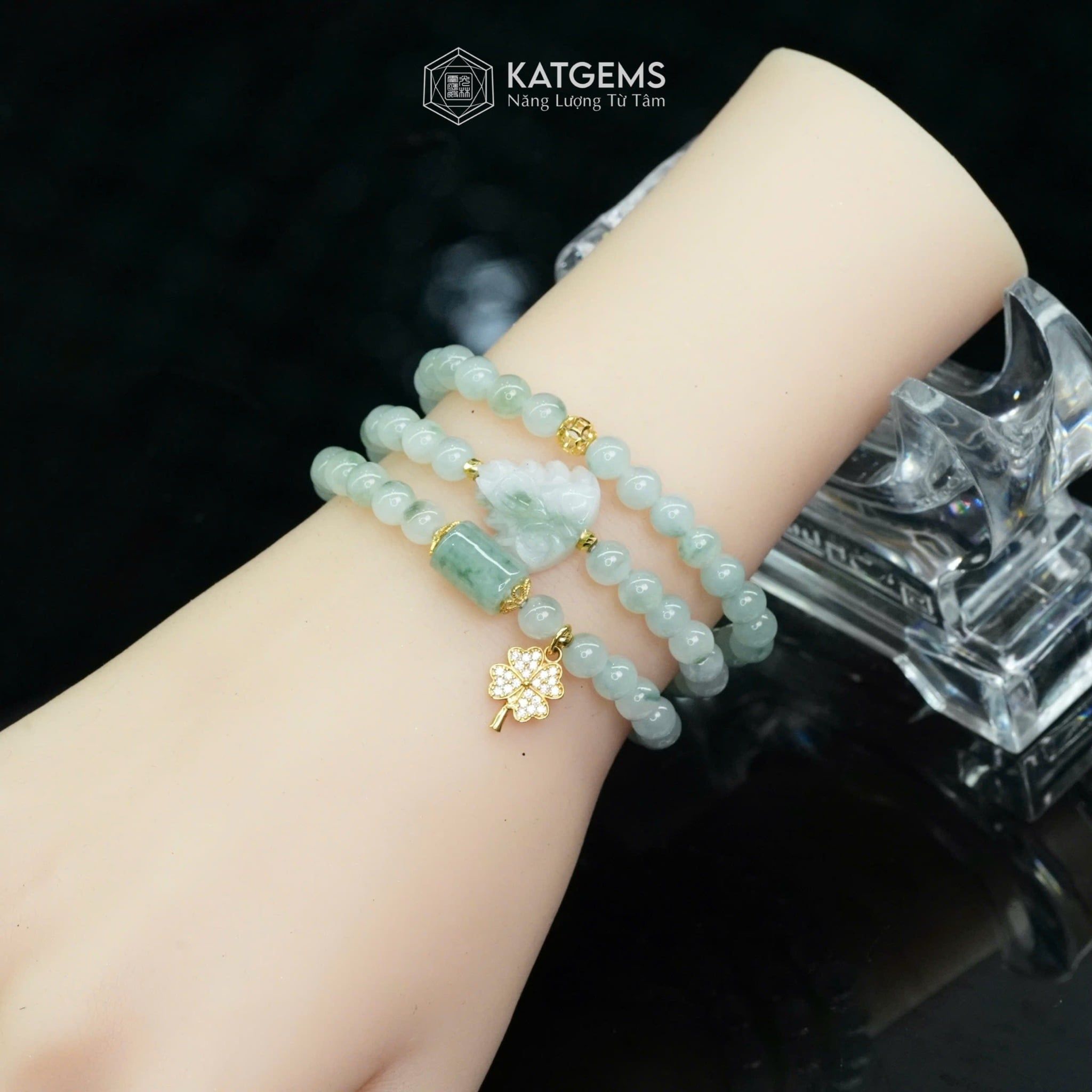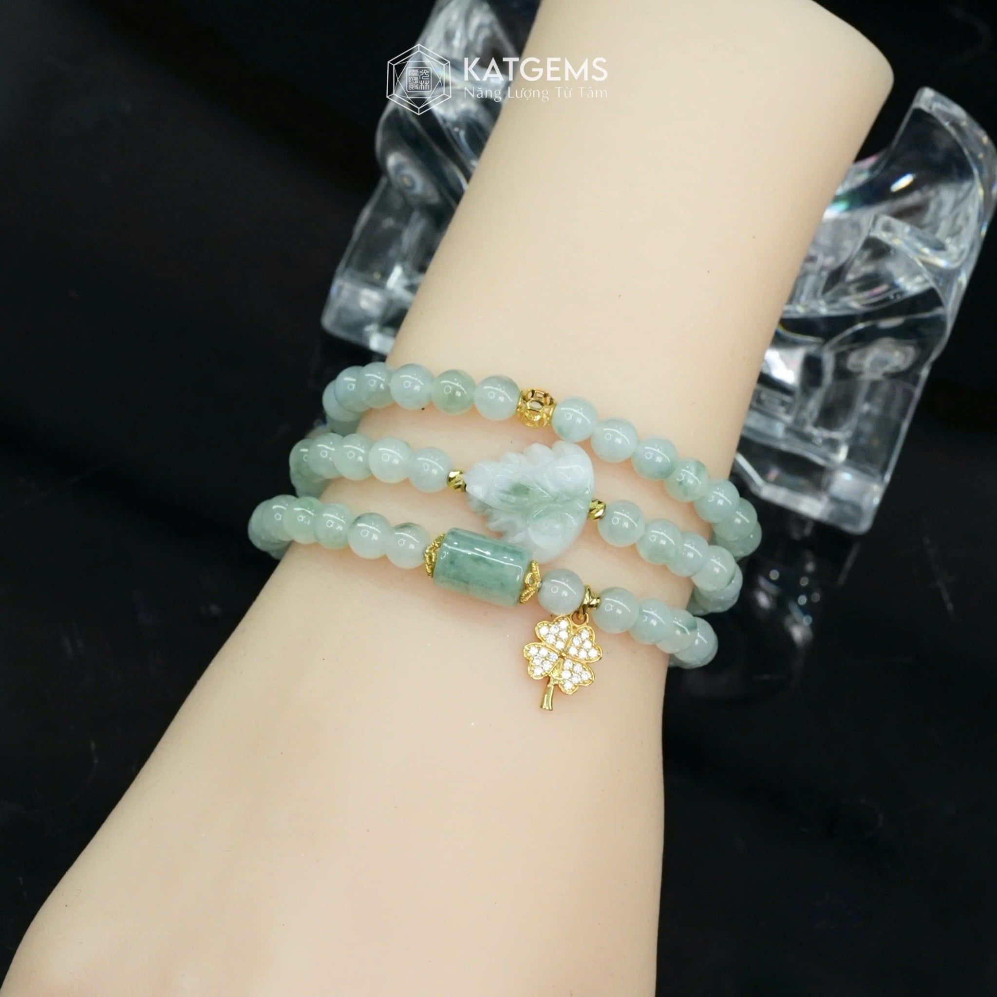 Vòng Chuỗi Ngọc Phỉ Thúy Hoa Bay 5.8ly Mix Bi Kim Tiền, Hồ Ly Chúa, Lu Thống Và Cỏ Bốn Lá Nạm Đá Vàng Trang Sức (Không Kén Mệnh) 1-127014