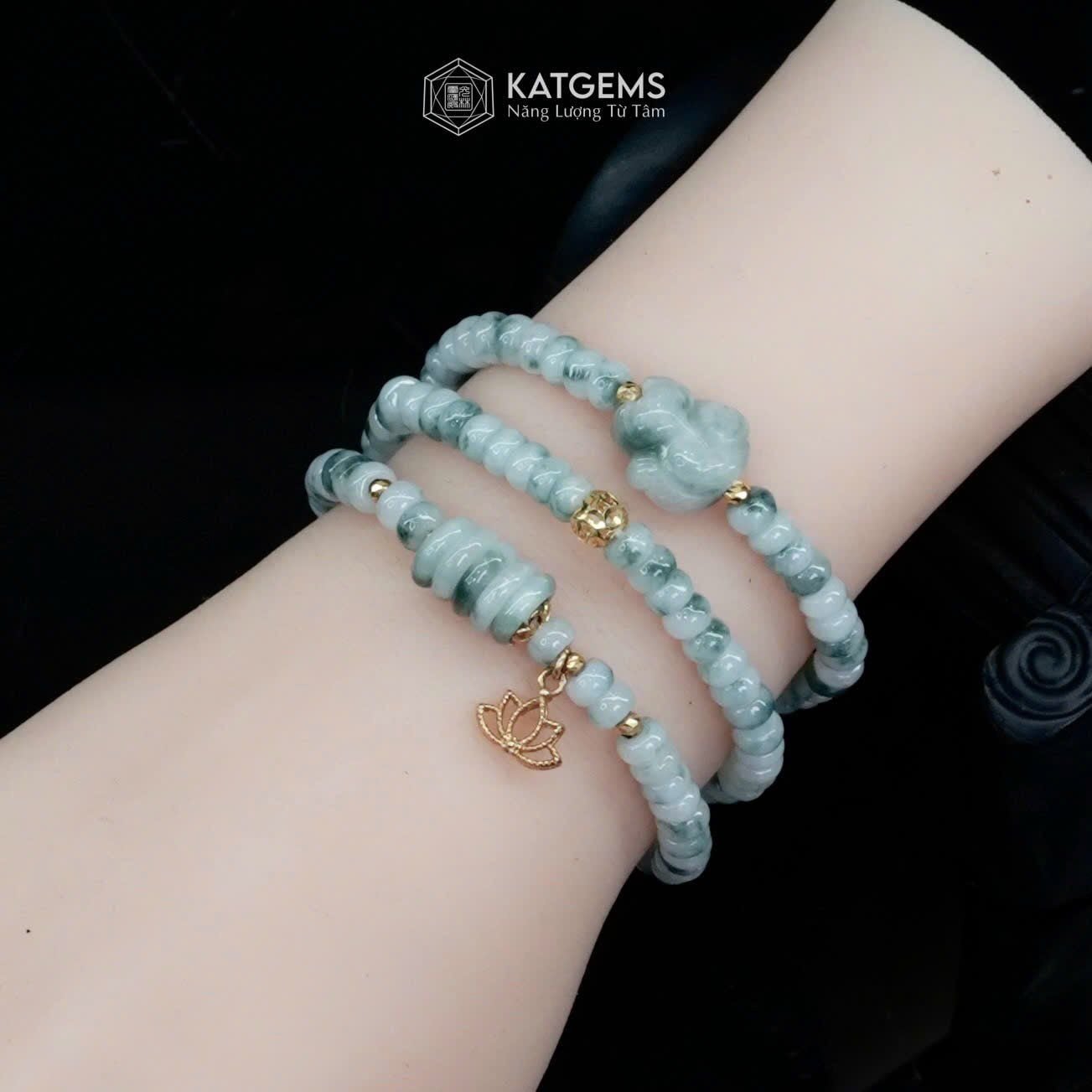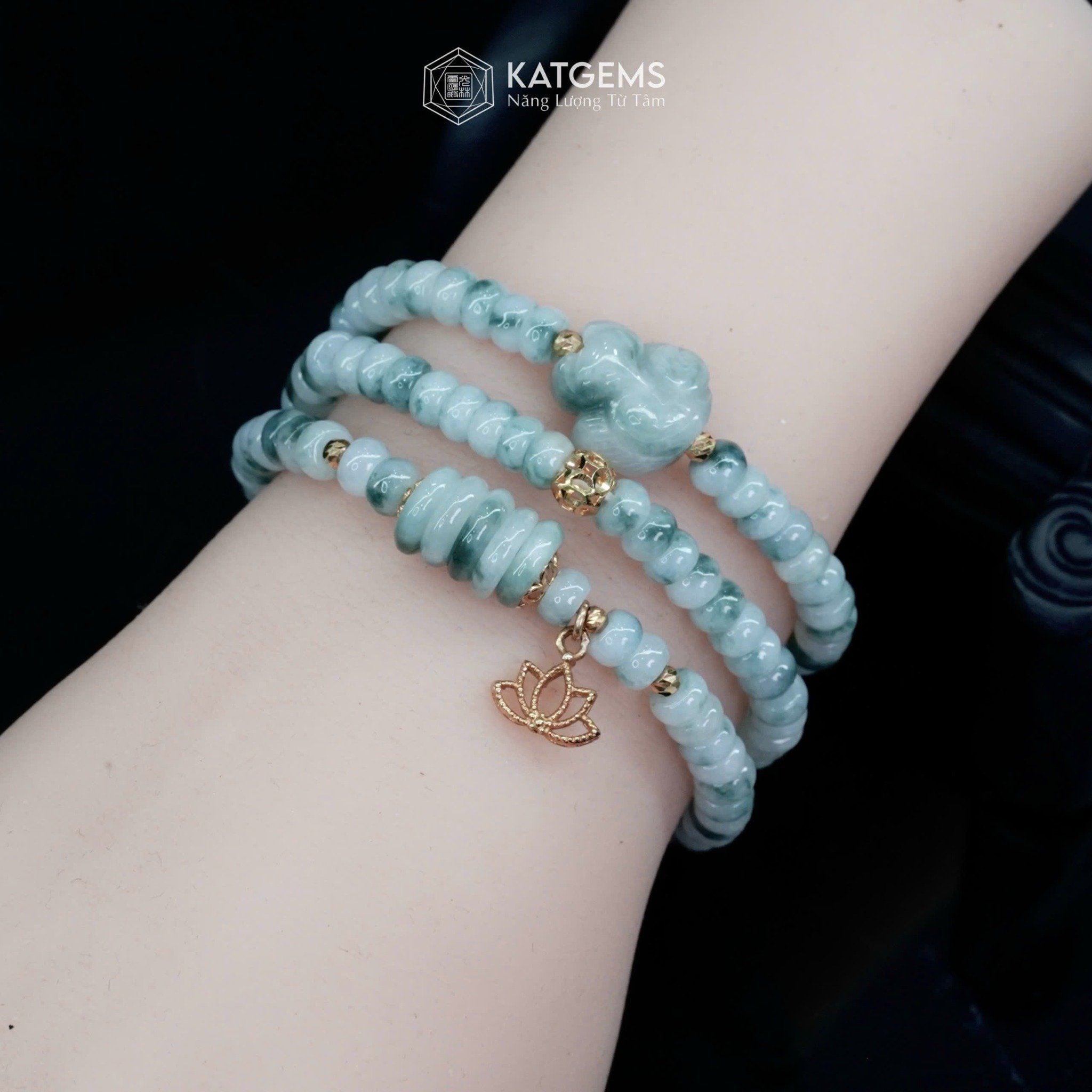 Vòng Chuỗi Ngọc Phỉ Thúy Hoa Bay Bánh Xe 5.4ly Mix Ngũ Điếu, Hồ Ly Phượng, Bi Kim Tiền Và Hoa Sen Vàng Trang Sức (Không Kén Mệnh) 2-127011
