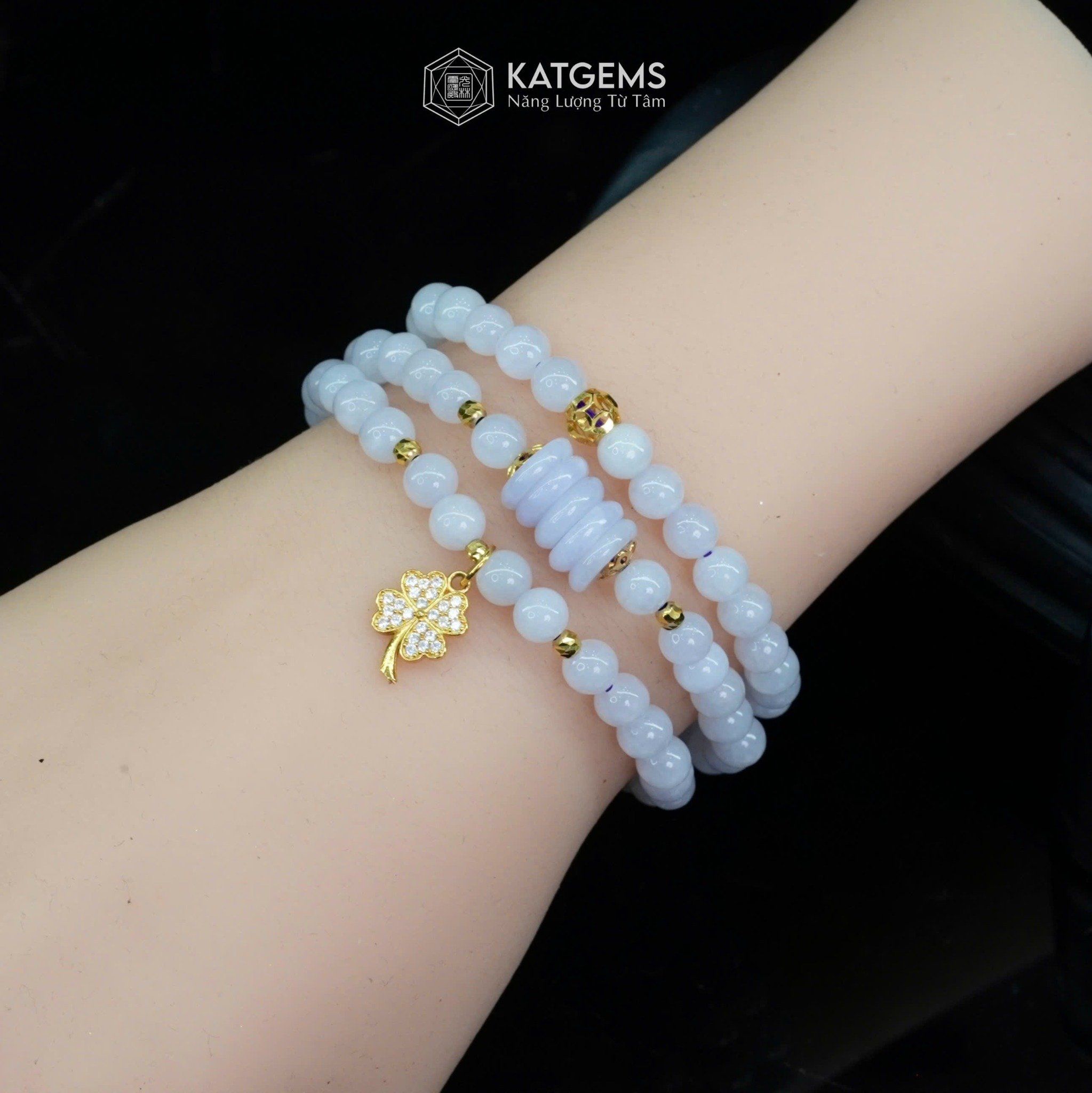 Vòng Chuỗi Ngọc Phỉ Thúy Tím Tử La Lan 5.8ly Mix Ngũ Điếu, Cỏ Bốn Lá Nạm Đá Và Bi Kim Tiền Vàng Trang Sức (Không Kén Mệnh) 1-129005