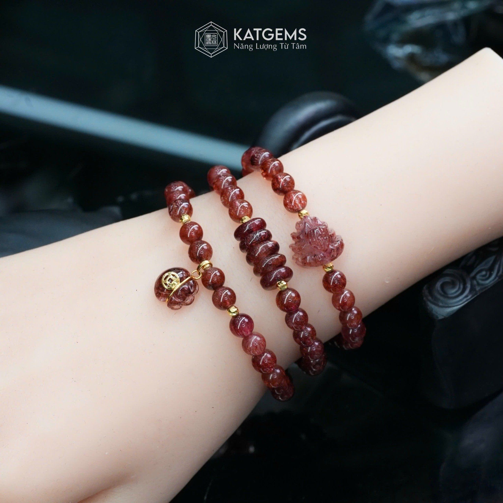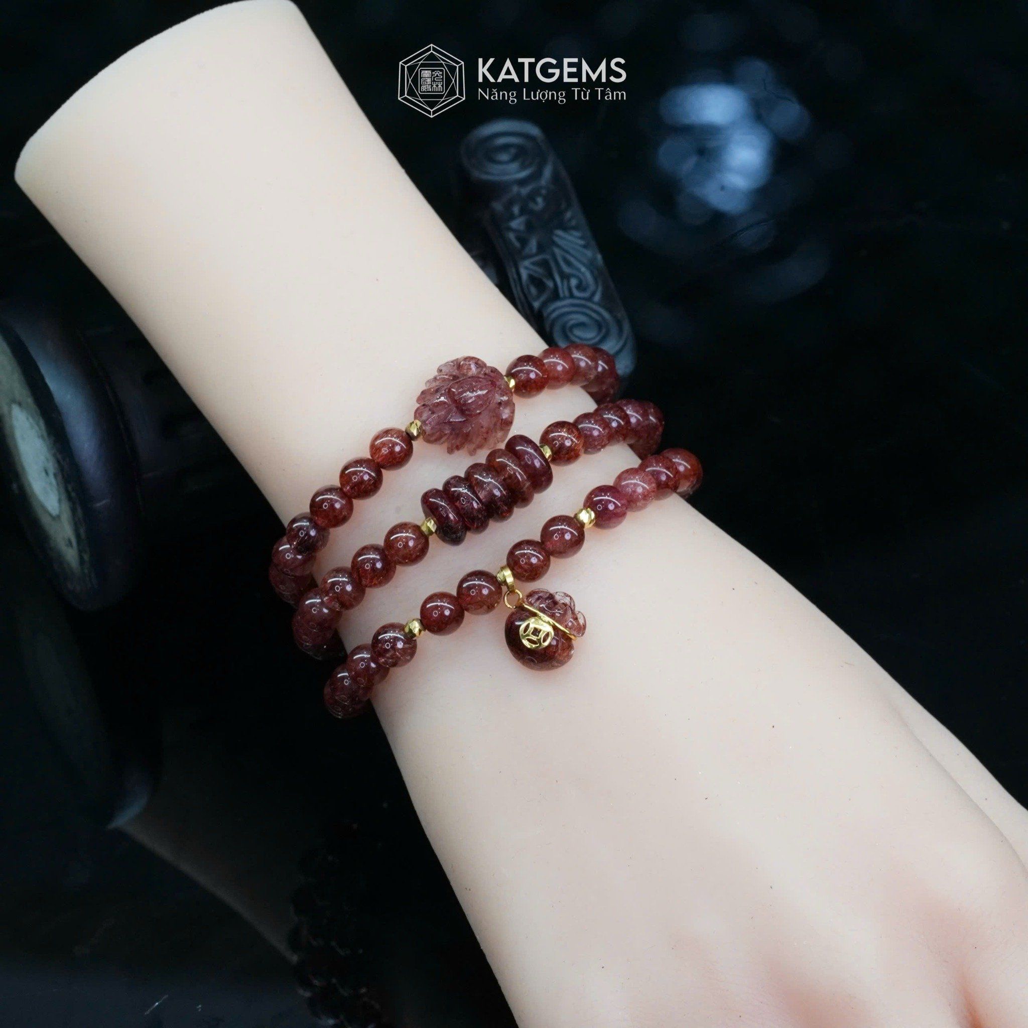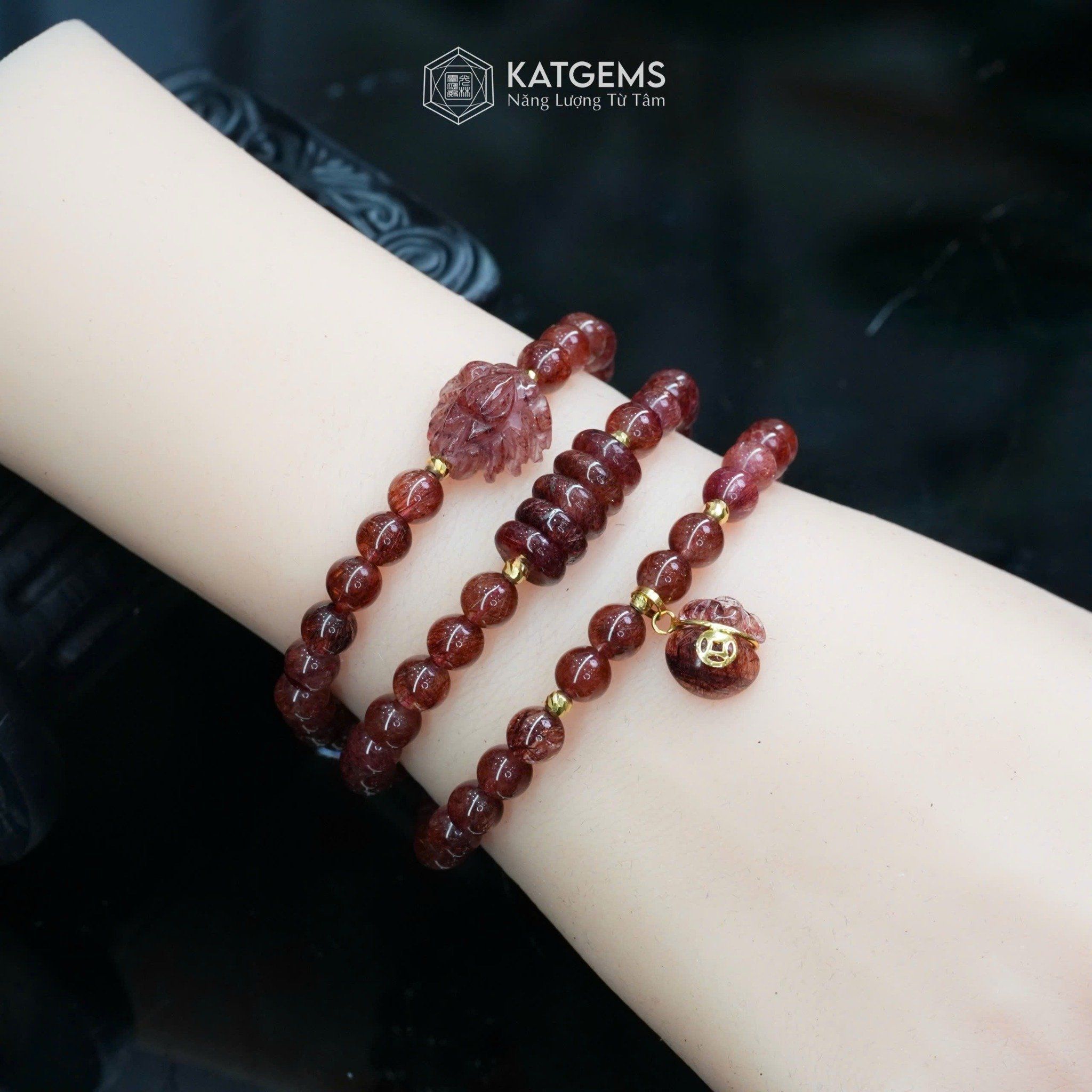 Vòng Chuỗi Thạch Anh Tóc Đỏ 6ly Mix Hồ Ly Chúa, Ngũ Điếu và Túi Tiền Kim Bảo (Hỏa, Thổ) 1-122005