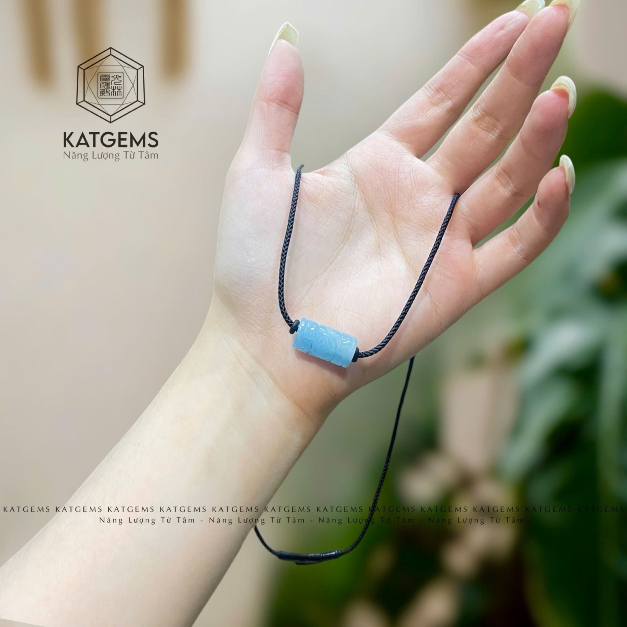 Vòng Cổ Lu Thống Đá Aqua Chạm Kim Tiền (Thủy, Mộc)