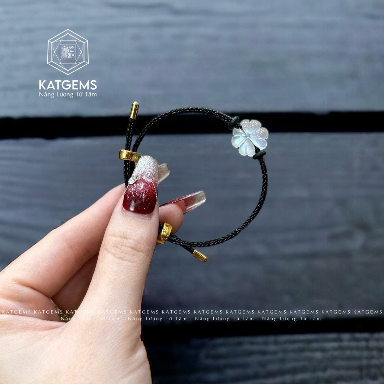 Vòng Dây Cáp Cỏ 4 Lá Đá Moon (Thủy, Kim)