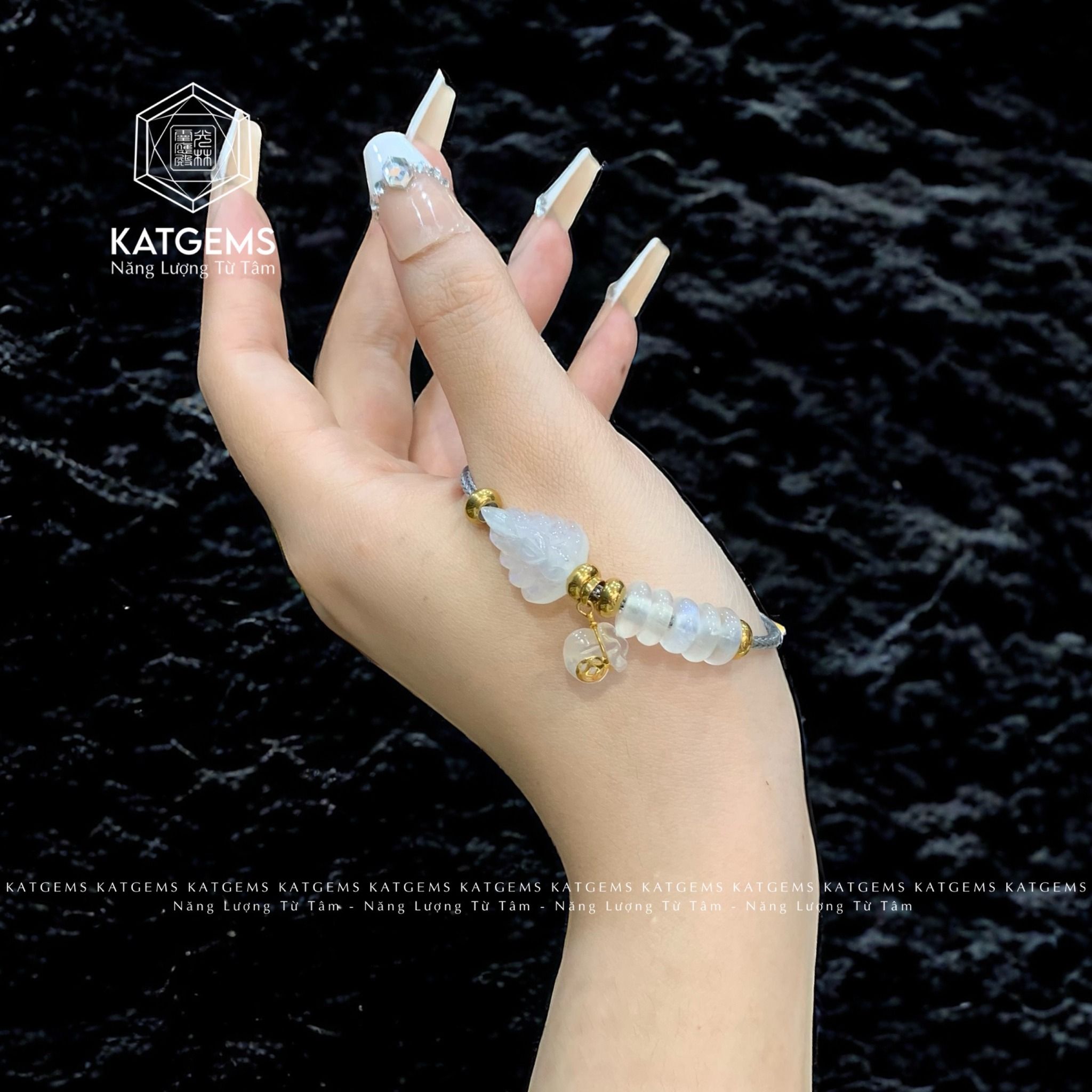 Vòng Dây Cáp Đá Moon Ngũ Điếu Mix Hồ Ly Chúa Và Túi Tiền Kim Bảo (Kim, Thủy)