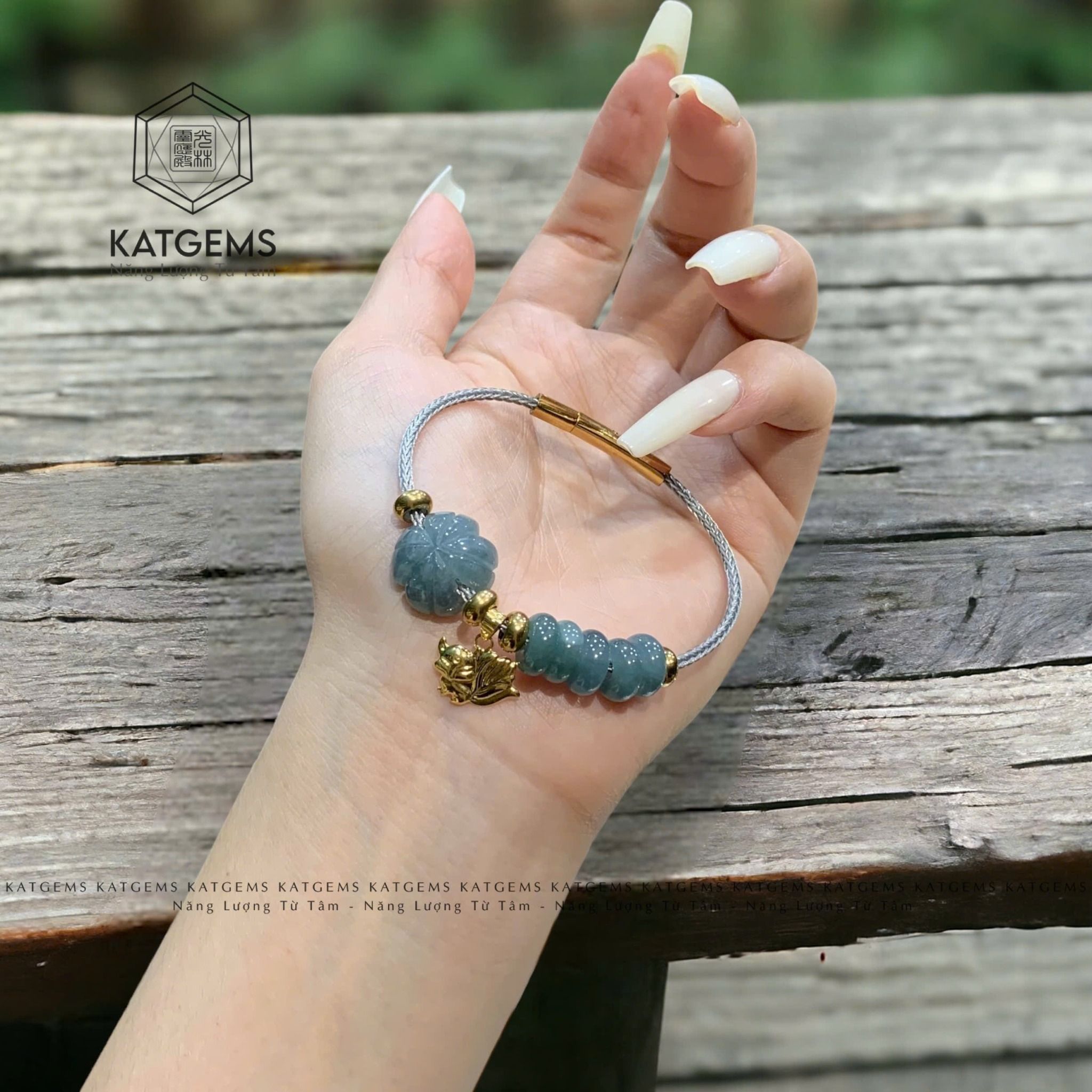 Vòng Dây Cáp Lam Ngọc Mix Ngũ Điếu, Cỏ Bốn Lá Và Charm Hồ Ly Vàng Trang Sức (Không Kén Mệnh)