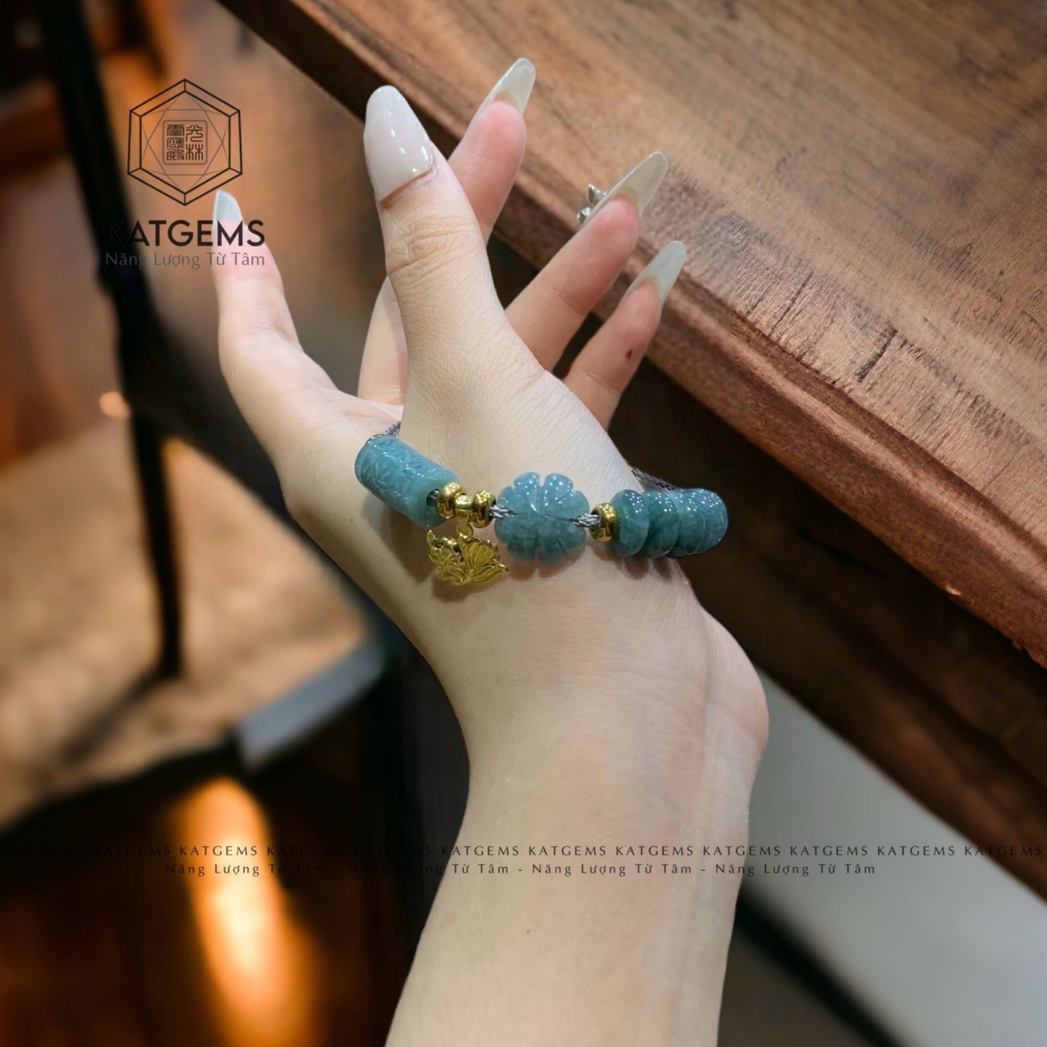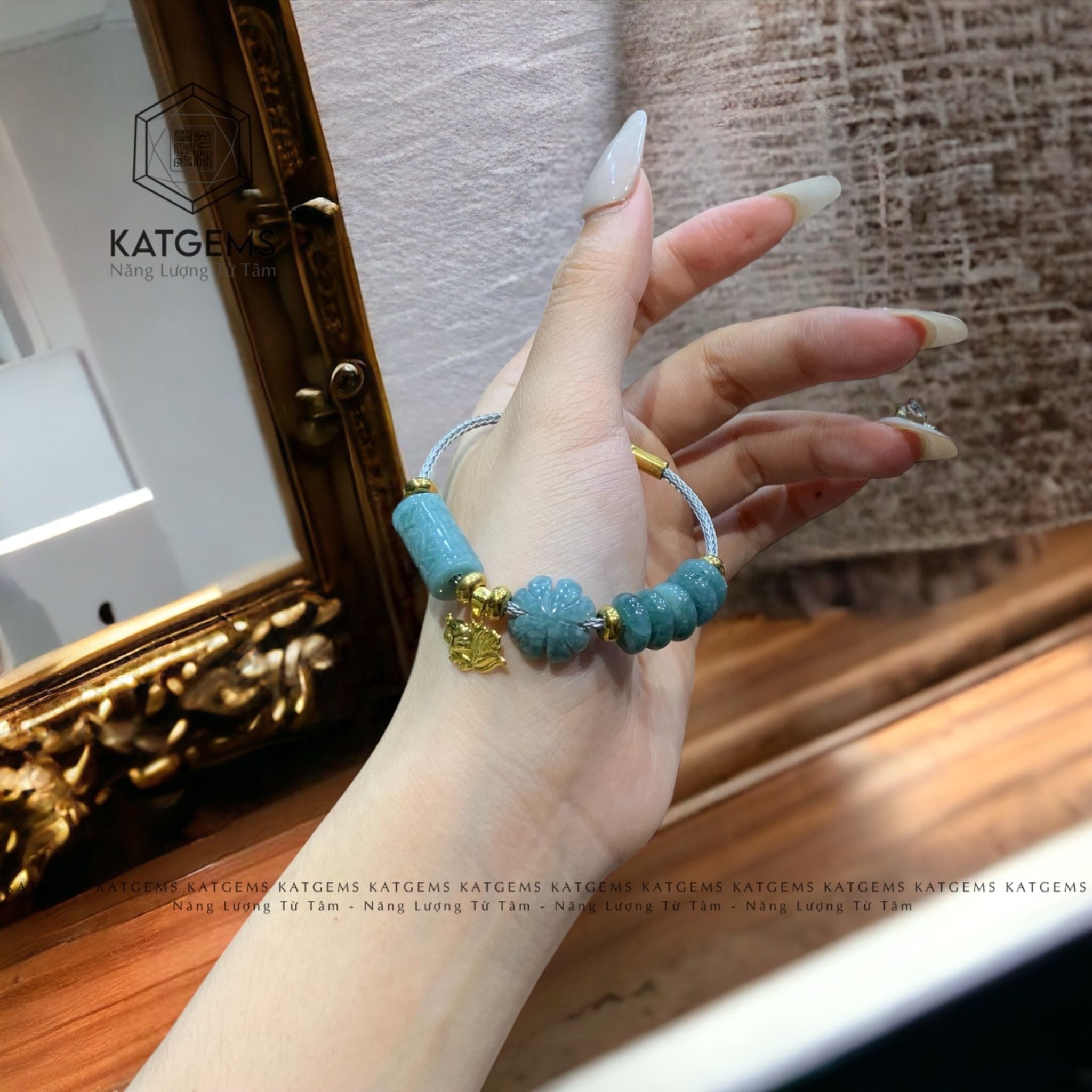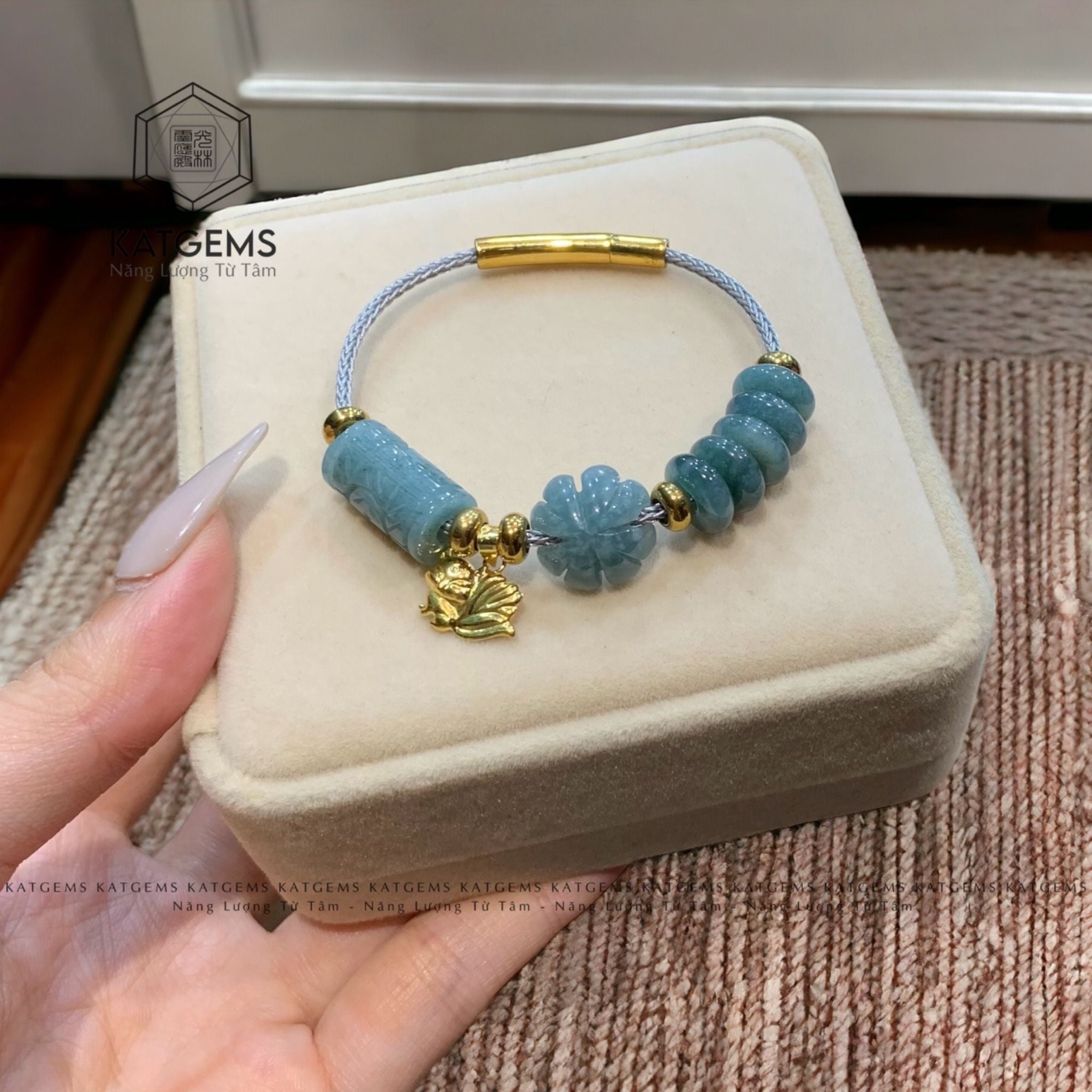 Vòng Dây Cáp Lam Ngọc Ngũ Điếu Mix Hồ Ly, Cỏ Bốn Lá, Lu Thống Chạm Kim Tiền (Không Kén Mệnh)