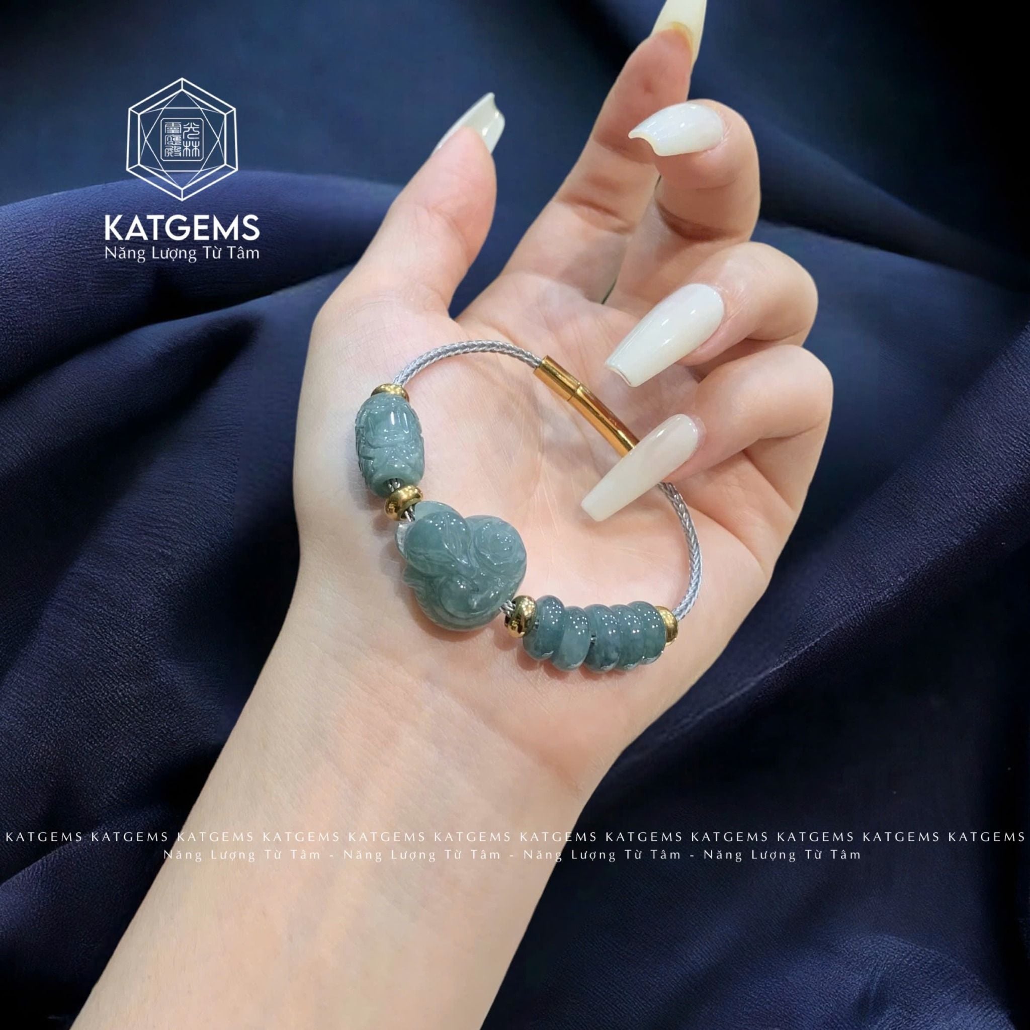 Vòng Dây Cáp Lam Ngọc Ngũ Điếu Mix Hồ Ly Và Lu Thống Chạm Kim Tiền (Không Kén Mệnh)