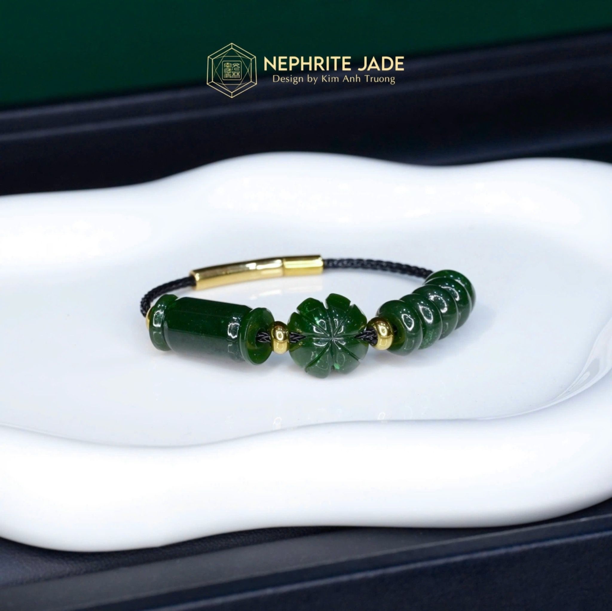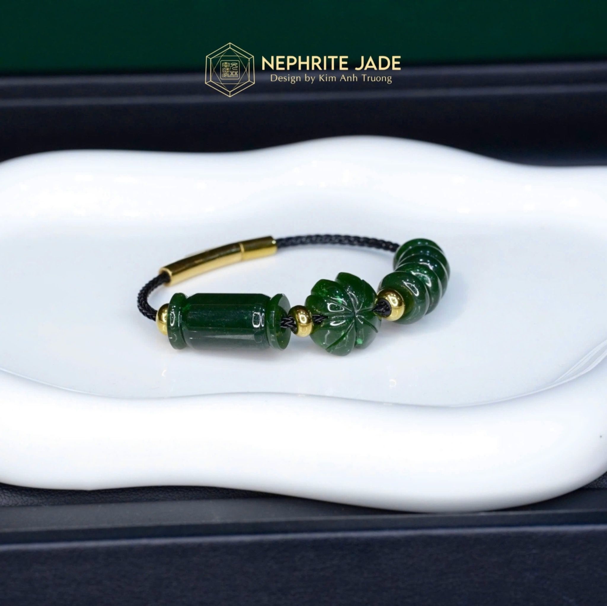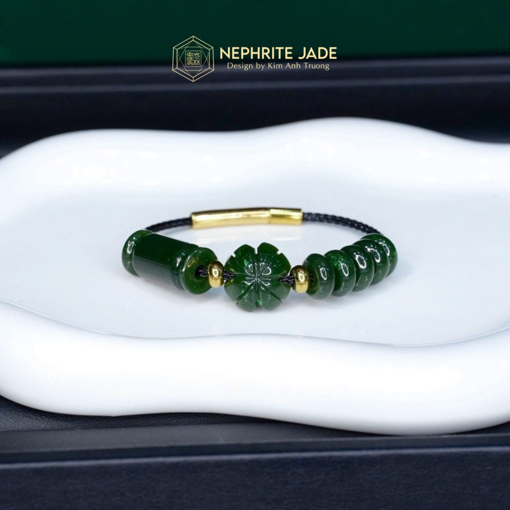 Vòng Dây Cáp Ngọc Bích Canada Ngũ Điếu Mix Lu Thống Và Cỏ Bốn Lá VIP (Không Kén Mệnh)